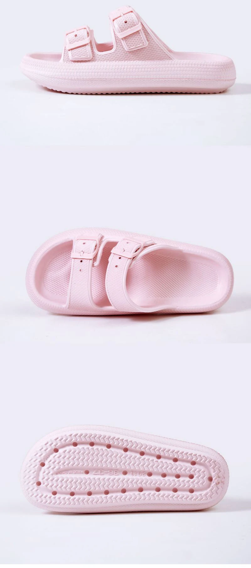 Color: Chocolate, Shoe Size: 5 - Fashion Buckle Thick Platform Slippers Women Home Soft Sole eva Cloud Slides Sandals Woman 2023 Summer Non Slip Beach Flip Flops