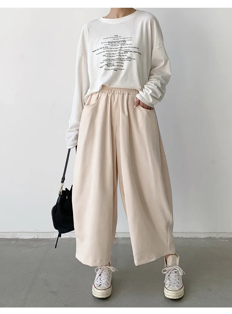 Color: Claret, Size: M - 2023 Autumn Casual Harem Pants Women Cotton High Waisted Trousers Retro Loose Bloomers Women's Oversize Pants Baggy Sweatpants