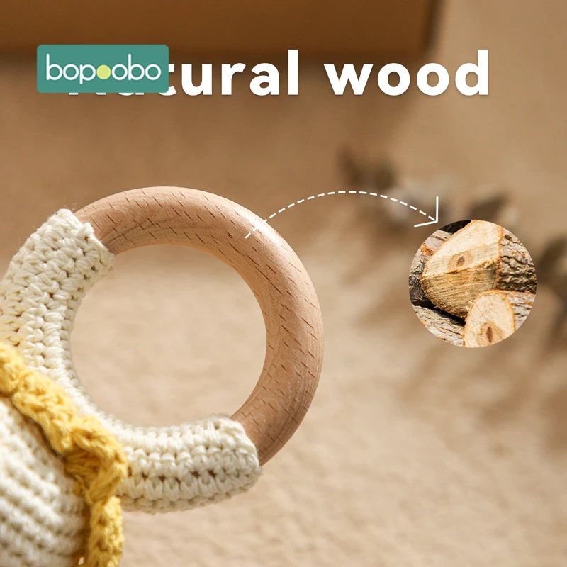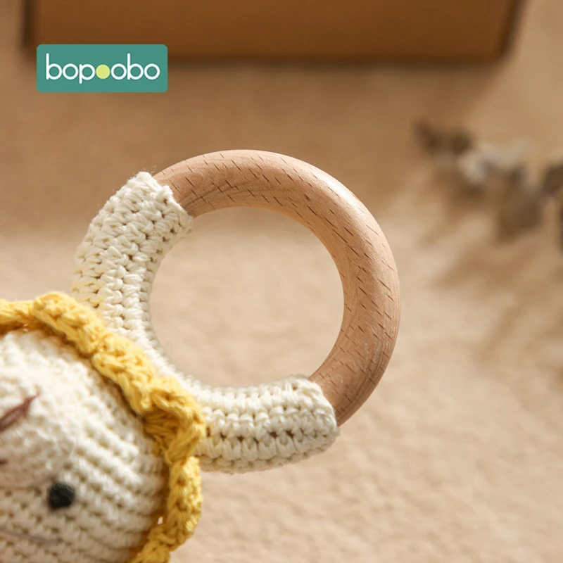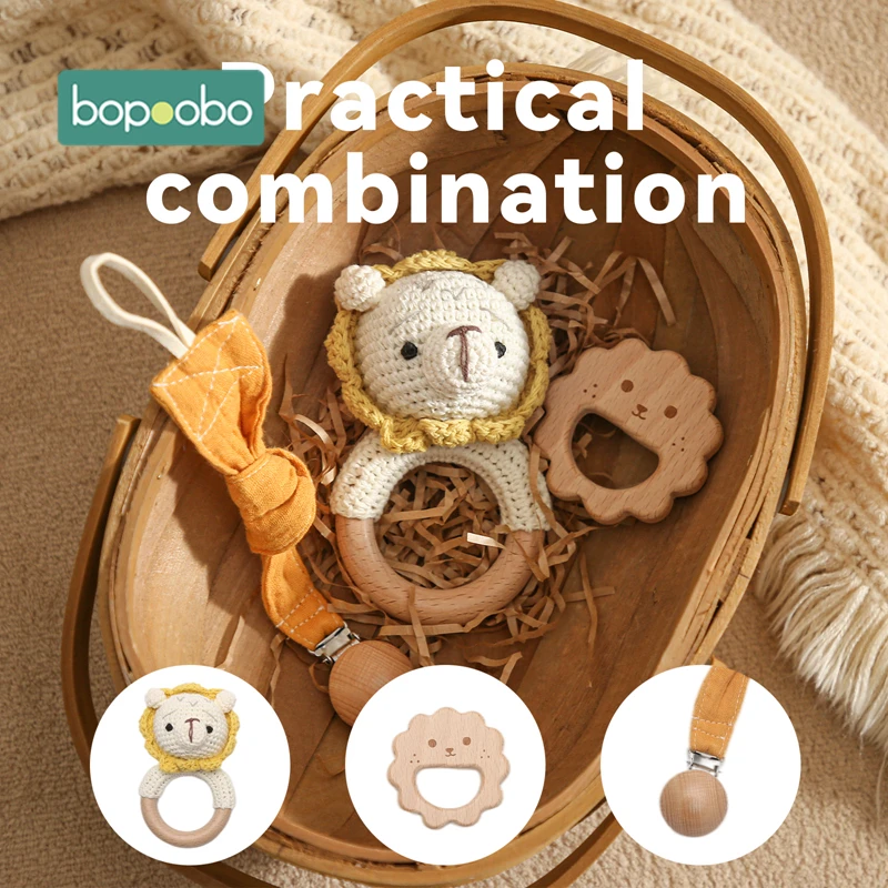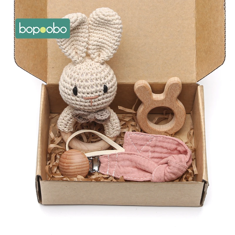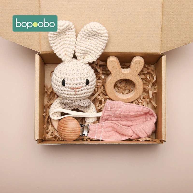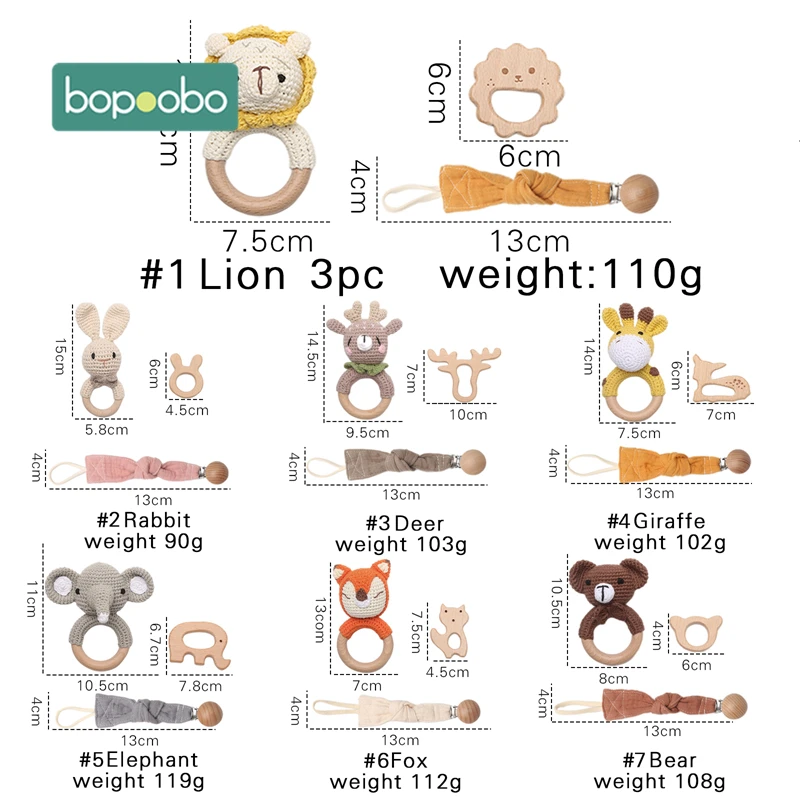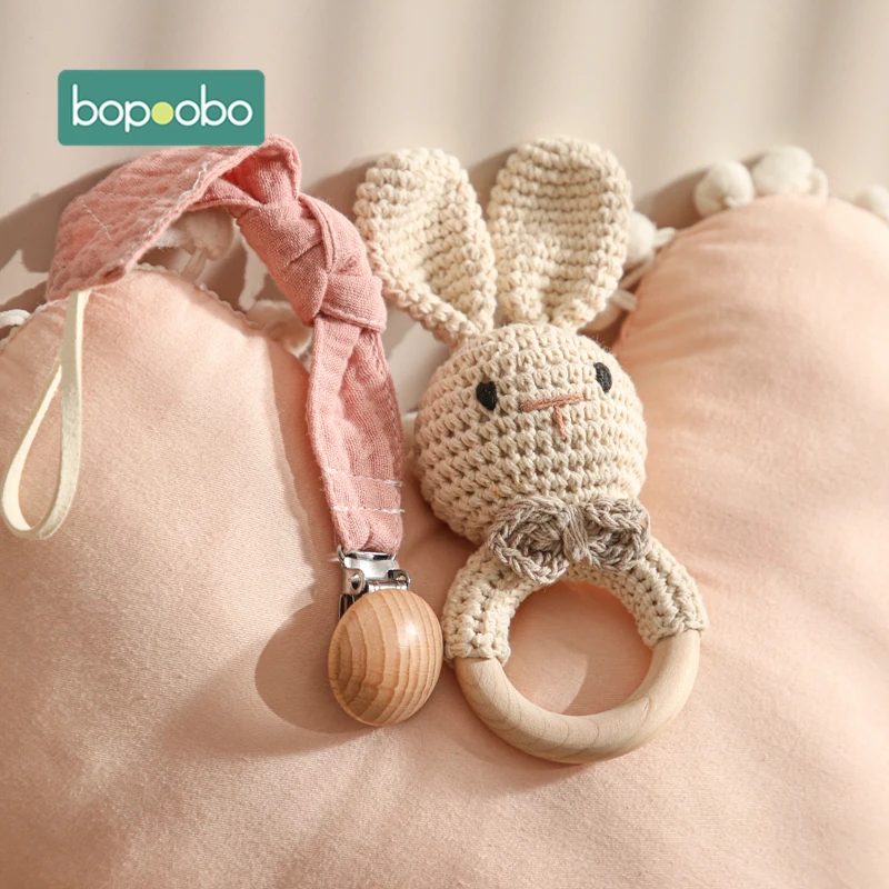 Bopoobo 3PCS/5PCS Crochet Bunny Baby Teether Rattle Animal Beech Wood Teether Pacifier Chain Crochet Rattle For Newborn Baby