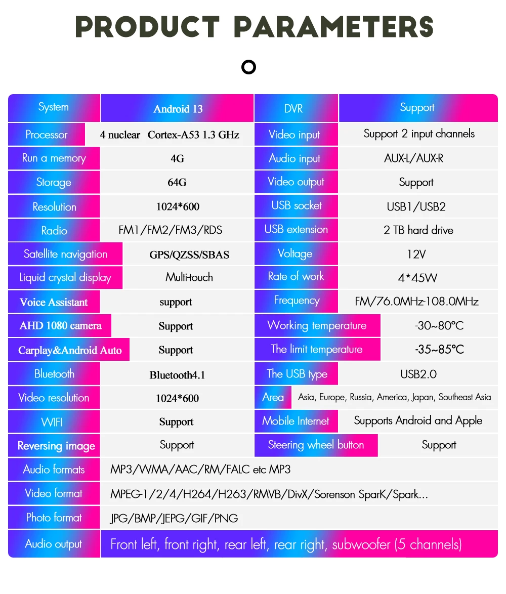 - Android 13 system, 4 Core CPU, 4GB RAM, 64GB ROM