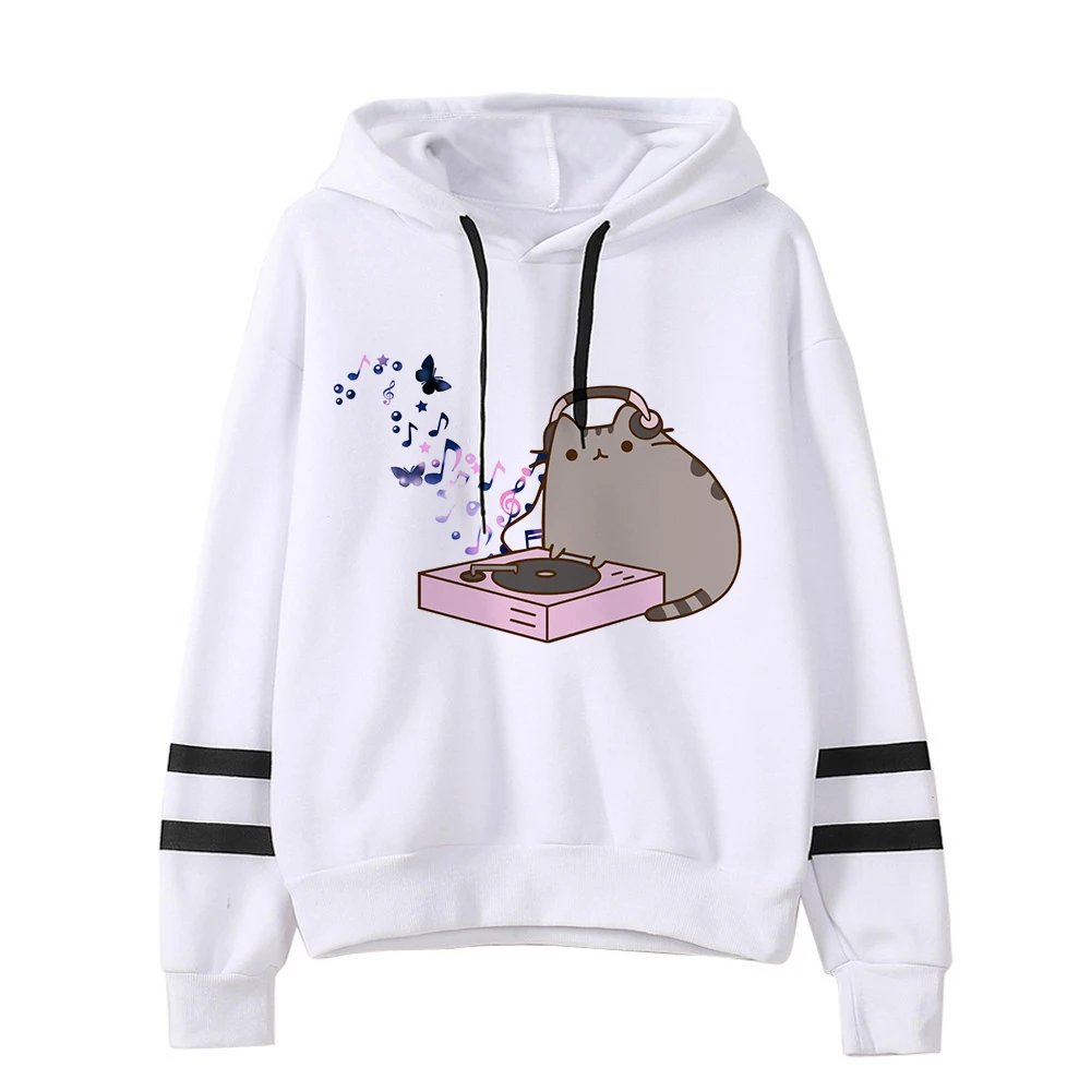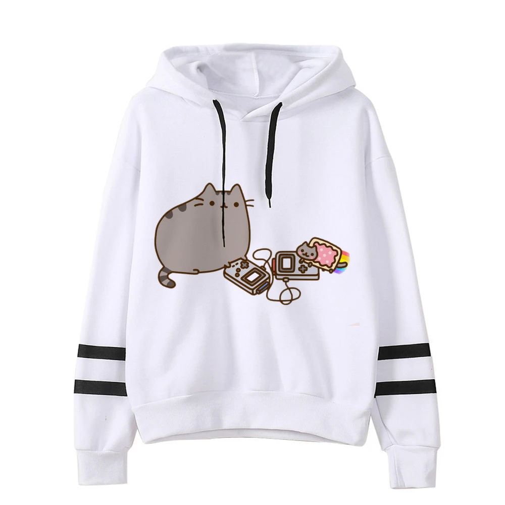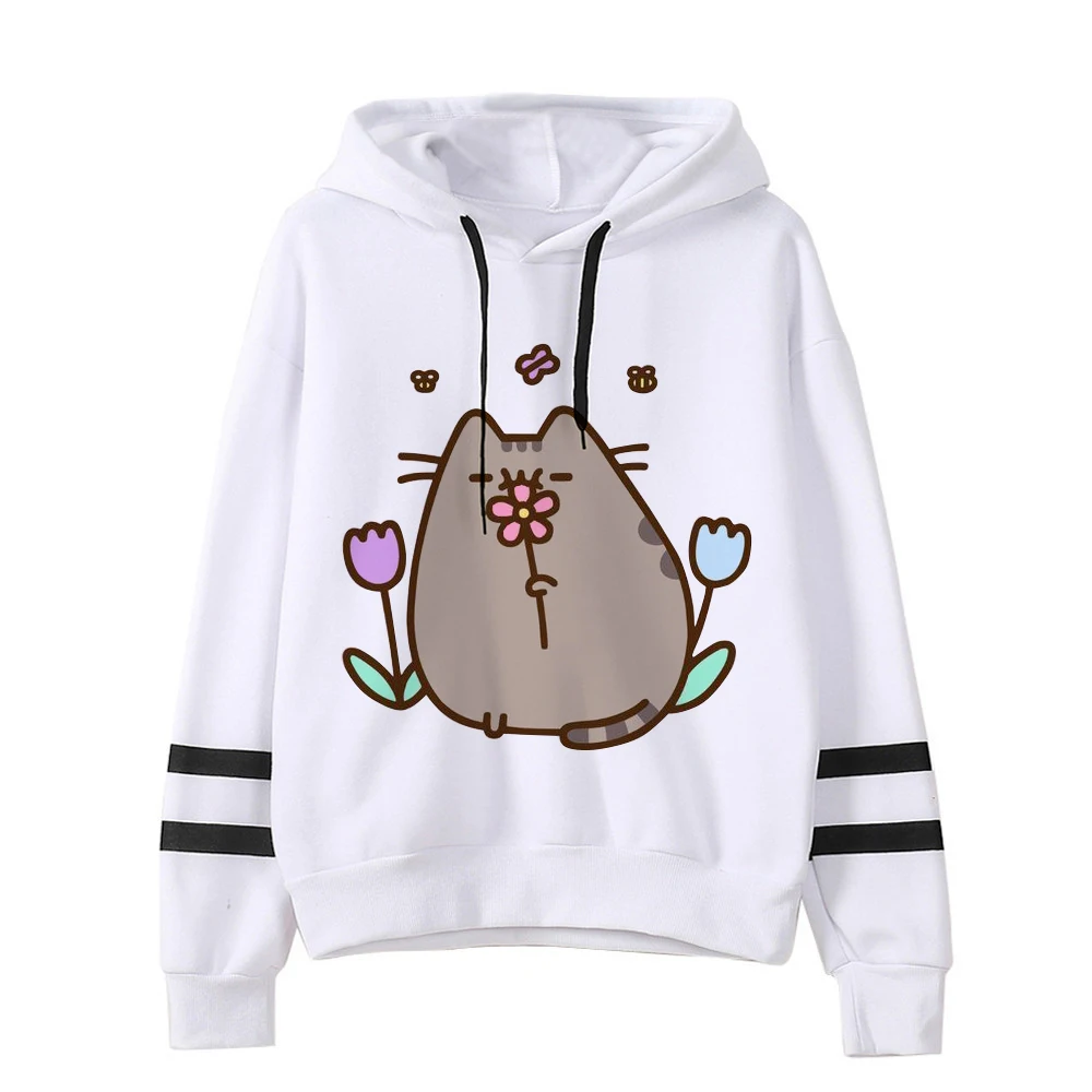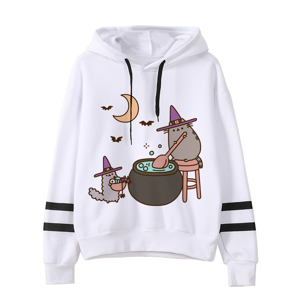 Color: Clear, Size: XL - Women Ullzang Cute Cat Funny Cartoon Sweatshirt Pusheen Cat Kawaii Harajuku Korean Style Hoodies Graphic Fashion Hoody Female