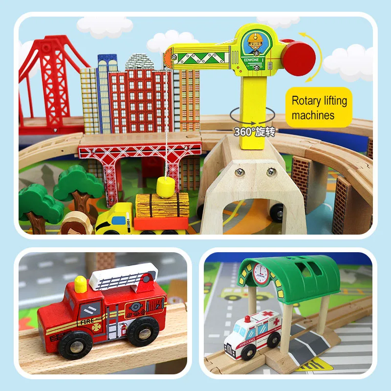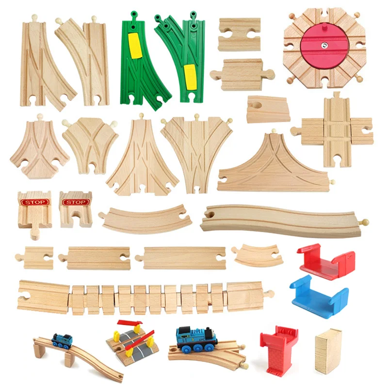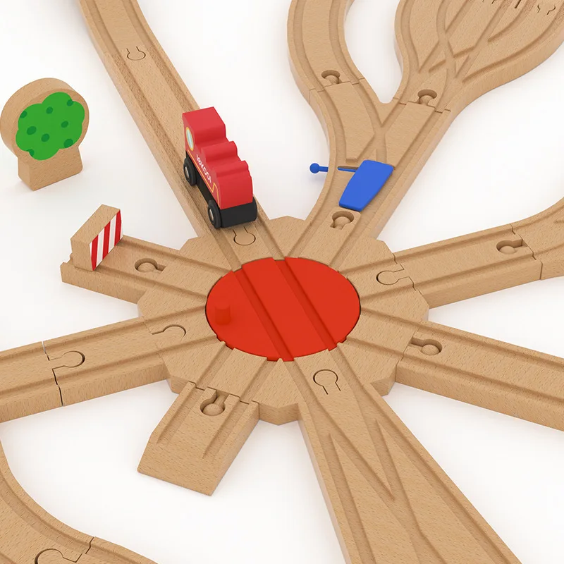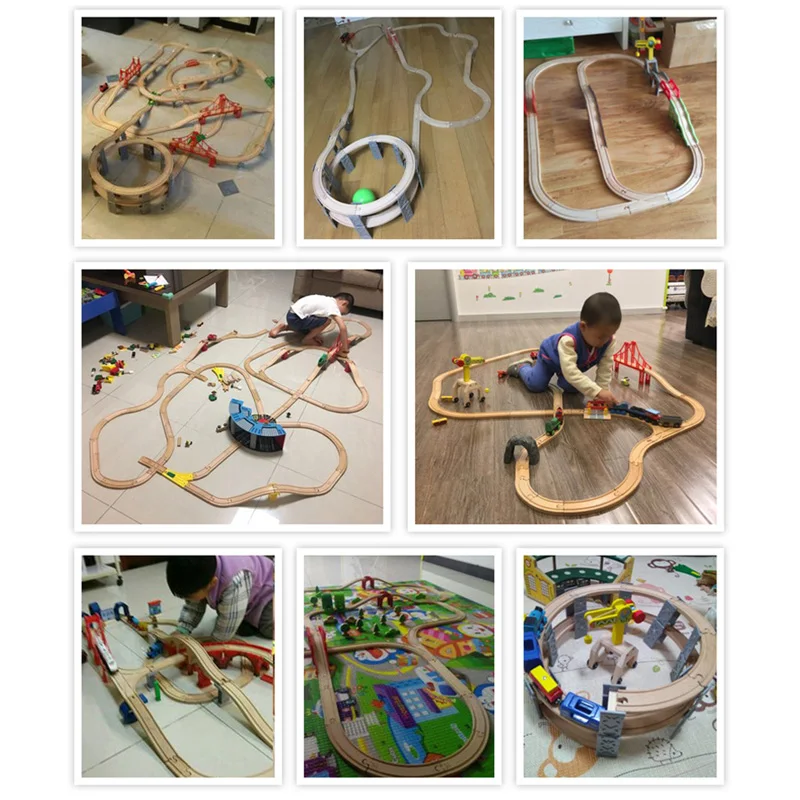 Color: Clear - Wooden Bridge Tunnel Urban Rail Overpass Traffic Car Toy Scene Combined Train Rail Track Wooden Accessories Beech Turntable DIY