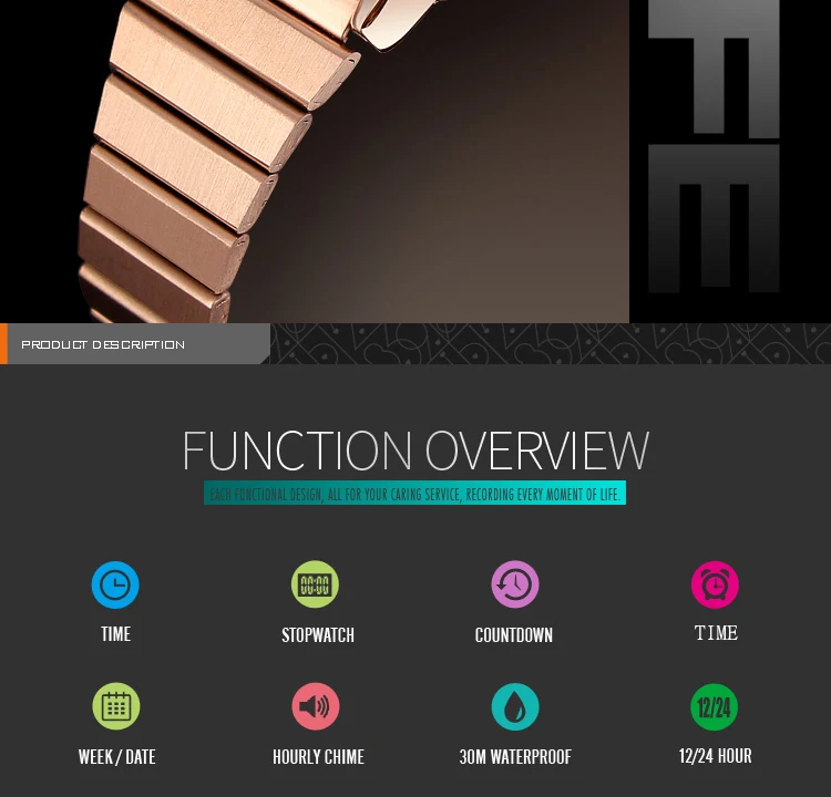 Functions: 3bar Water Resistant, Chronograph, Date, Month,Countdown