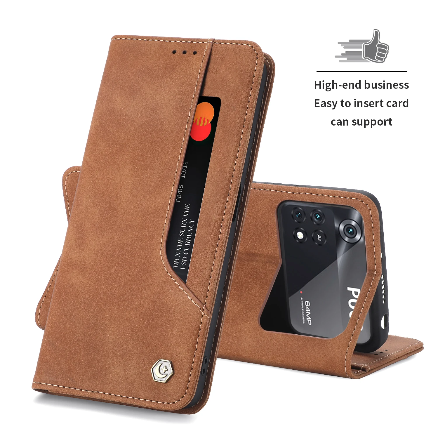 Color: Dark Brown, Material: Leather - Flip Leather Case For Xiaomi Mi 13 12T 11T 10T 11 12 Lite Pro 5G Poco F5 X5 Pro M6 M5S M4 F4 F3 X3 X4 GT Magnet Wallet Cover