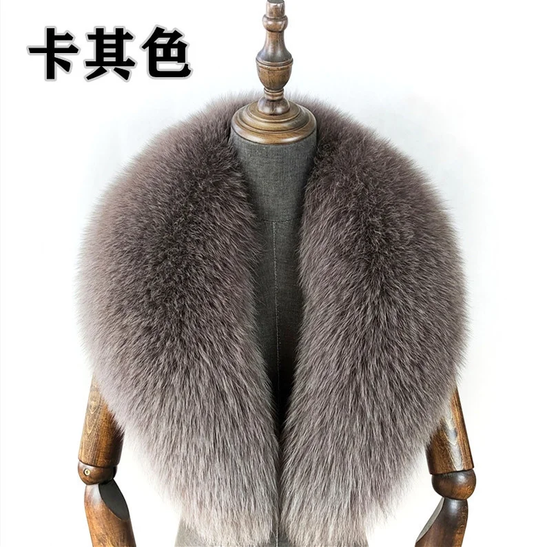 Fox Fur Collar 100% Real Fox Fur Scarf Straight Collar Natural Fur Gray Collar Large Size Neck Warmer Fur Scarf Shawls