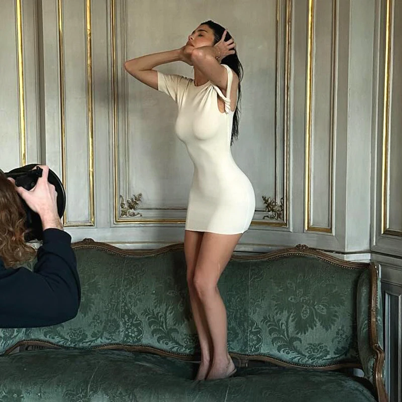 Color: Dark Brown, Size: XS - CUTENOVA Irregular Dress Women Hispter Summer Trend Hollow Knot Solid Simple Casual Stretch Streetwear Thin Midnight Bodycon