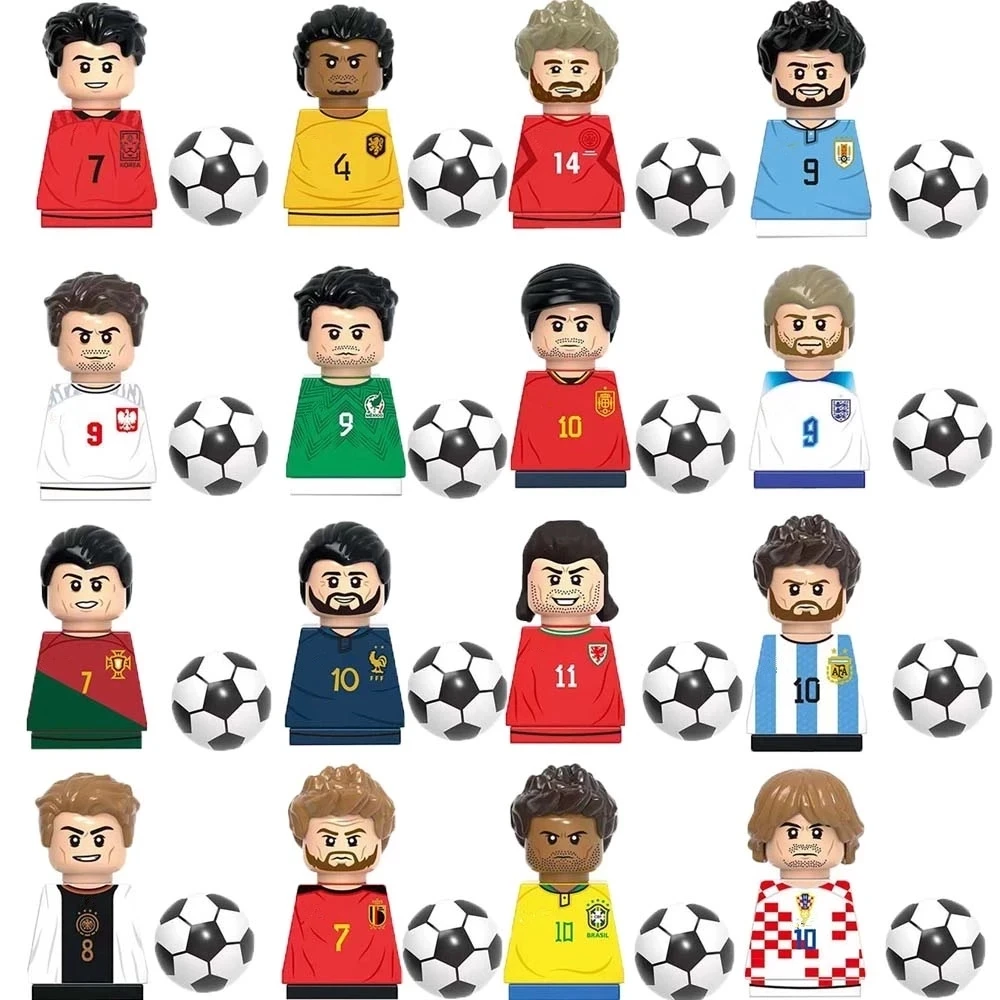Color: DARK GRAY - 1-16PCS Messi Ronaldo Neymar Lewandowski Soccer World Famous Football Players Figurine Mini Action Building Block Toy Kids Gifts