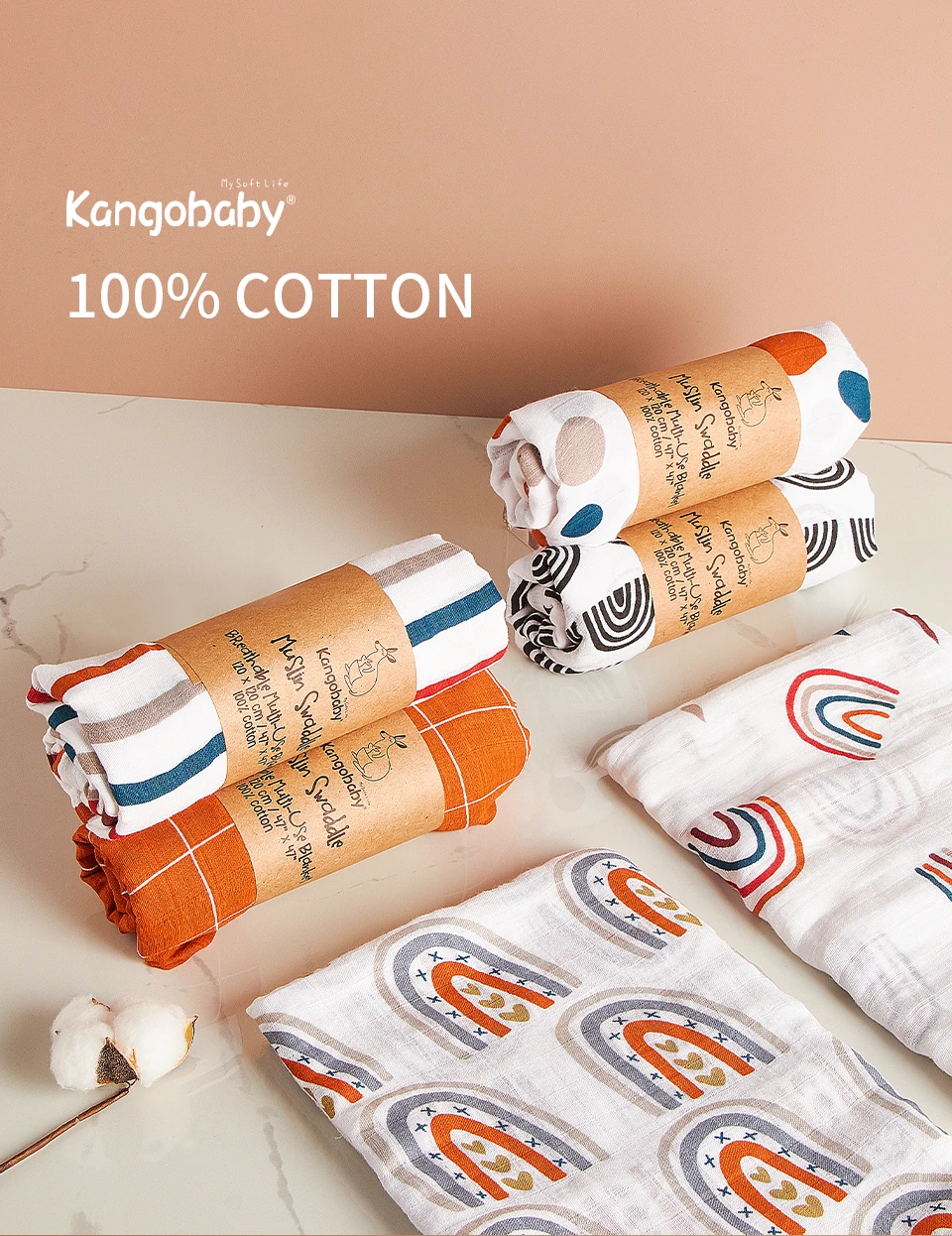 Color: DARK GRAY - Kangobaby New Design 2pcs Set Double Layers 100% Cotton Newborn Baby Muslin Swaddle Blanket