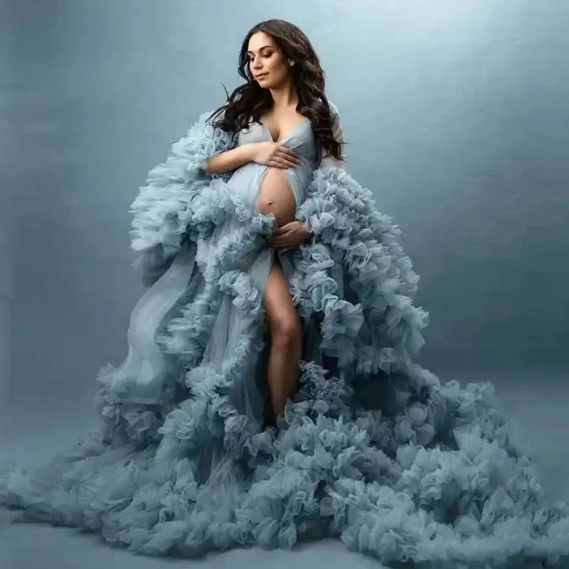 Color: DARK GRAY, Maternity Size: M, Ships From: CHINA - Tulle Long Maternity Dress Photoshoot п?»?°?‚ь?µ photography dresses baby shower dresses for pregnant woman п?»?°?‚ь?µ д?»я ?±?&micr