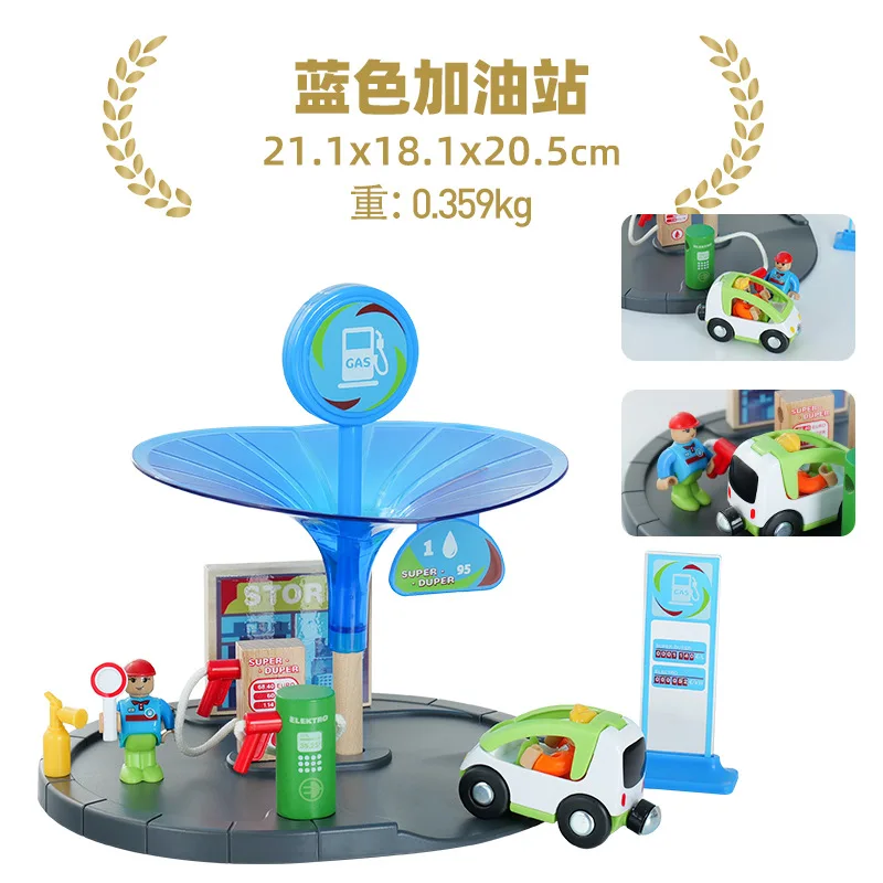 Color: DARK GRAY - Wooden Train Tracks Railway Toys Set Parking lot apron fire station gas station rotary crane Overpass Model for Kids Toys Gifts