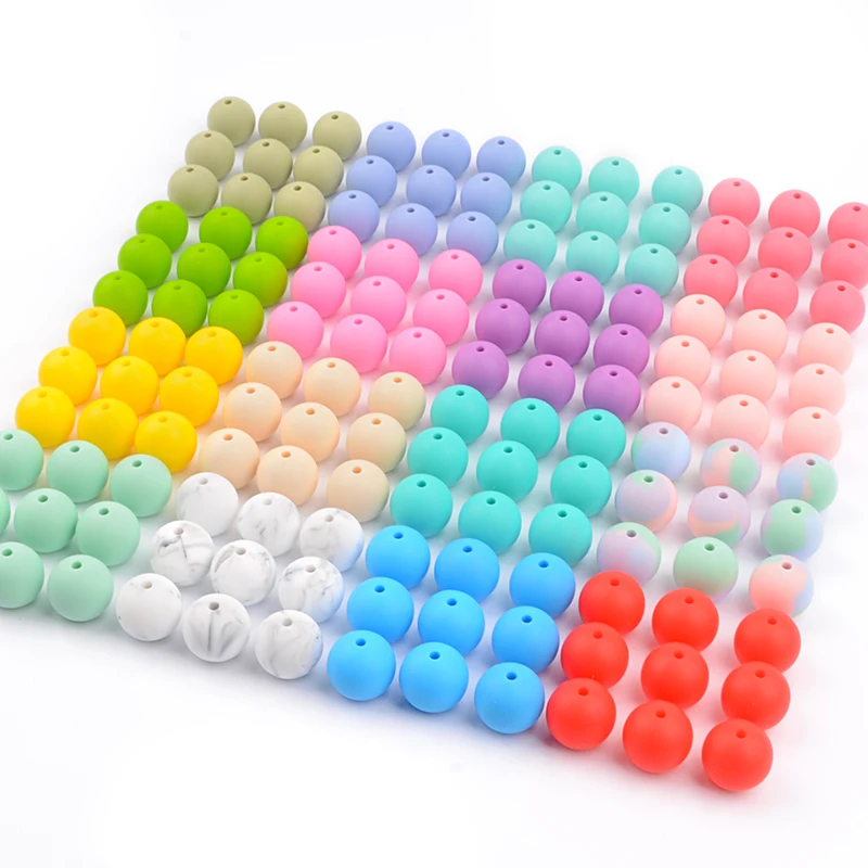 Color: Dark green, Item Diameter: 12mm - LOFCA 100Pcs/lot 12MM Round Shape Silicone Teething Beads Baby Teether For DIY Nursing Necklace Food Grade Chew Beads