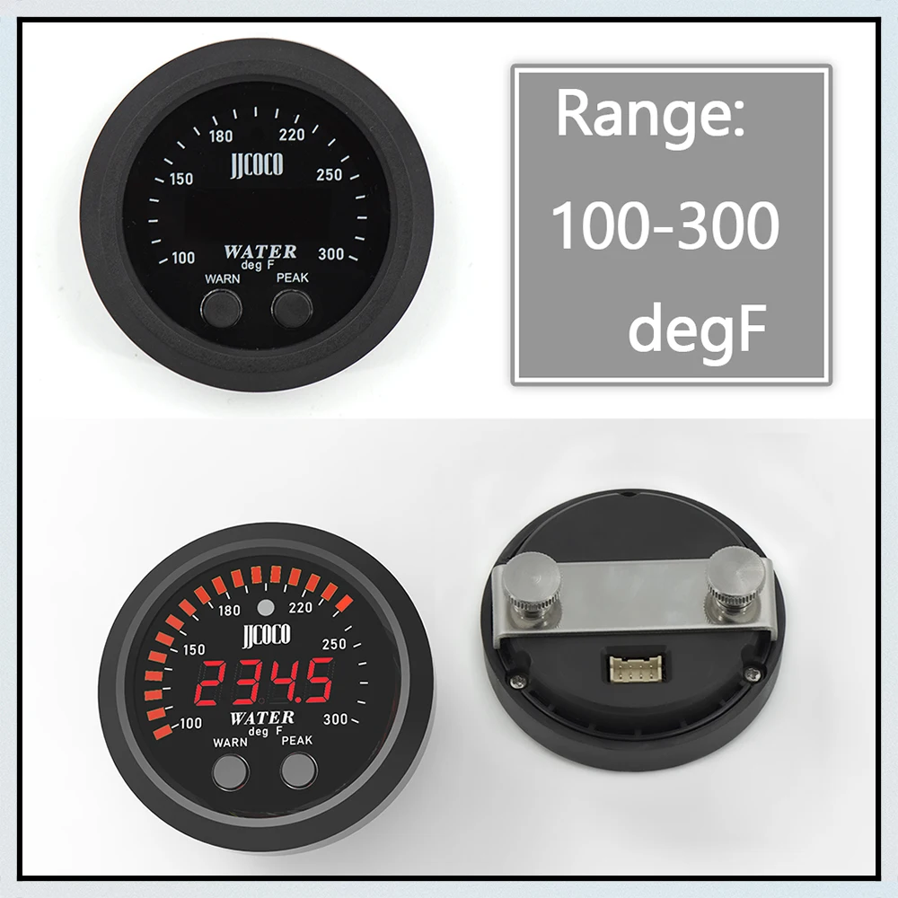 52MM 12v 24v Racing Car Ultra-thin Water Temperature Gauge + Water Temp Joint Pipe Sensor Adapter 1/8NPT Red LED Light Digital Meter