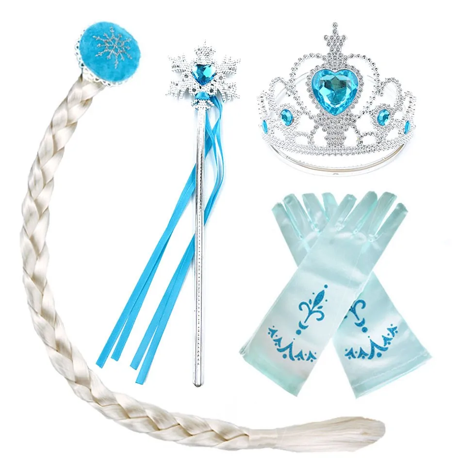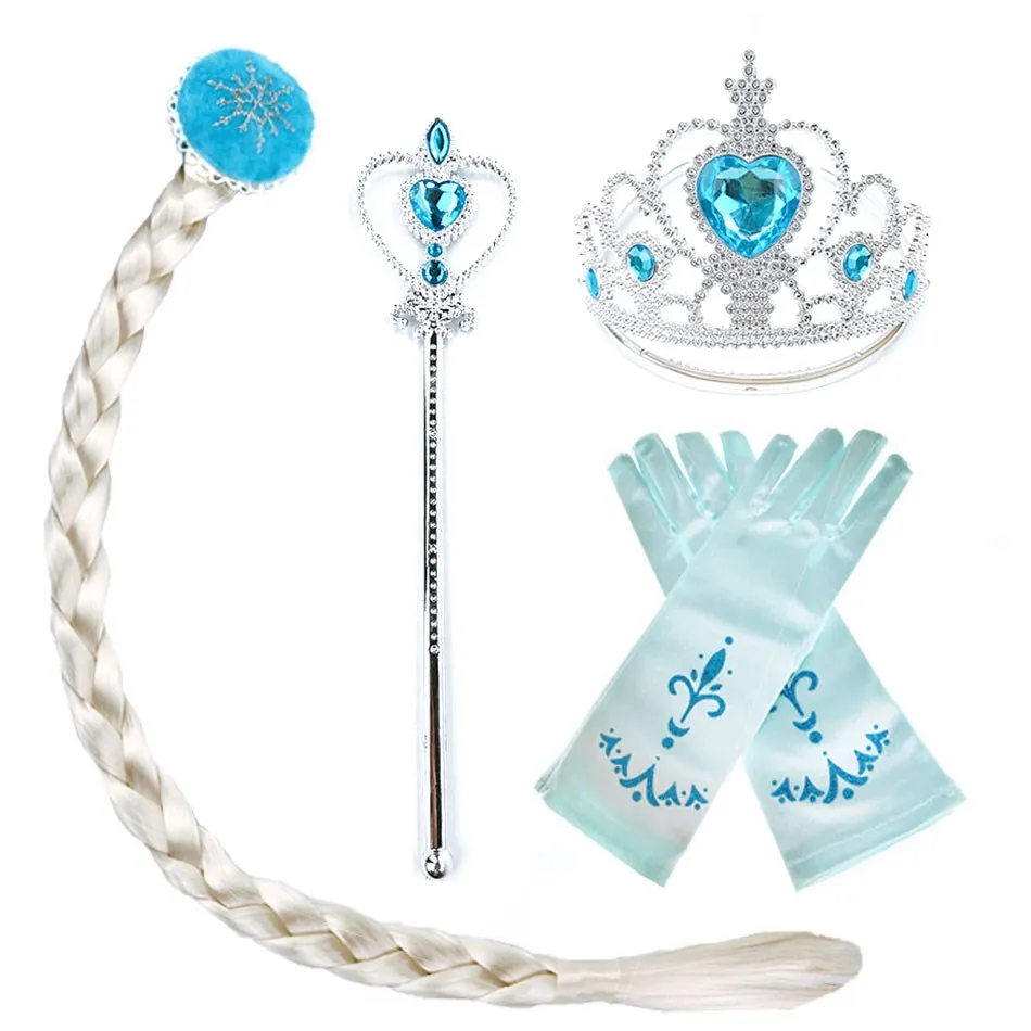 Name:Â Girls Elsa Anna Accessories Set Kids Party Costume Aurora Belle Sofia Snow Queen Snow Flake Magic Wand Tiara Gloves Wig Braid