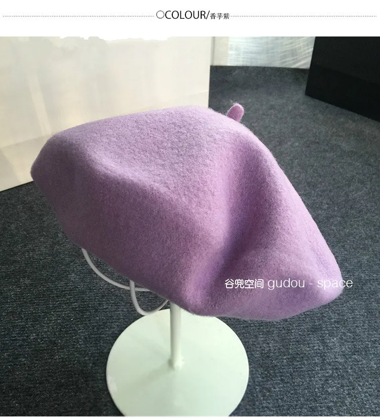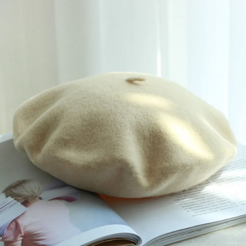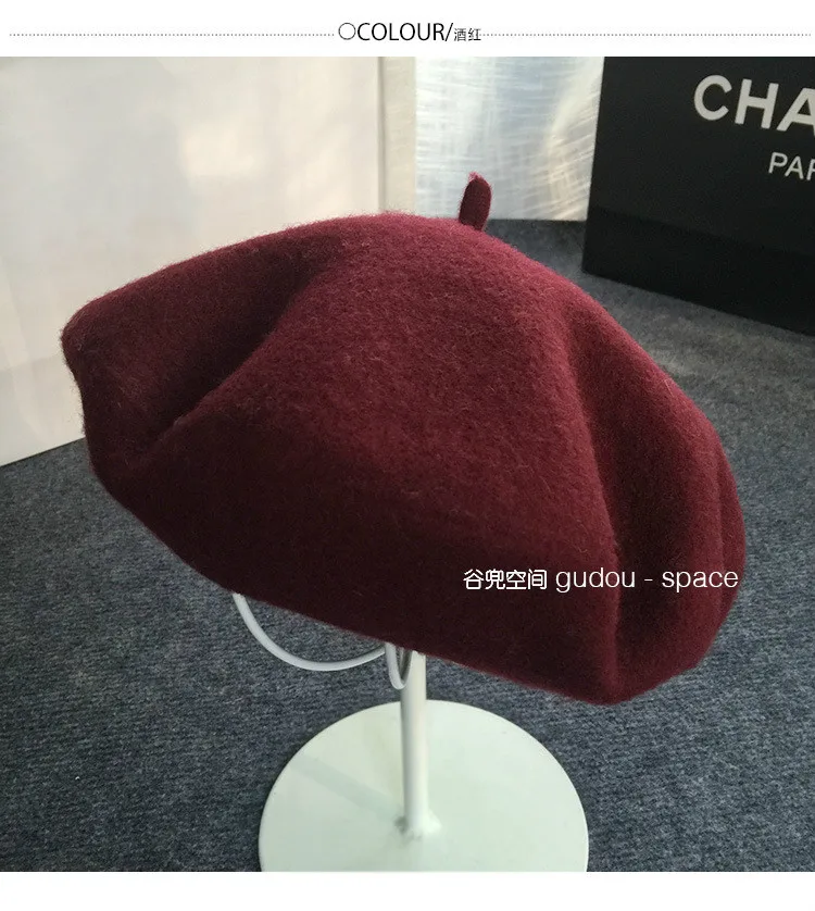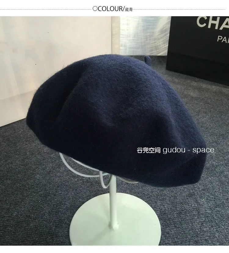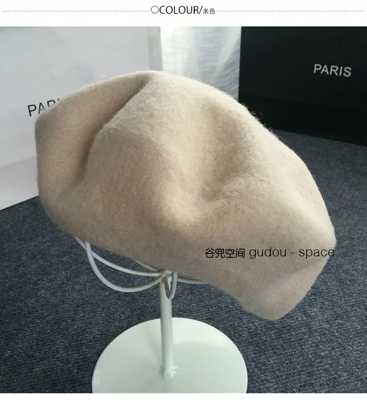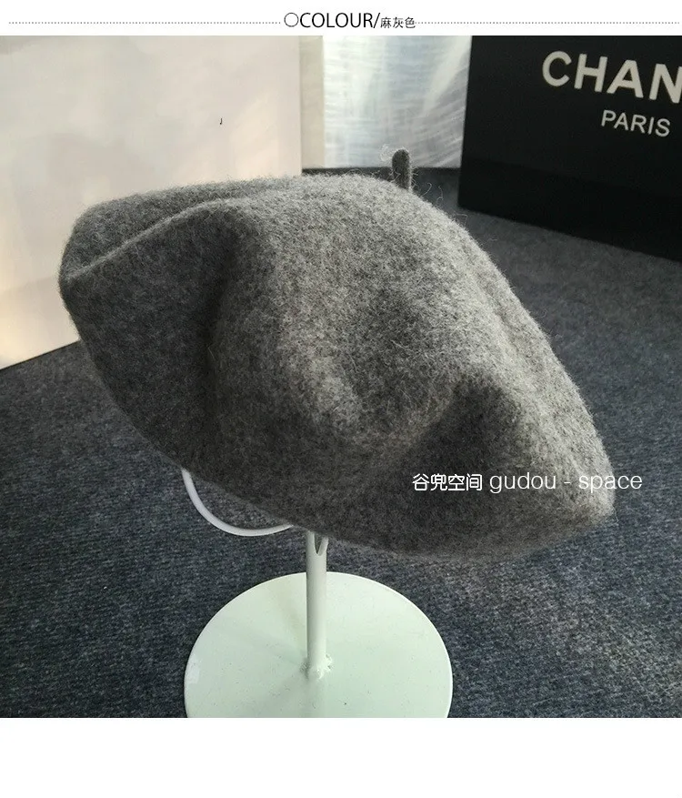 Color: Dark Grey, Hat Size: One Size - Wool Thick Berets Artist French Beret Women Painter Hat Girls Female Warm Walking Cap