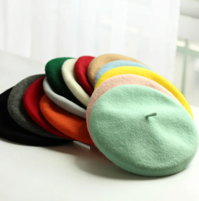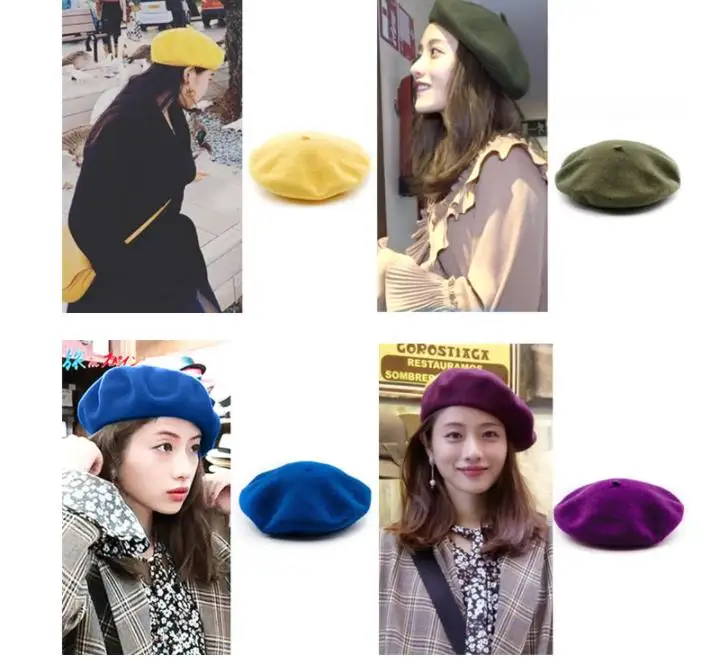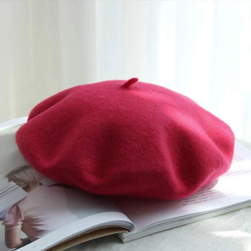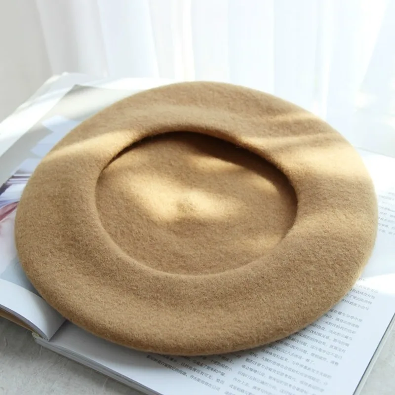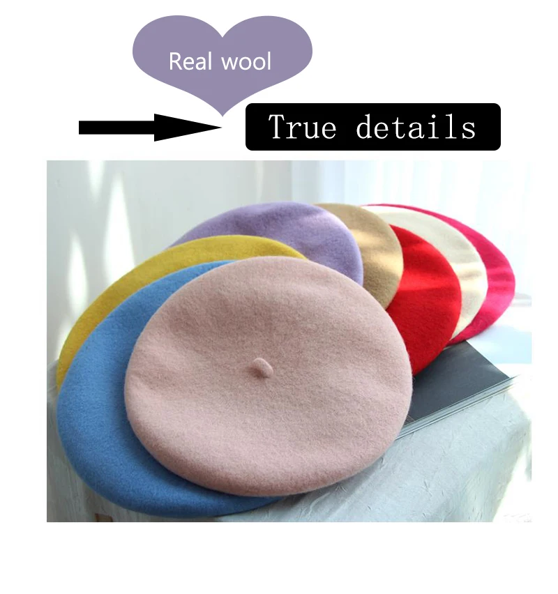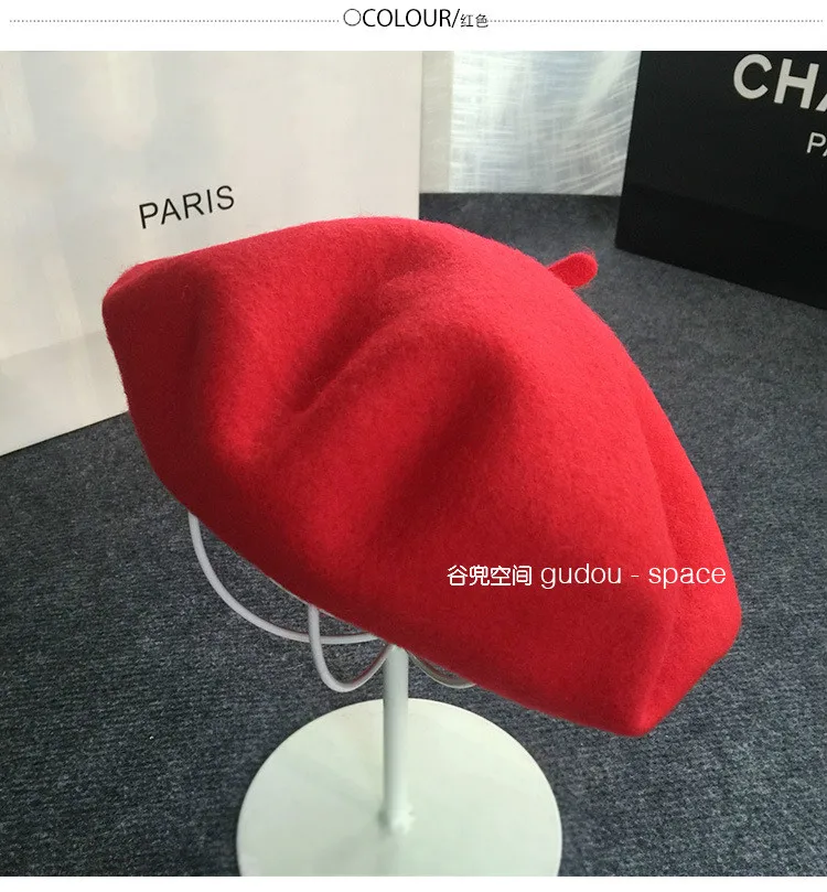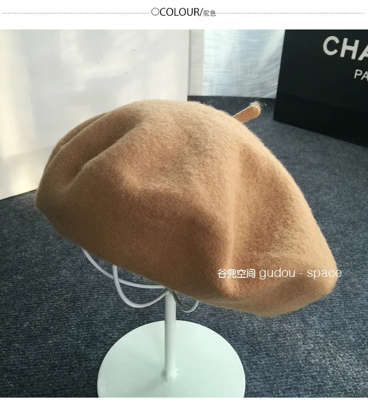 Color: Dark Grey, Hat Size: One Size - Wool Thick Berets Artist French Beret Women Painter Hat Girls Female Warm Walking Cap