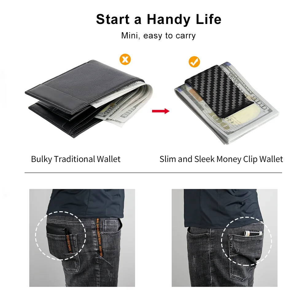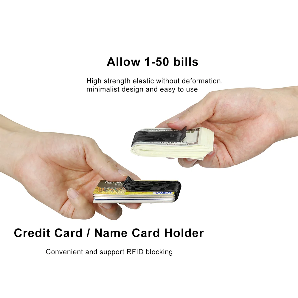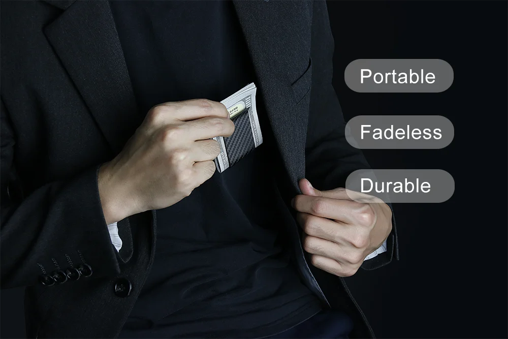 Crafted from real carbon fiber, this money clip offers unparalleled durability and sleekness.