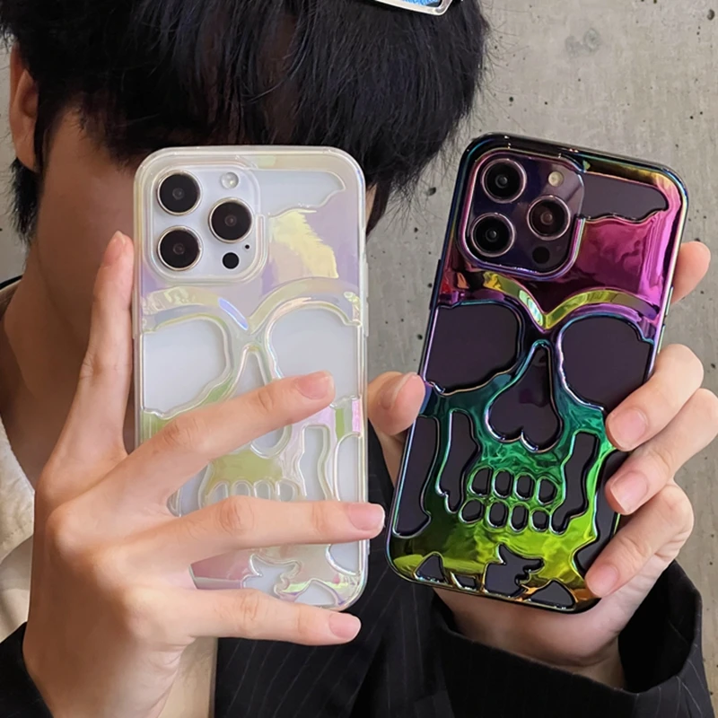 Features:Â Â Hollow Skull Laser Gradient Phone Case Matte Plating Ghostface Cover