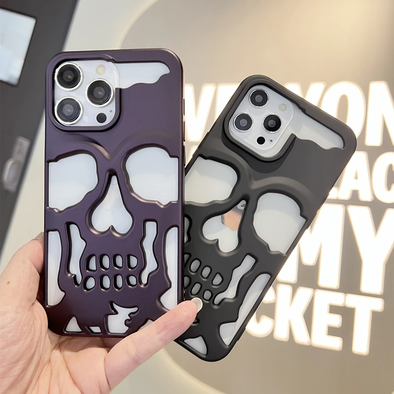 Features 1: Matte Hollow Out Gothic Skull Phone Case For iPhone 15 Pro Max Plus