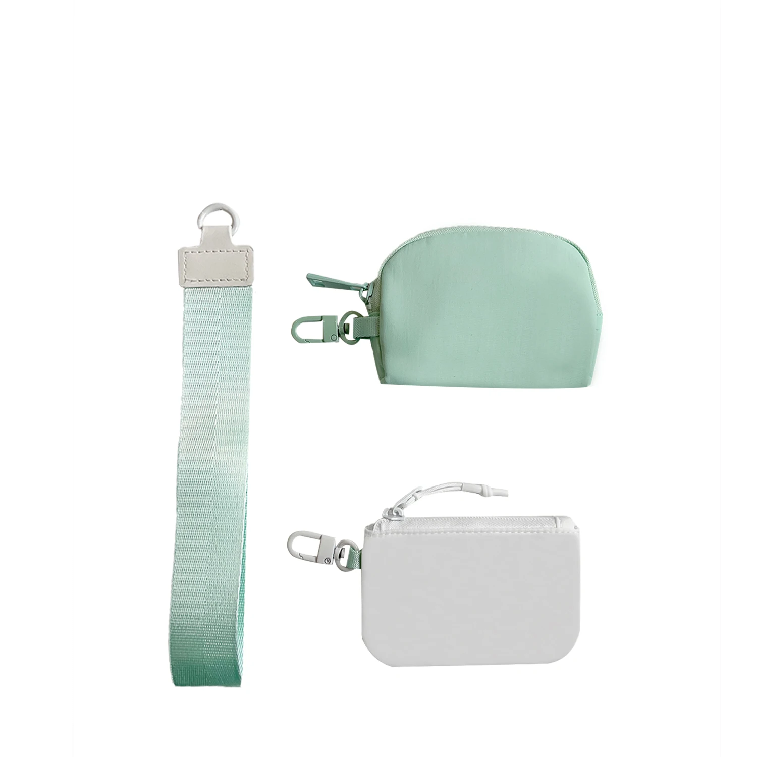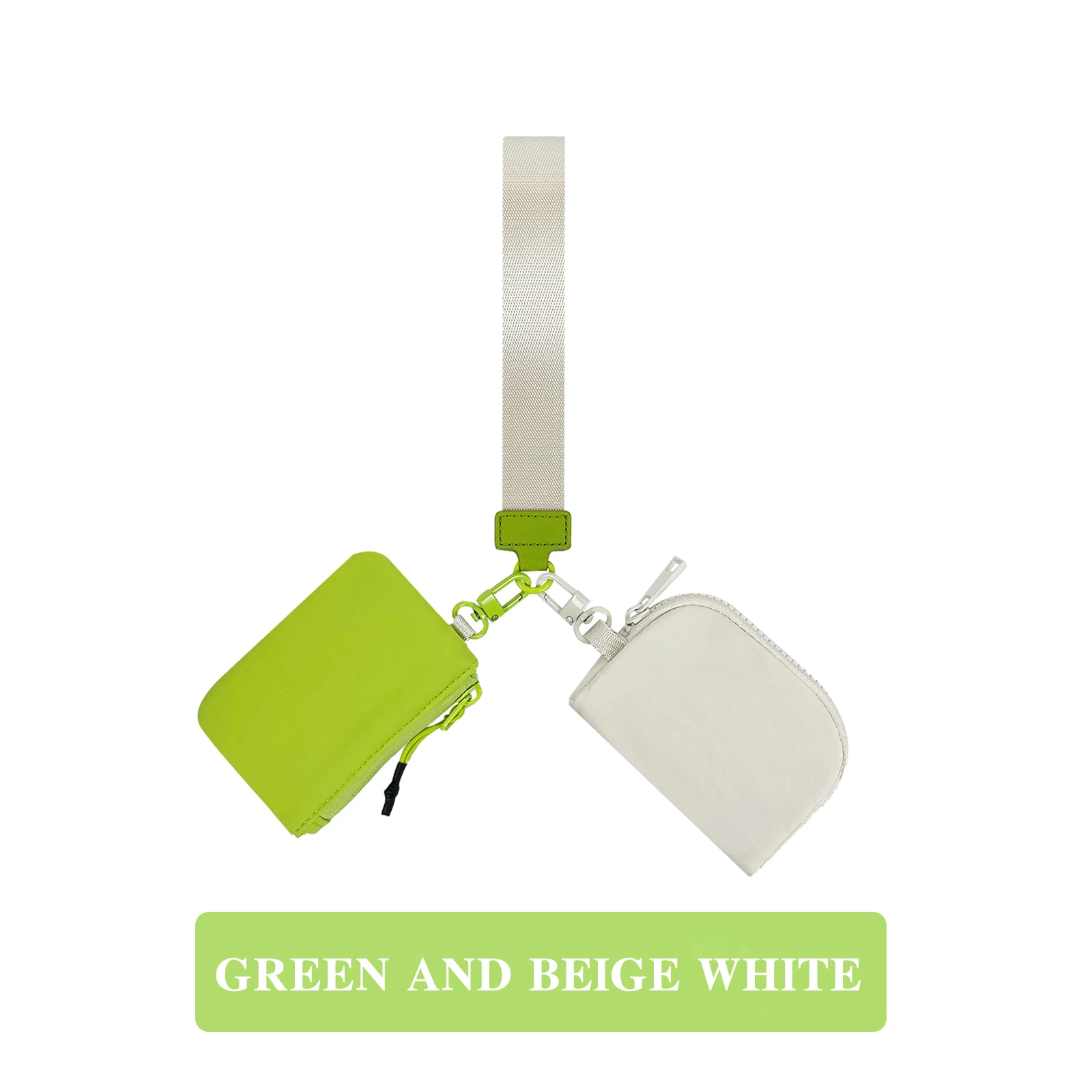 Mini Dual Pouch Wristlet Keychain Wallet Change Pocket Handbag Small Zipper Coin Purse Women Portable Detachable Key Card Holder
