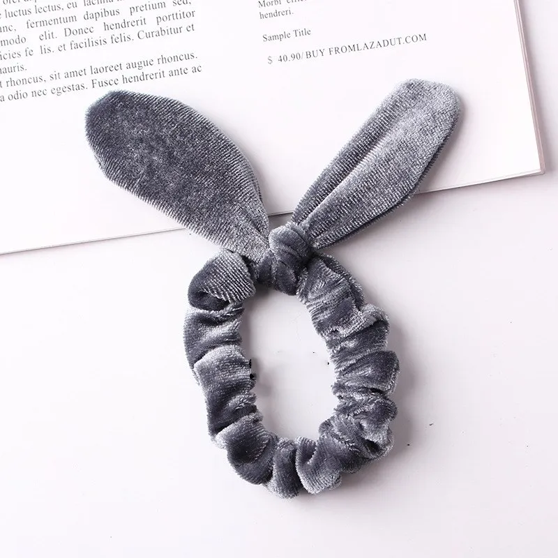 Color: Dark Grey - New Velvet Scrunchies Girls/Women velvet Bunny Ear Knot Bow Hair Bands Rabbit Ear Hair tie Ponytail Hair Accessories