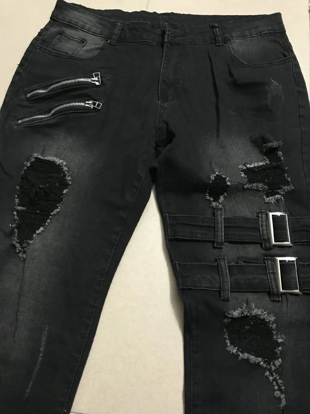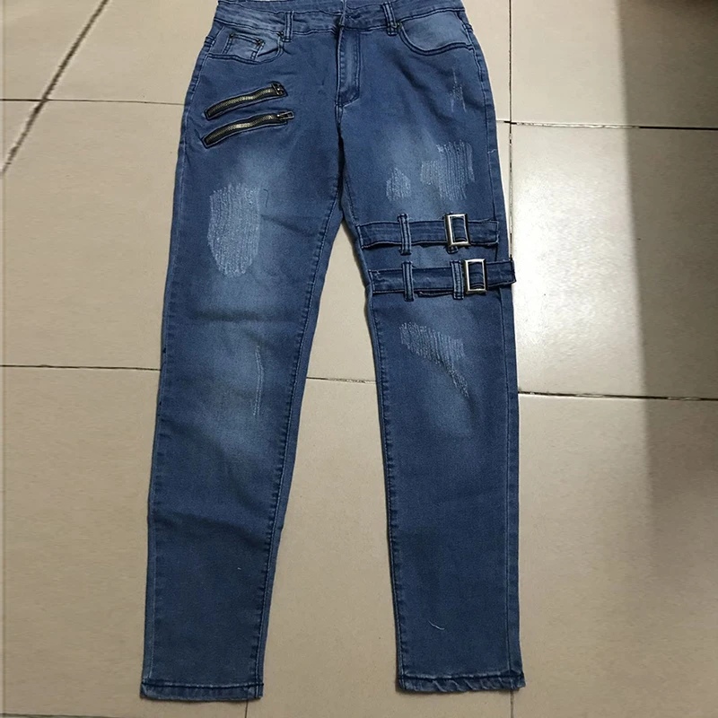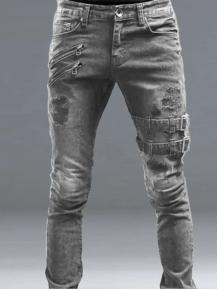 Color: Dark Grey, Size: L, Ships From: CHINA - Men's Punk Hip Hop Black Fashion Jeans Spring summer New Rock Motorcycle Street Wear Tight Casual Denim pants Straight leg pants