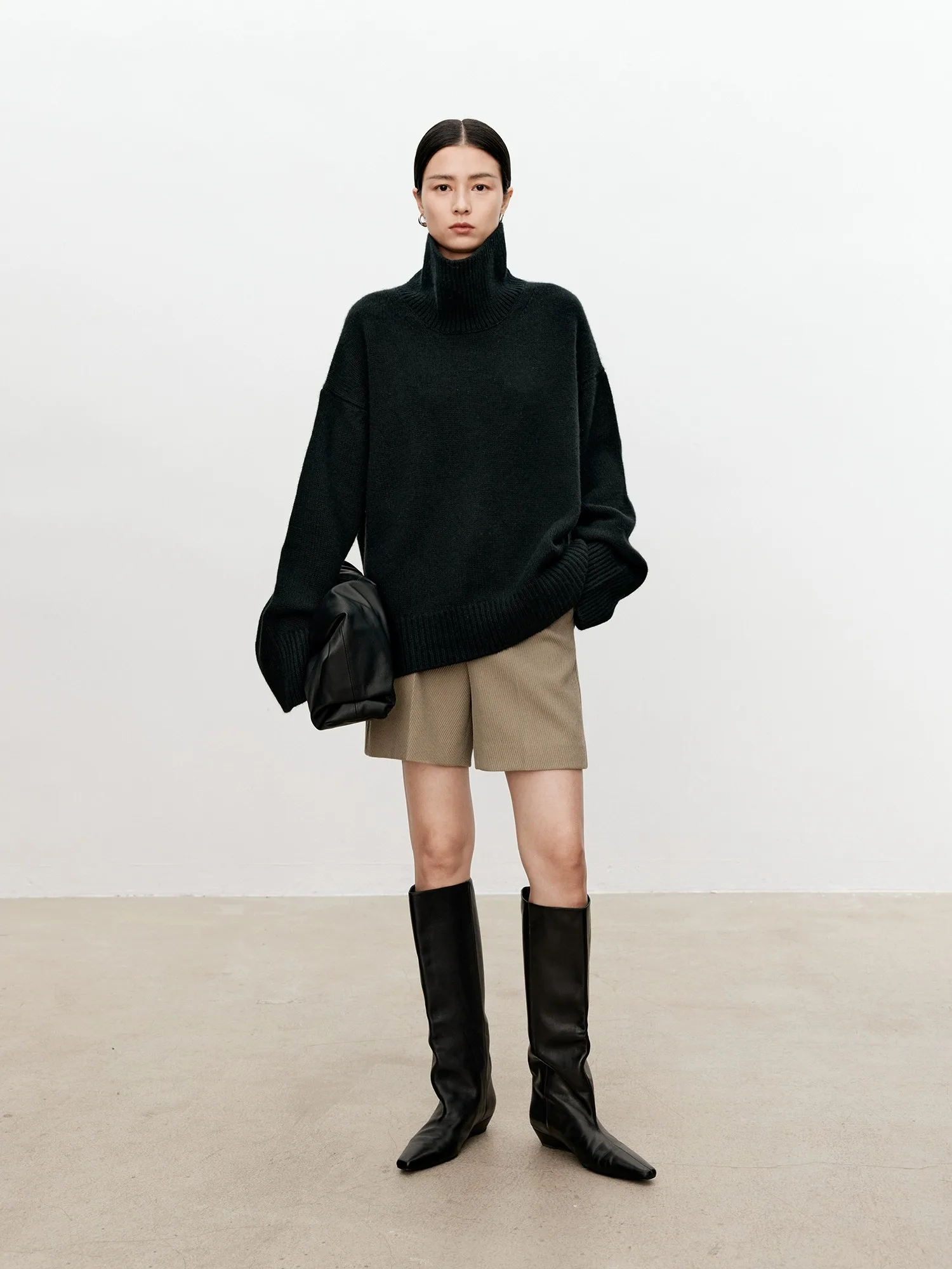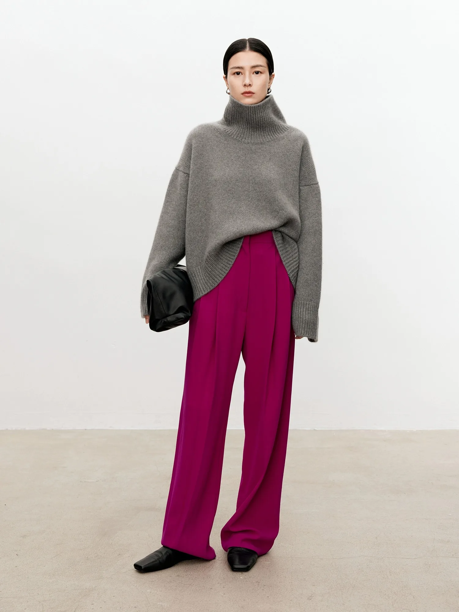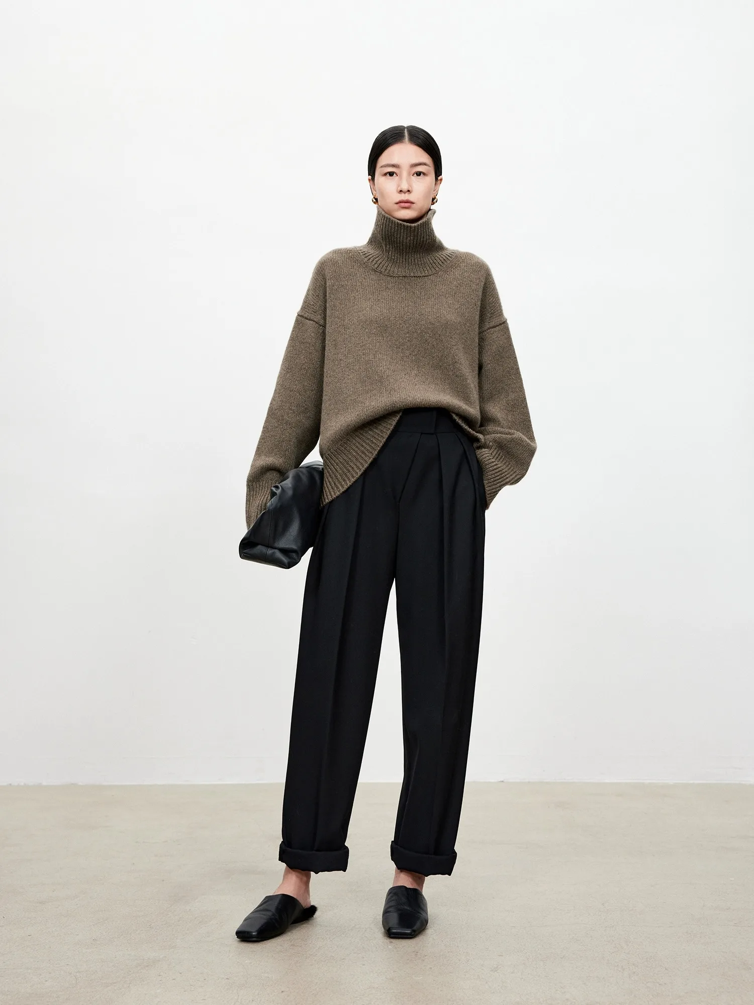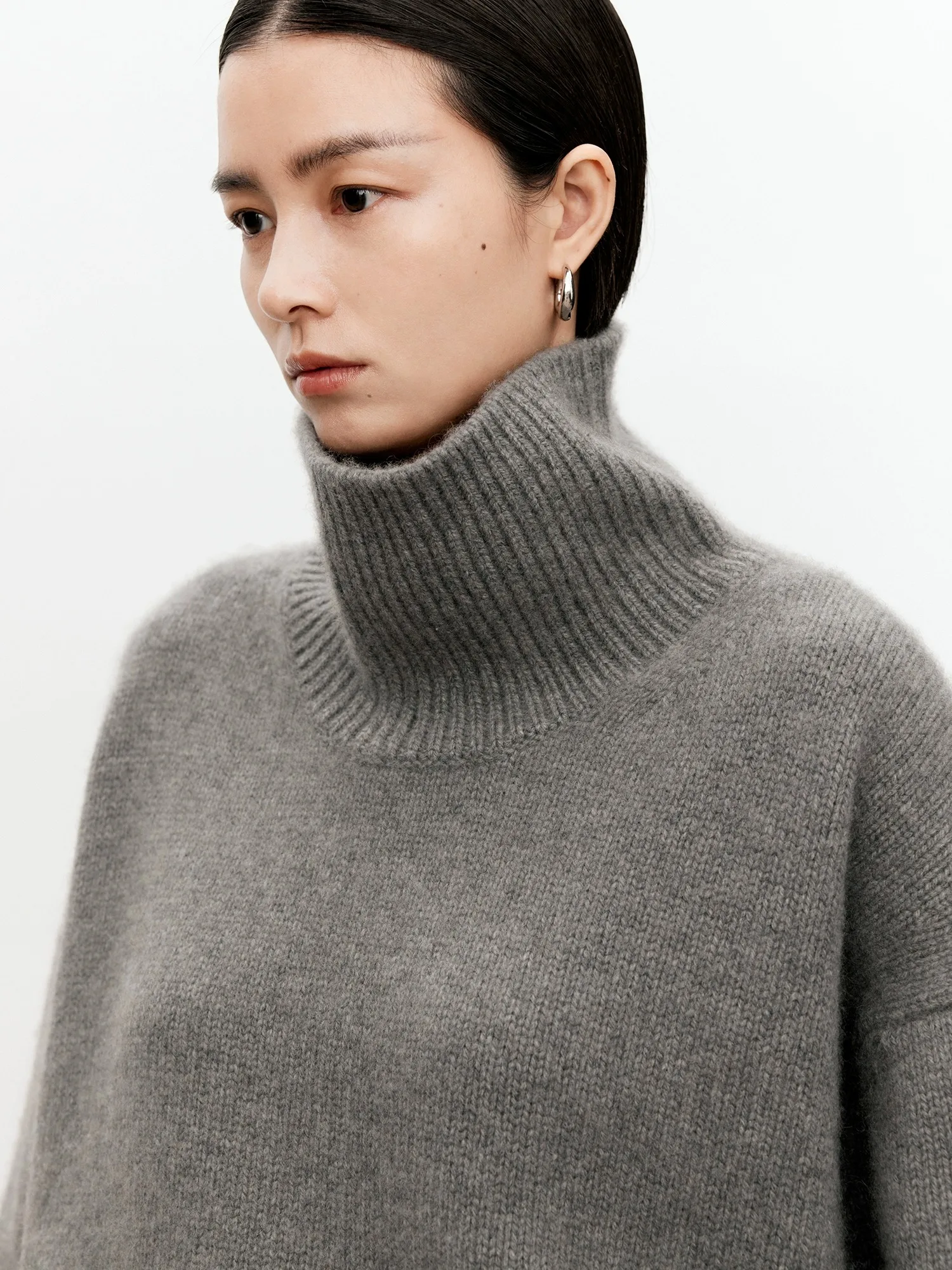 Color: Dark Grey, Size: S, Ships From: CHINA - Turtleneck pure cashmere sweater female loose and thick languid lazy wind pullover sweater knitting base WOOL sweater
