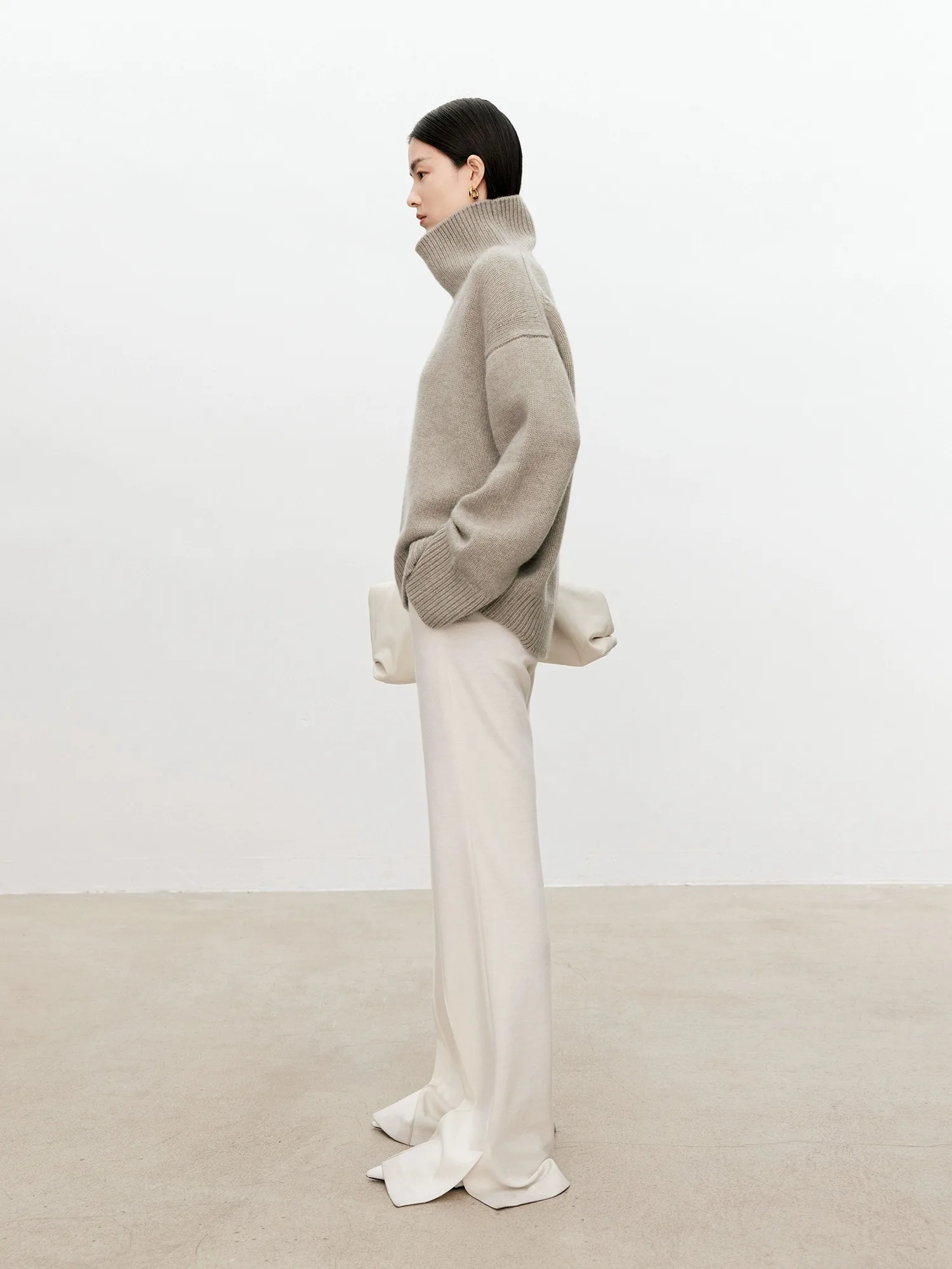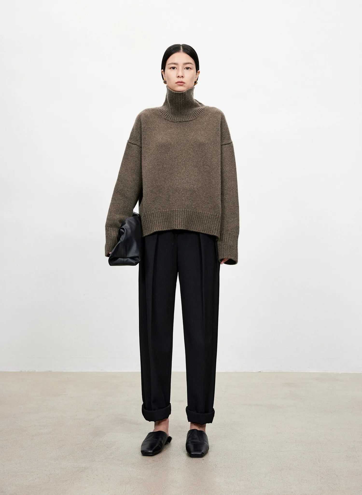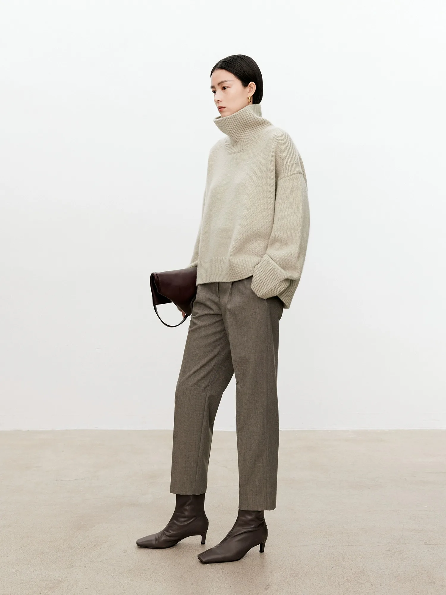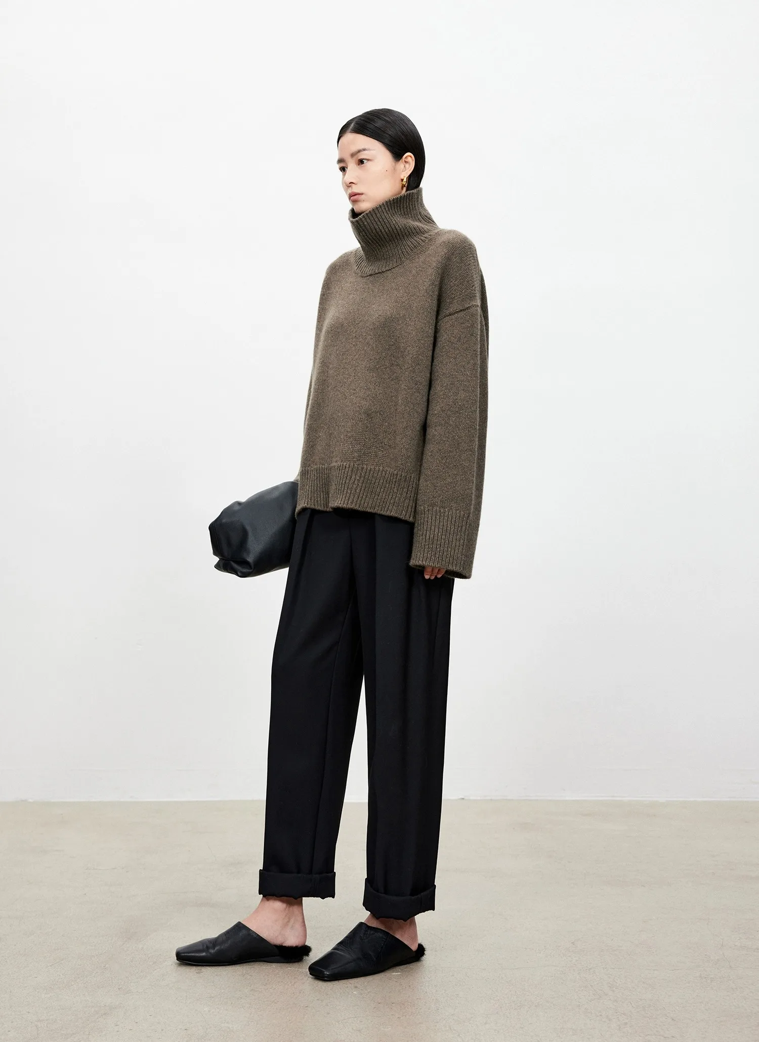 Color: Dark Grey, Size: S, Ships From: CHINA - Turtleneck pure cashmere sweater female loose and thick languid lazy wind pullover sweater knitting base WOOL sweater