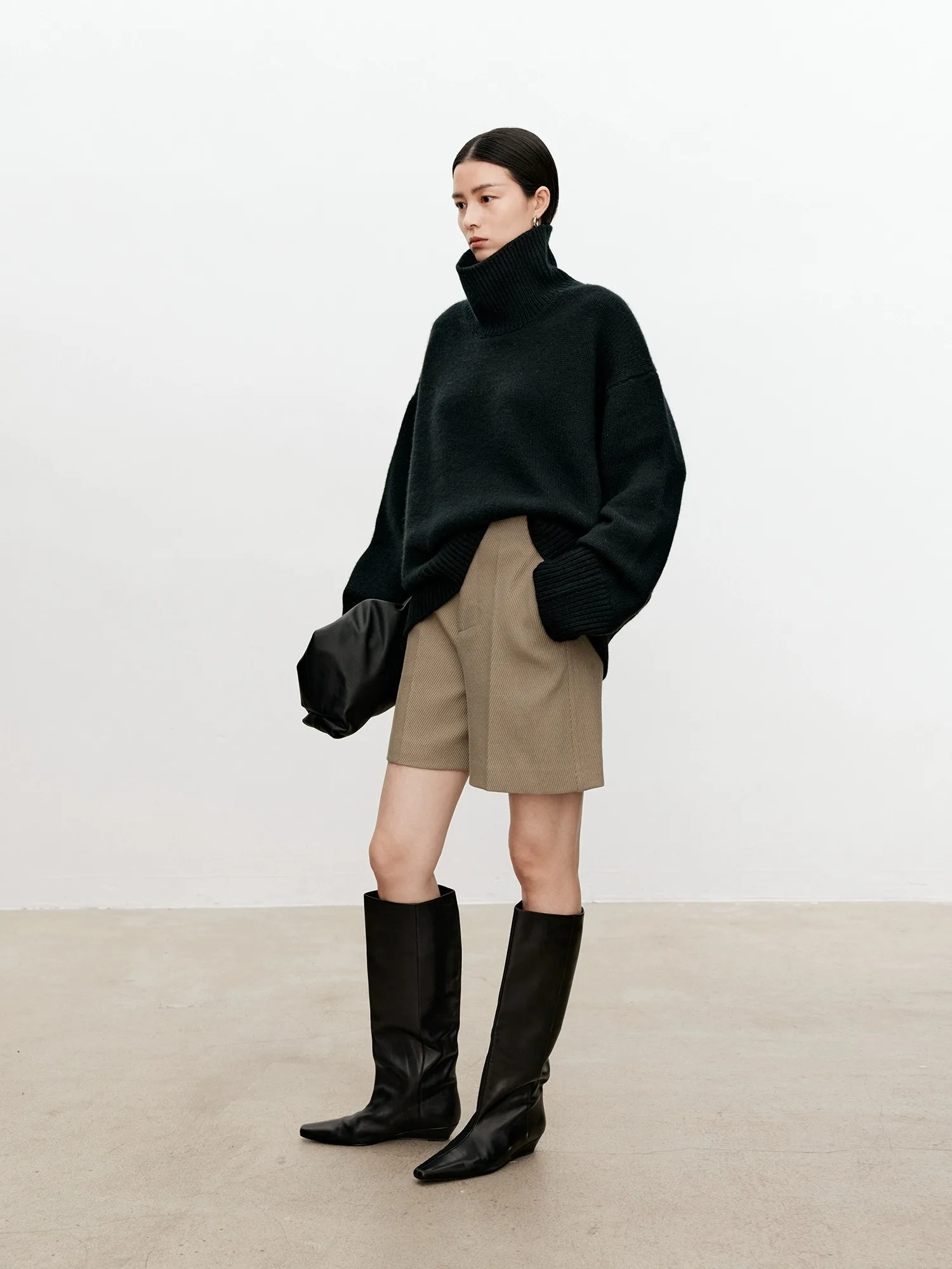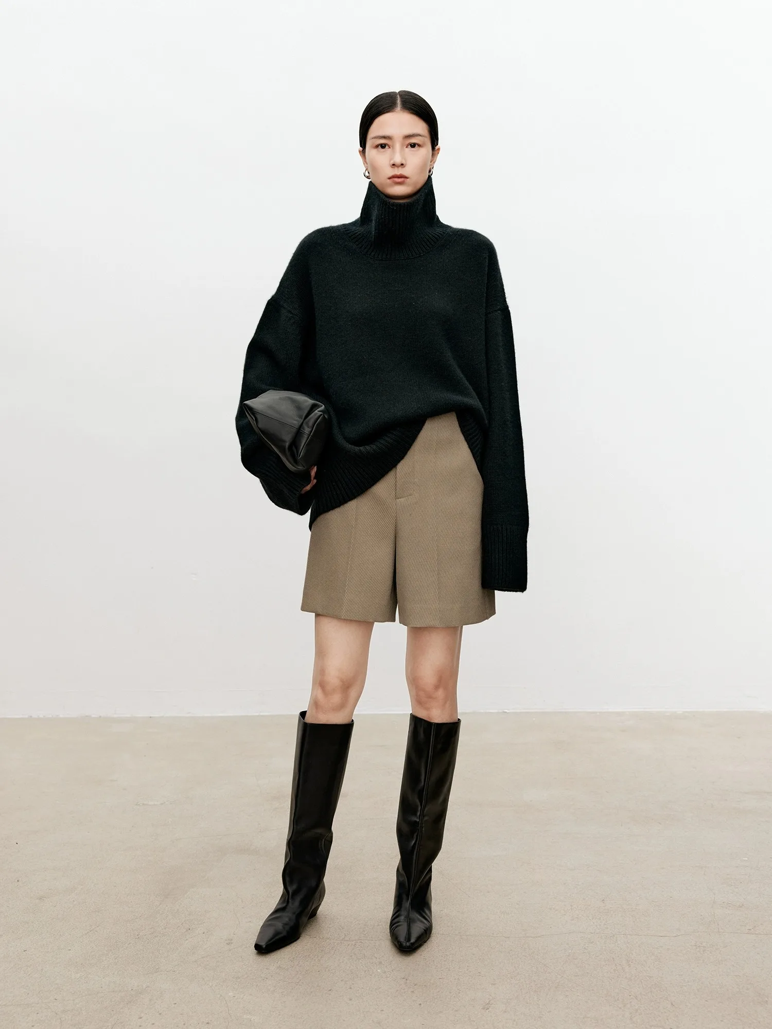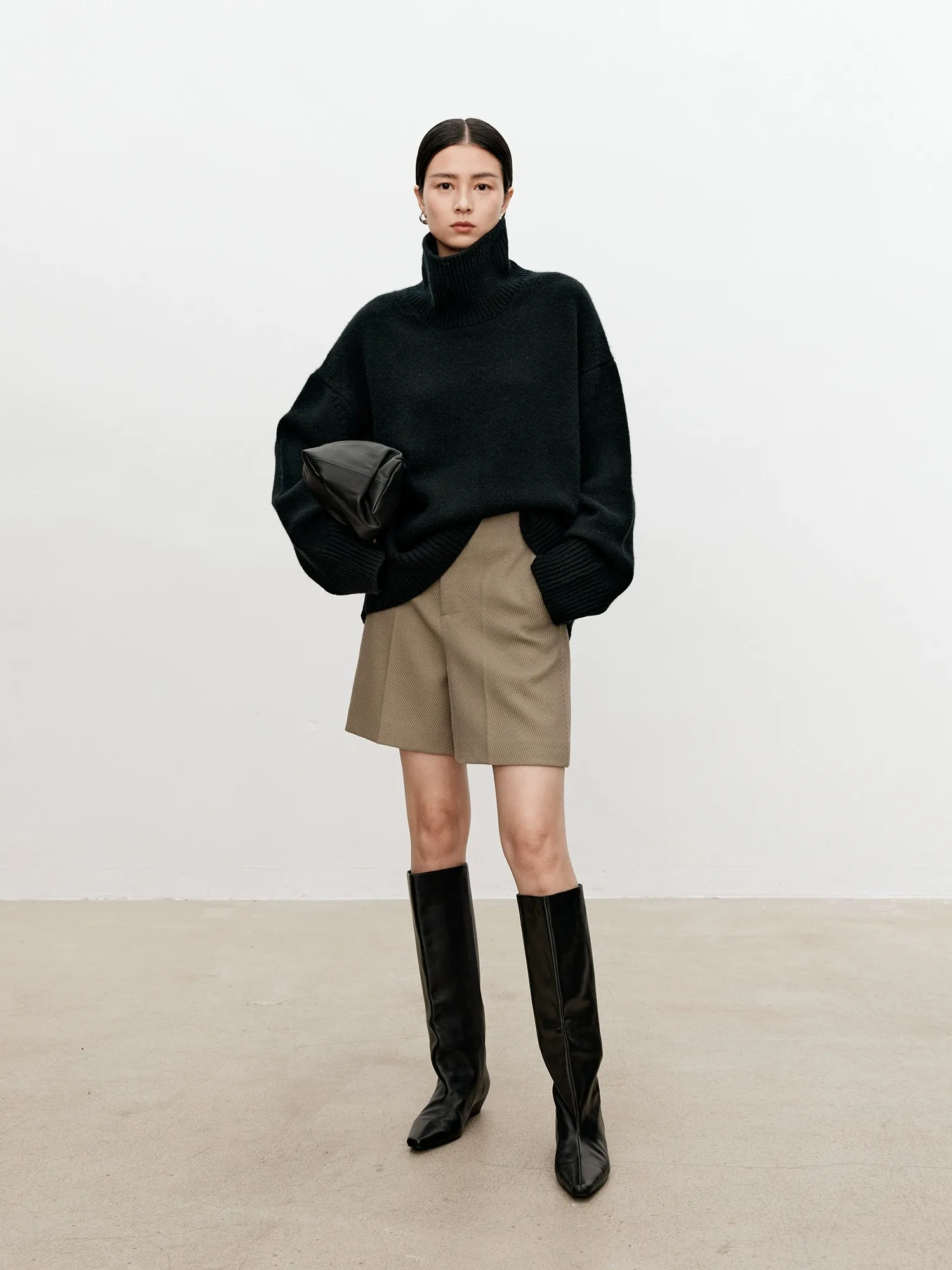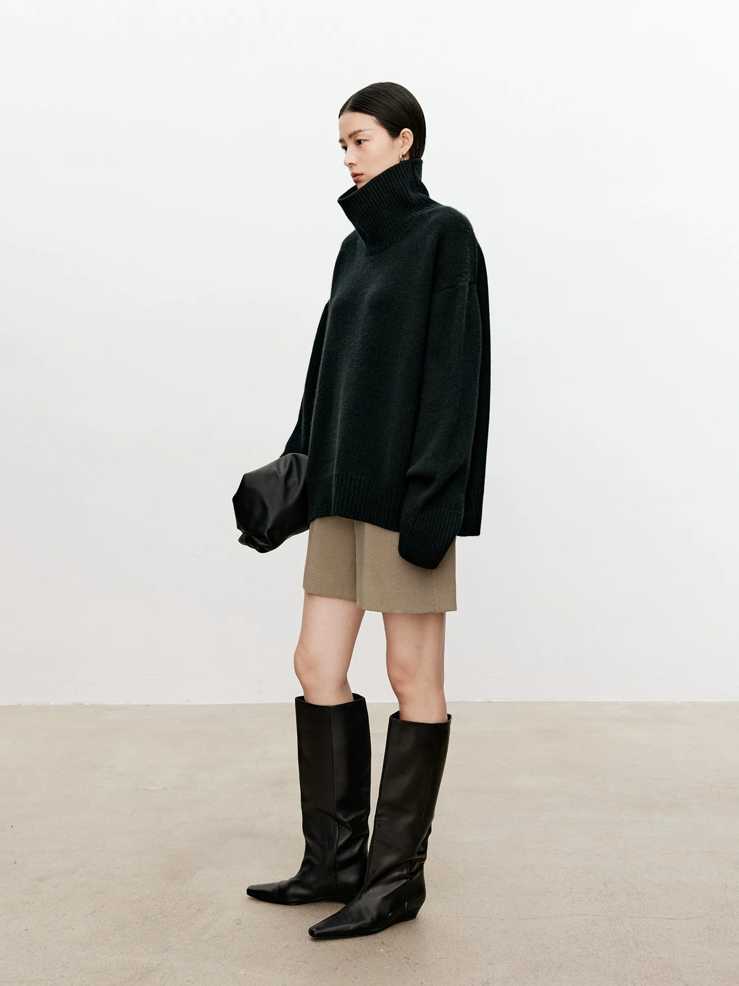Color: Dark Grey, Size: S, Ships From: CHINA - Turtleneck pure cashmere sweater female loose and thick languid lazy wind pullover sweater knitting base WOOL sweater