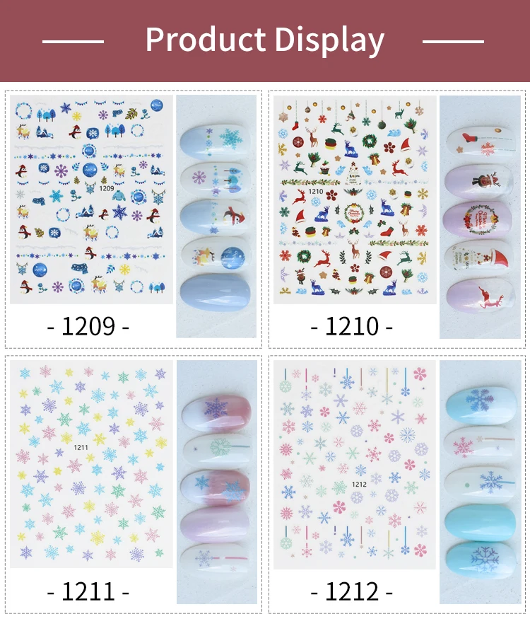 1Pc Christmas Stickers Santa Claus Snowflake Decals Catoon Image Muti- Pattern New Year Holiday Nail Art Stickers for Manicure