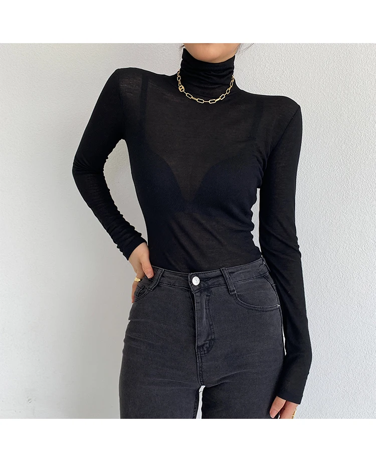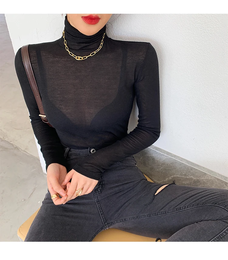 Color: Fuchsia, Size: XXL - New Fashion Basic Turtleneck Long Sleeve Women T-shirt Autumn Winter Long Sleeve Slim Stretch Tops Ladies Sexy Tees Plus Size