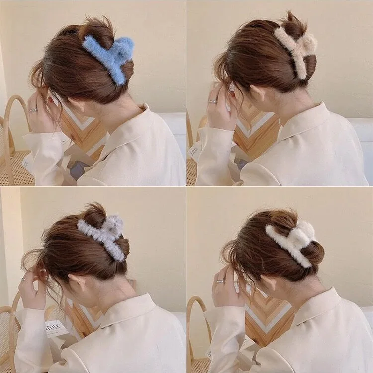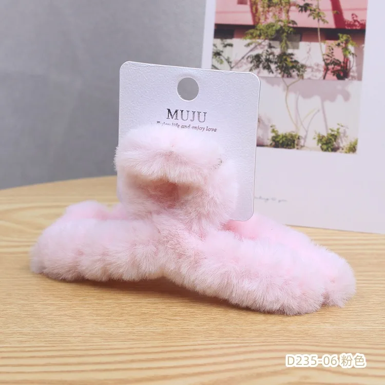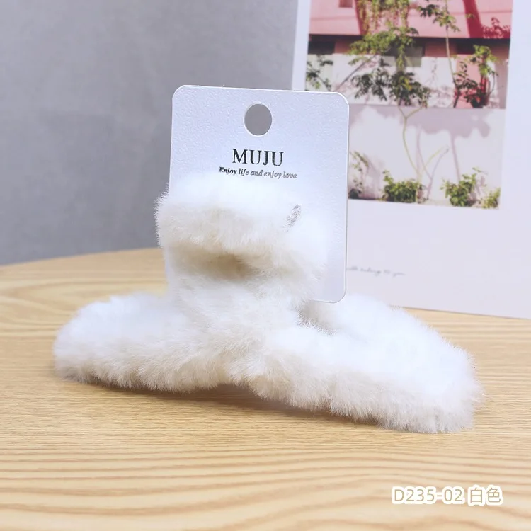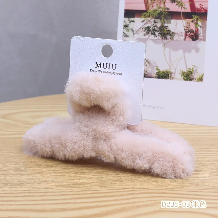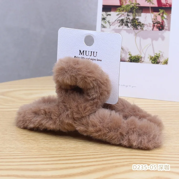 Color: Ginger - Advanced Sense Card Hair Clip Korea Autumn and Winter Hair Clip Sweet and Gentle Wind Back Hair Grab Plush Shark Clip