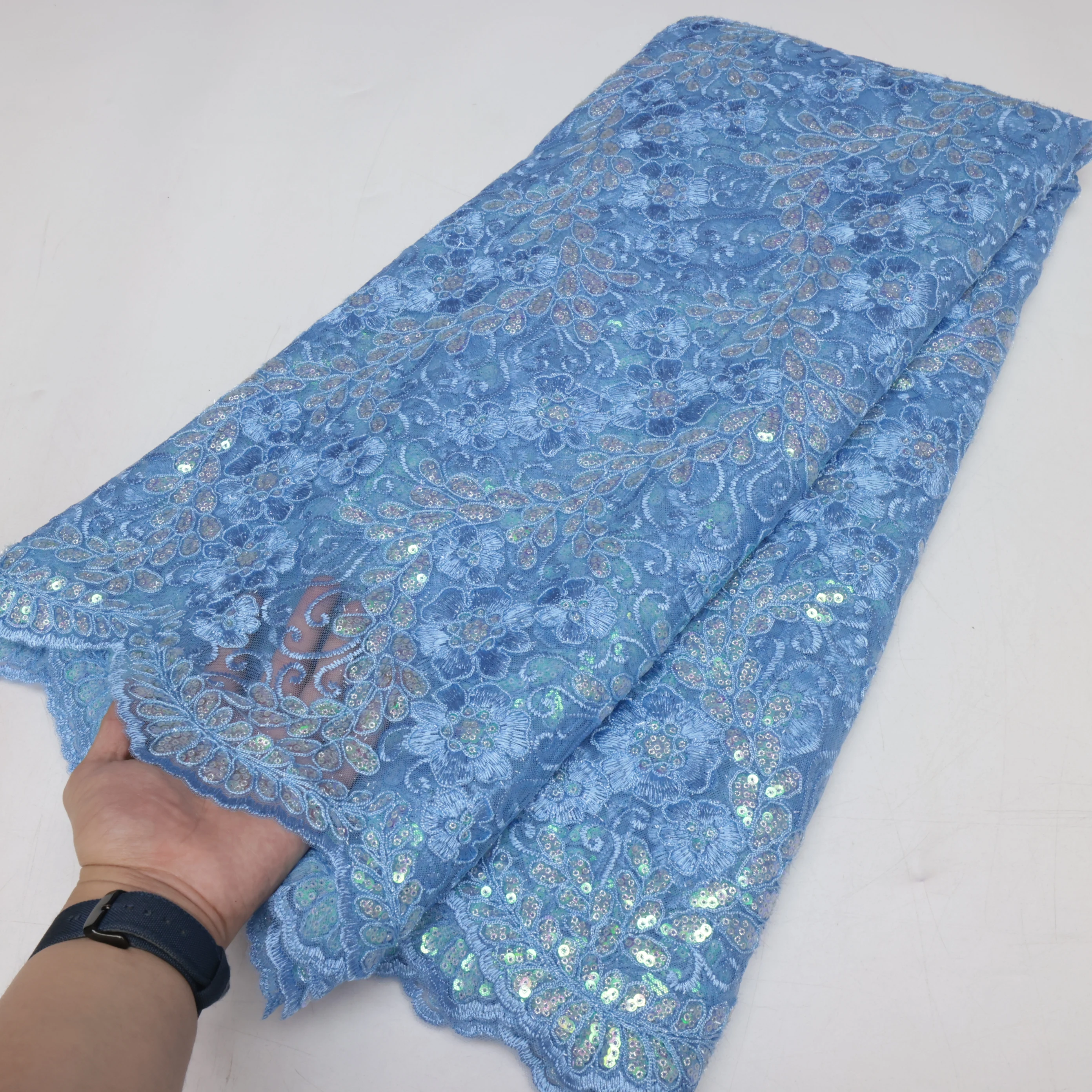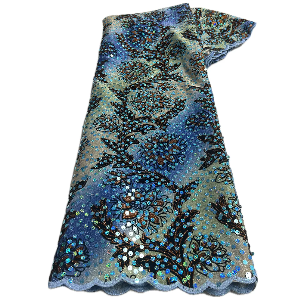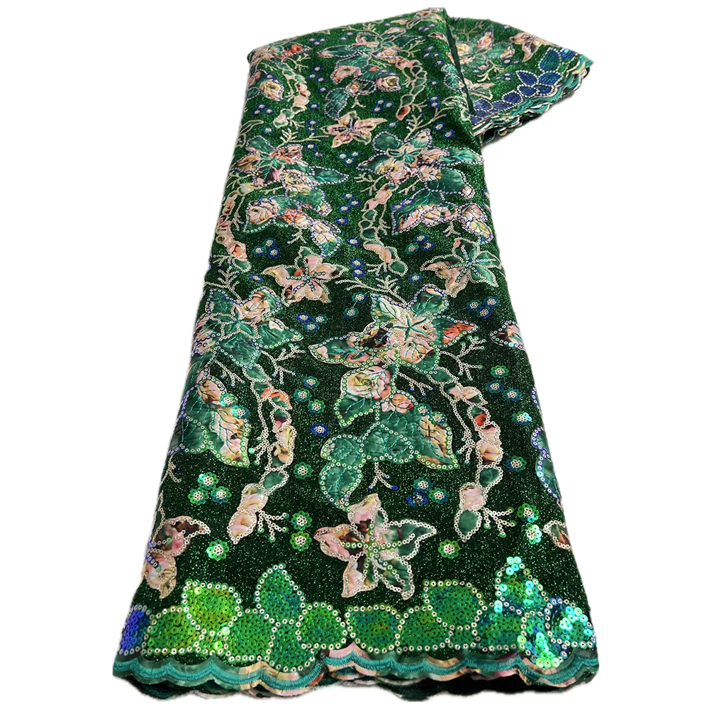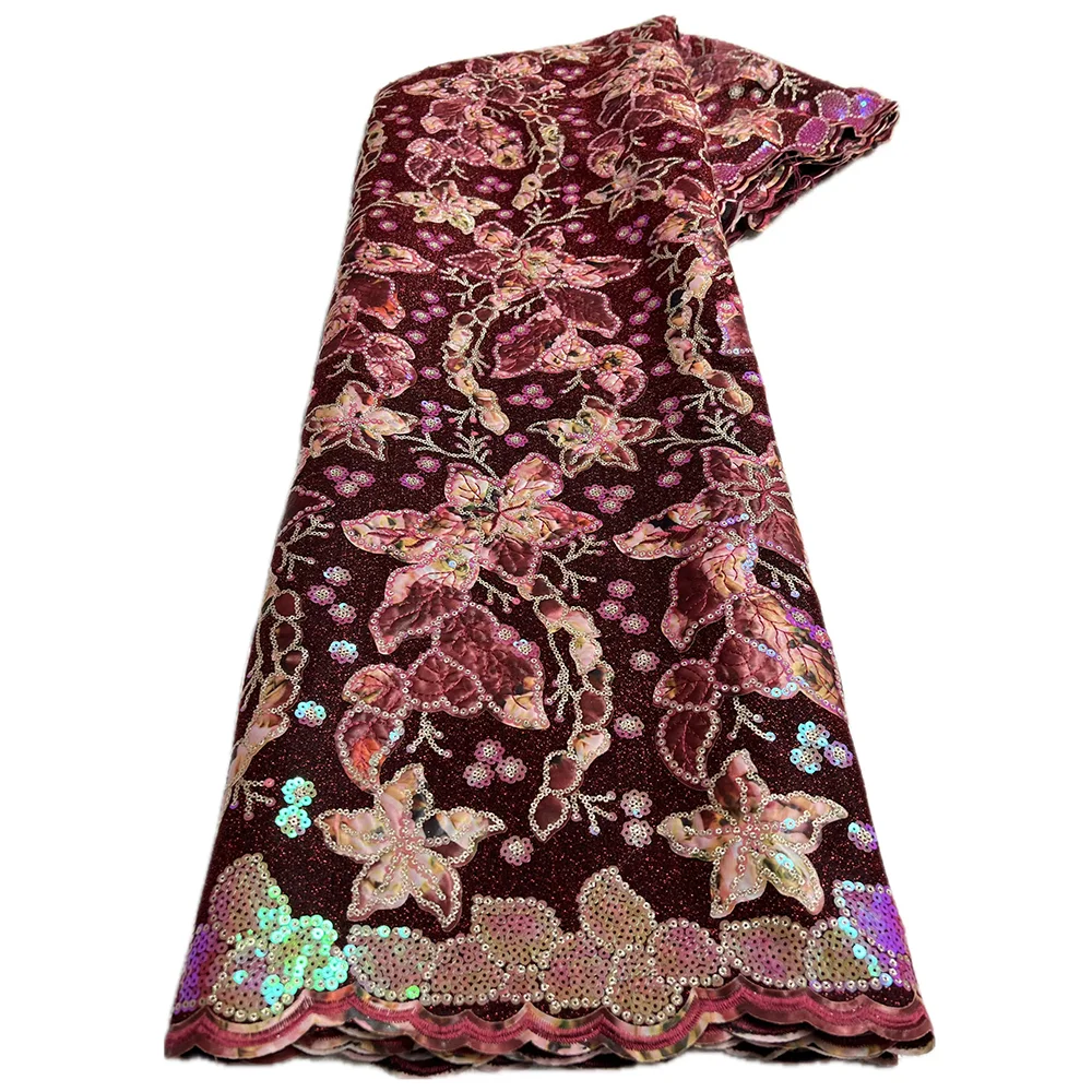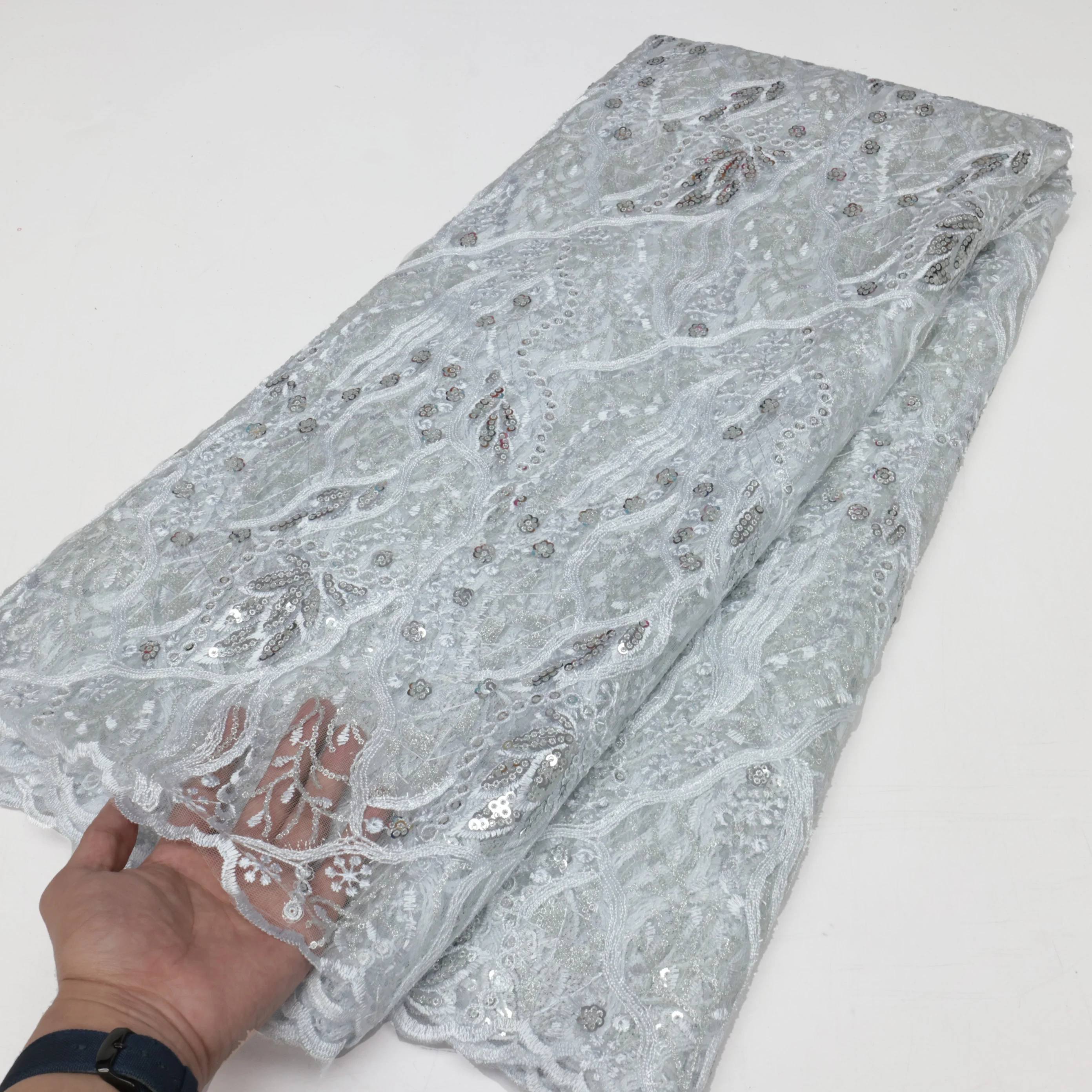 2025 African Nigerian Tulle Lace Fabric Sequins Sewing Guipure Beads Stone Embroidery Dresses High Quality 4 Yards