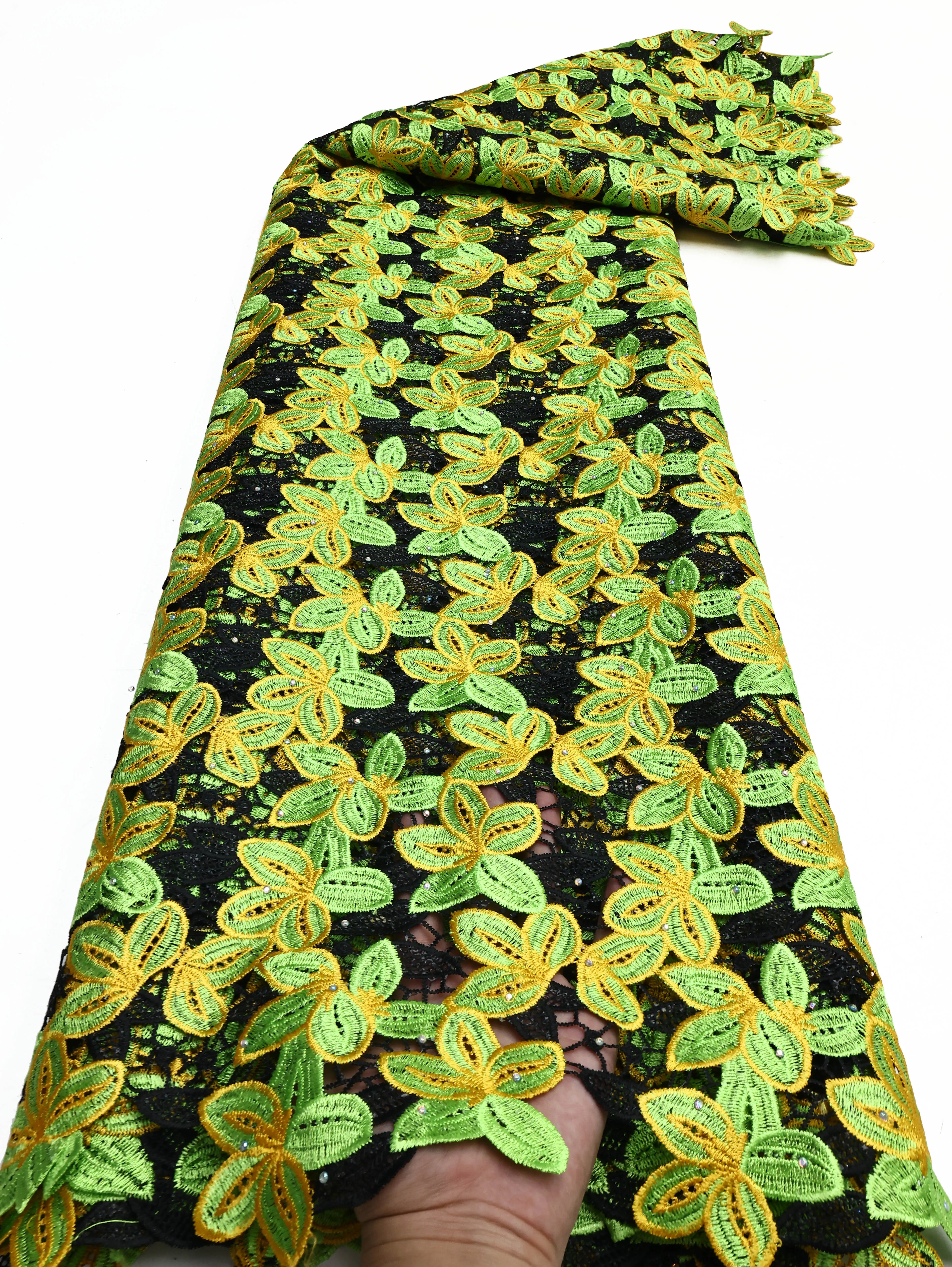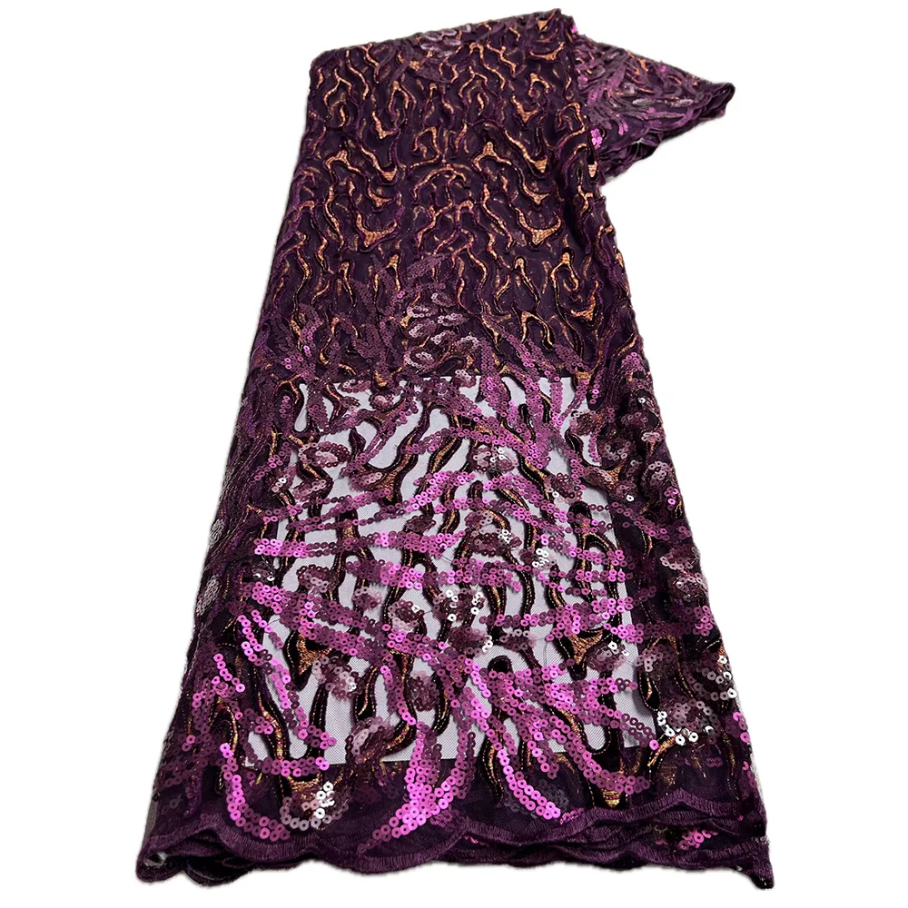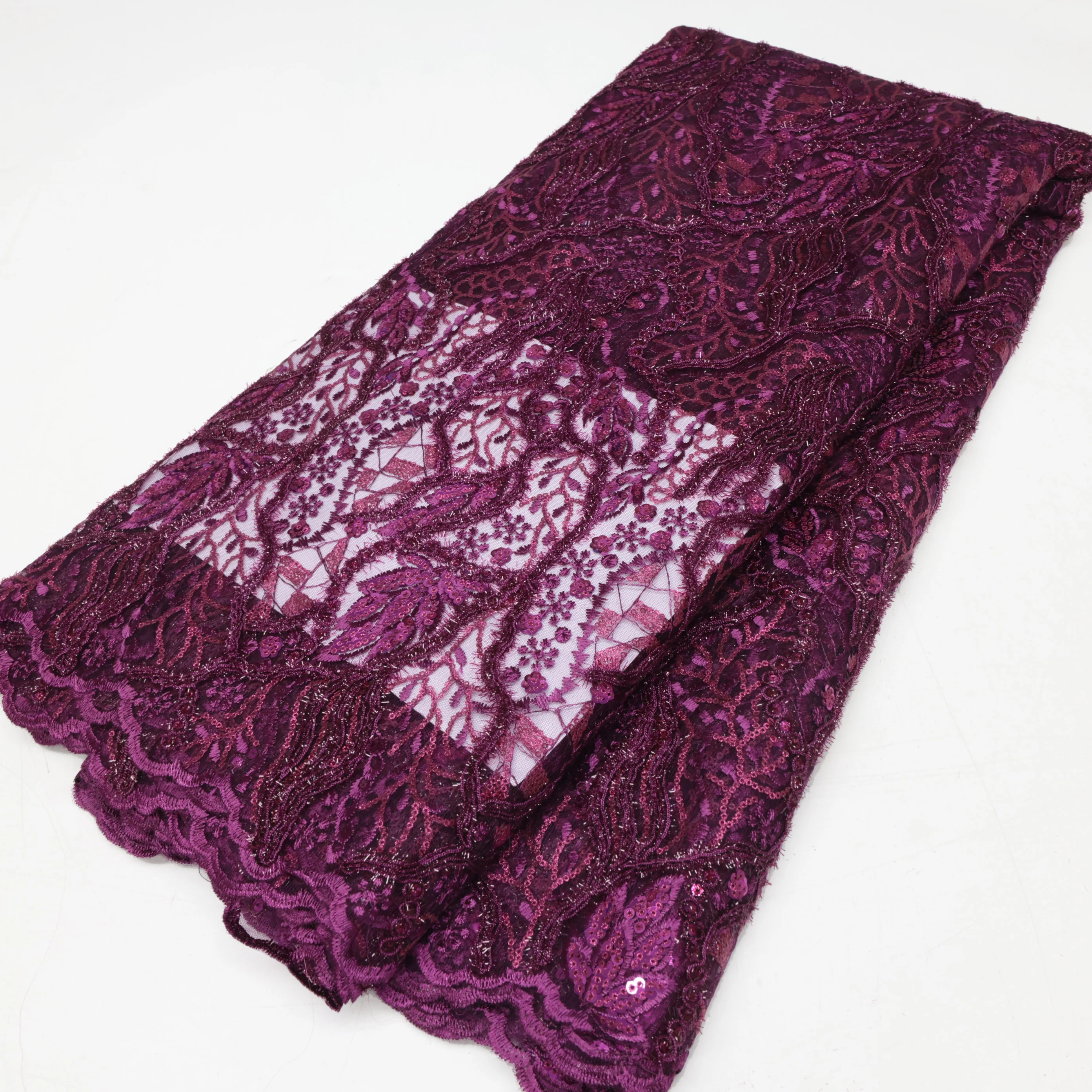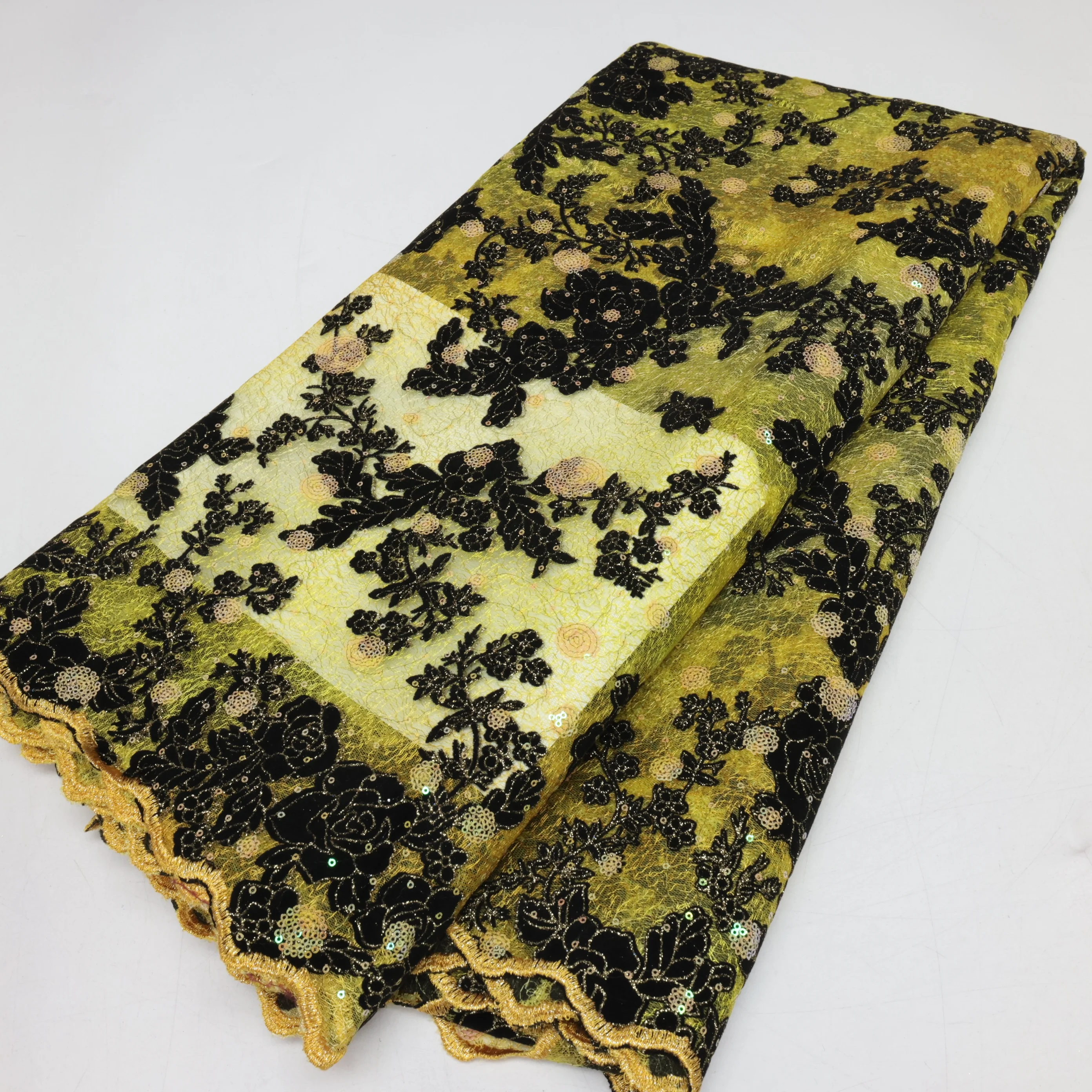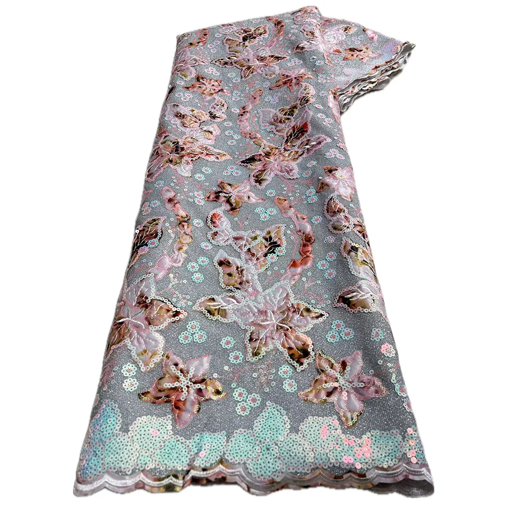 2025 African Nigerian Tulle Lace Fabric Sequins Sewing Guipure Beads Stone Embroidery Dresses High Quality 4 Yards