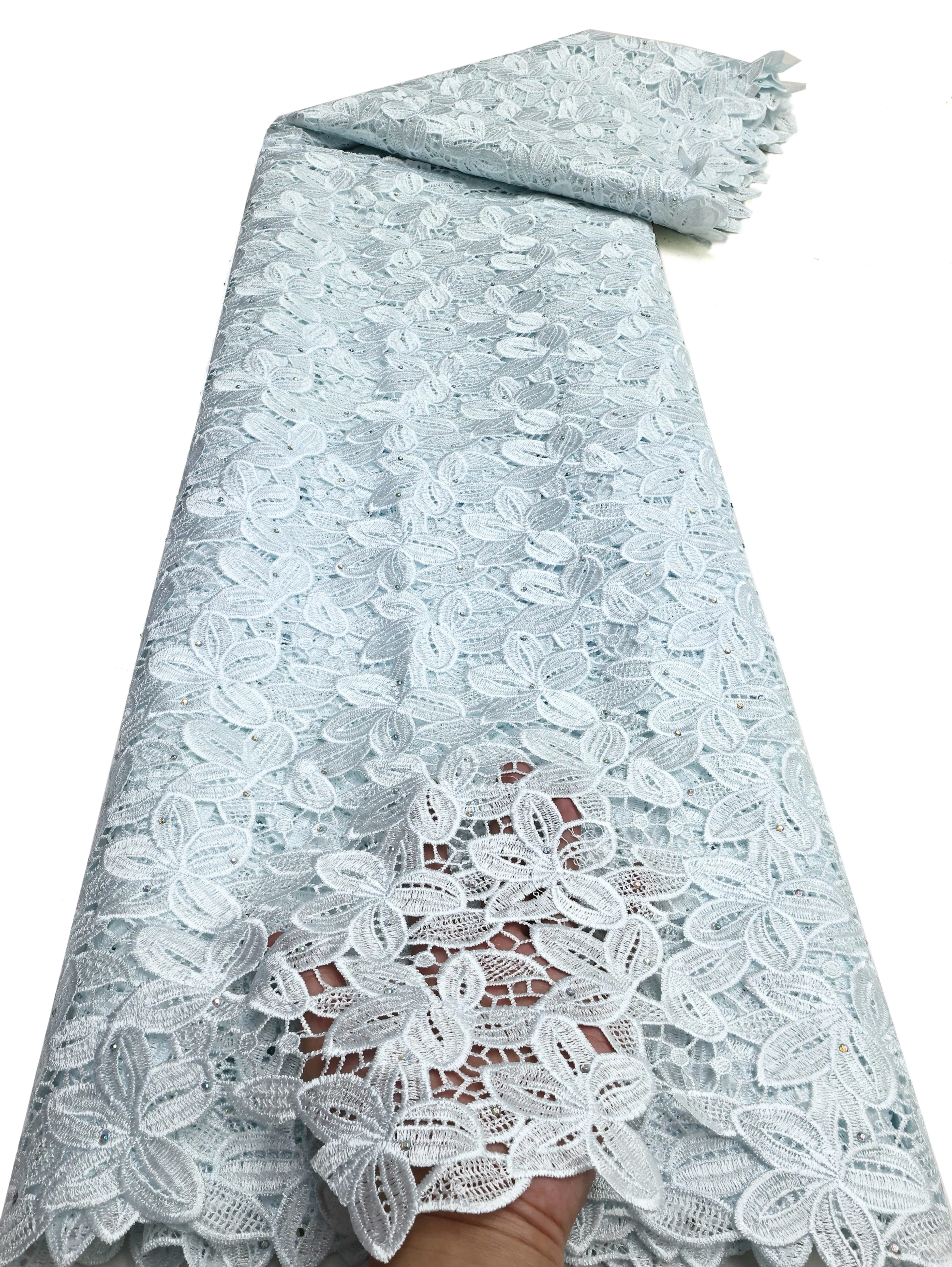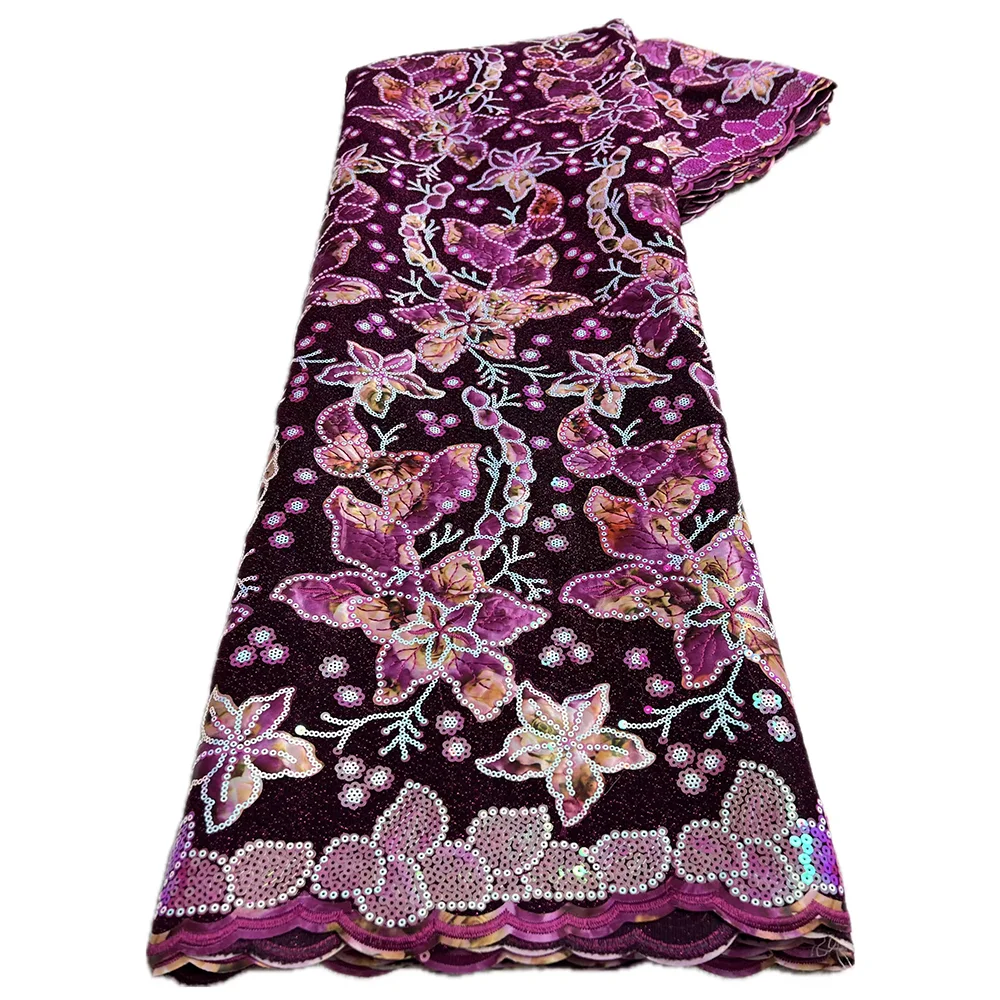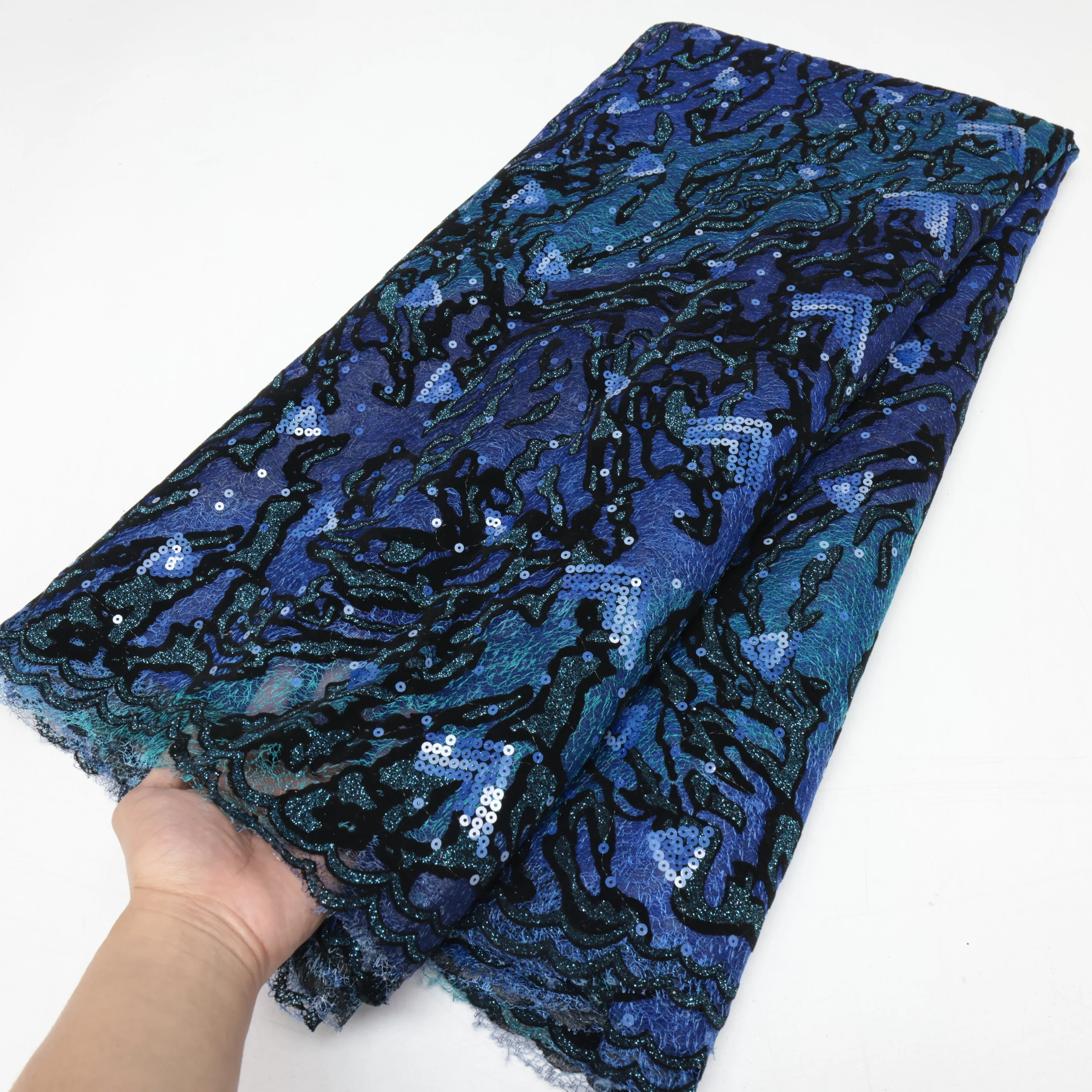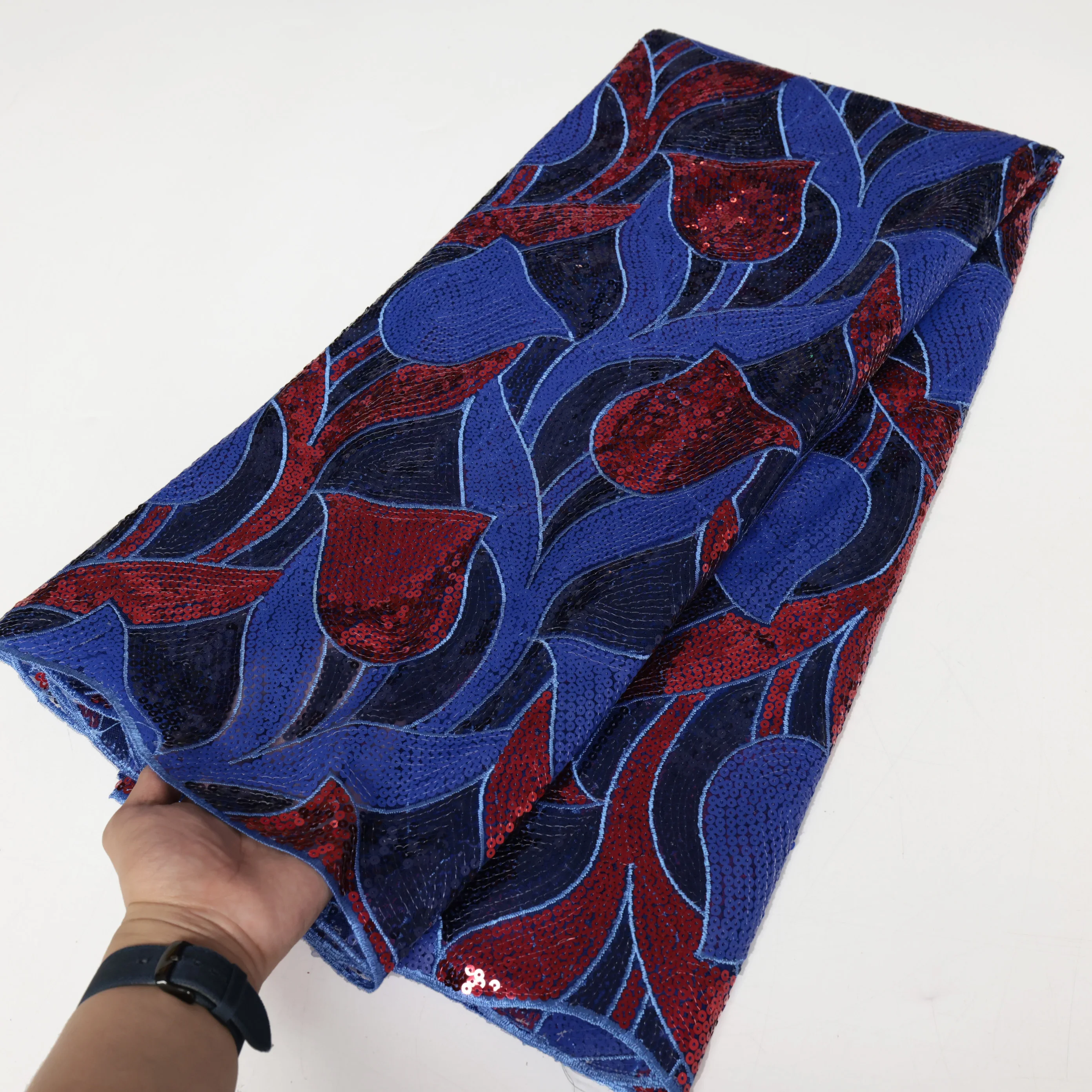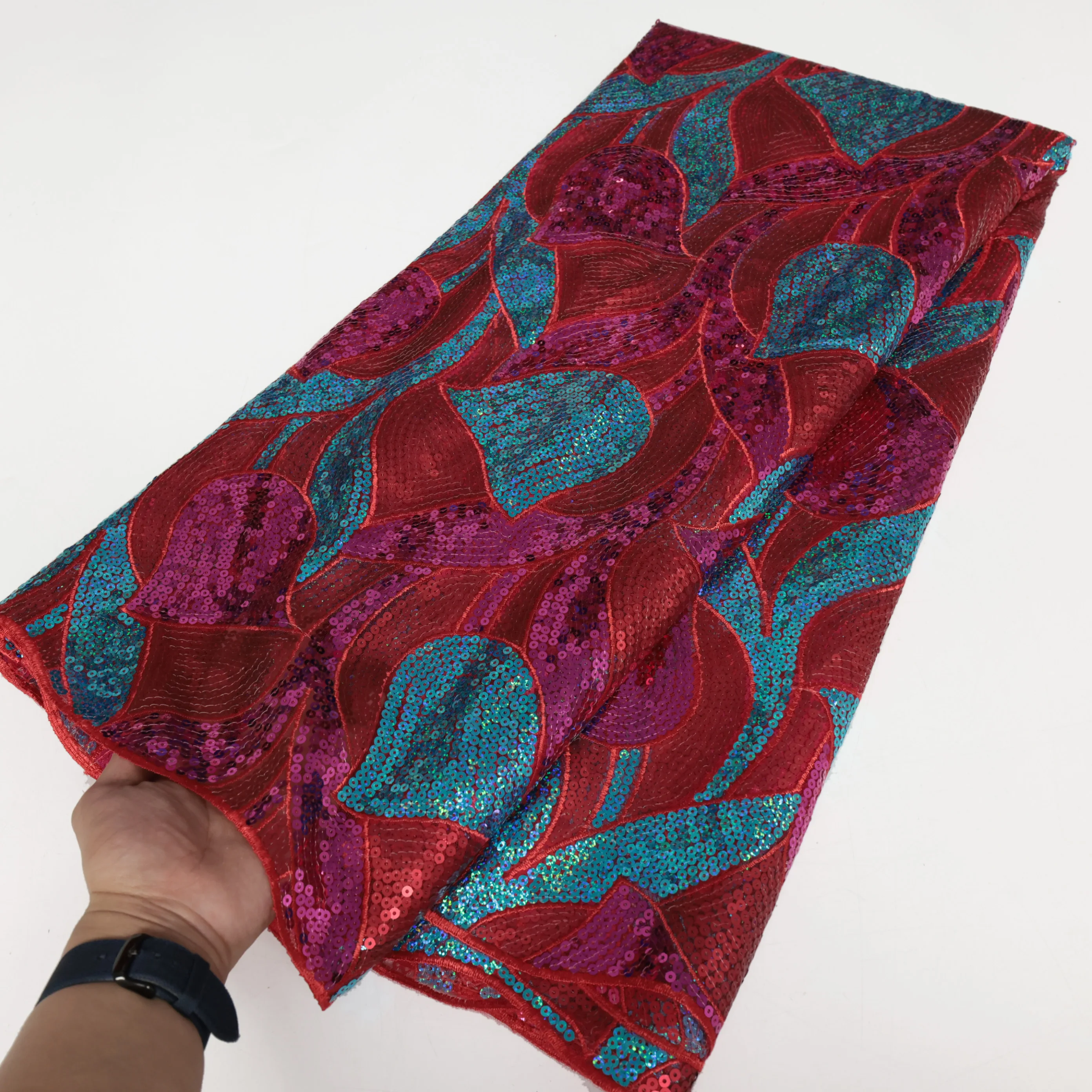 2025 African Nigerian Tulle Lace Fabric Sequins Sewing Guipure Beads Stone Embroidery Dresses High Quality 4 Yards