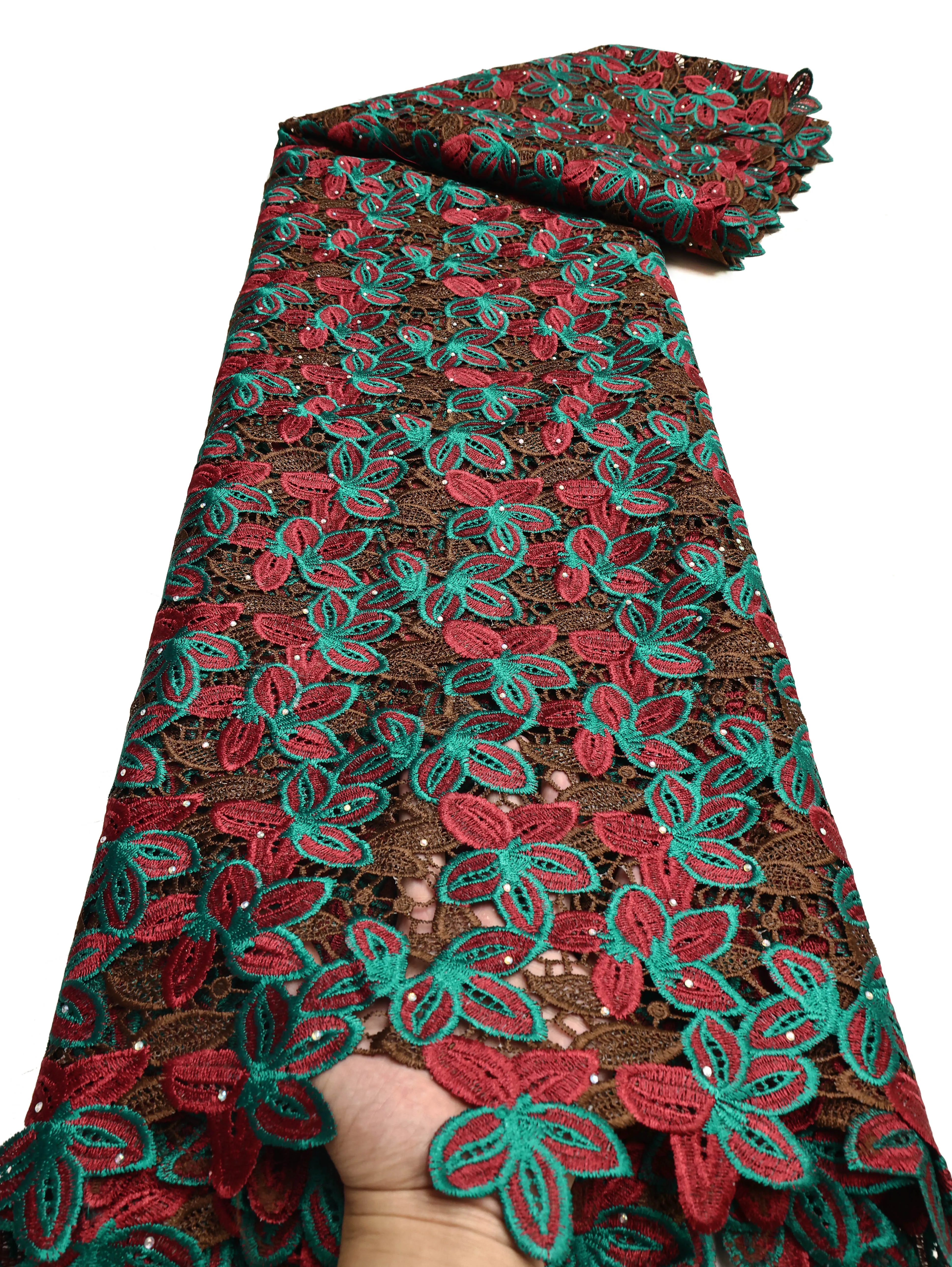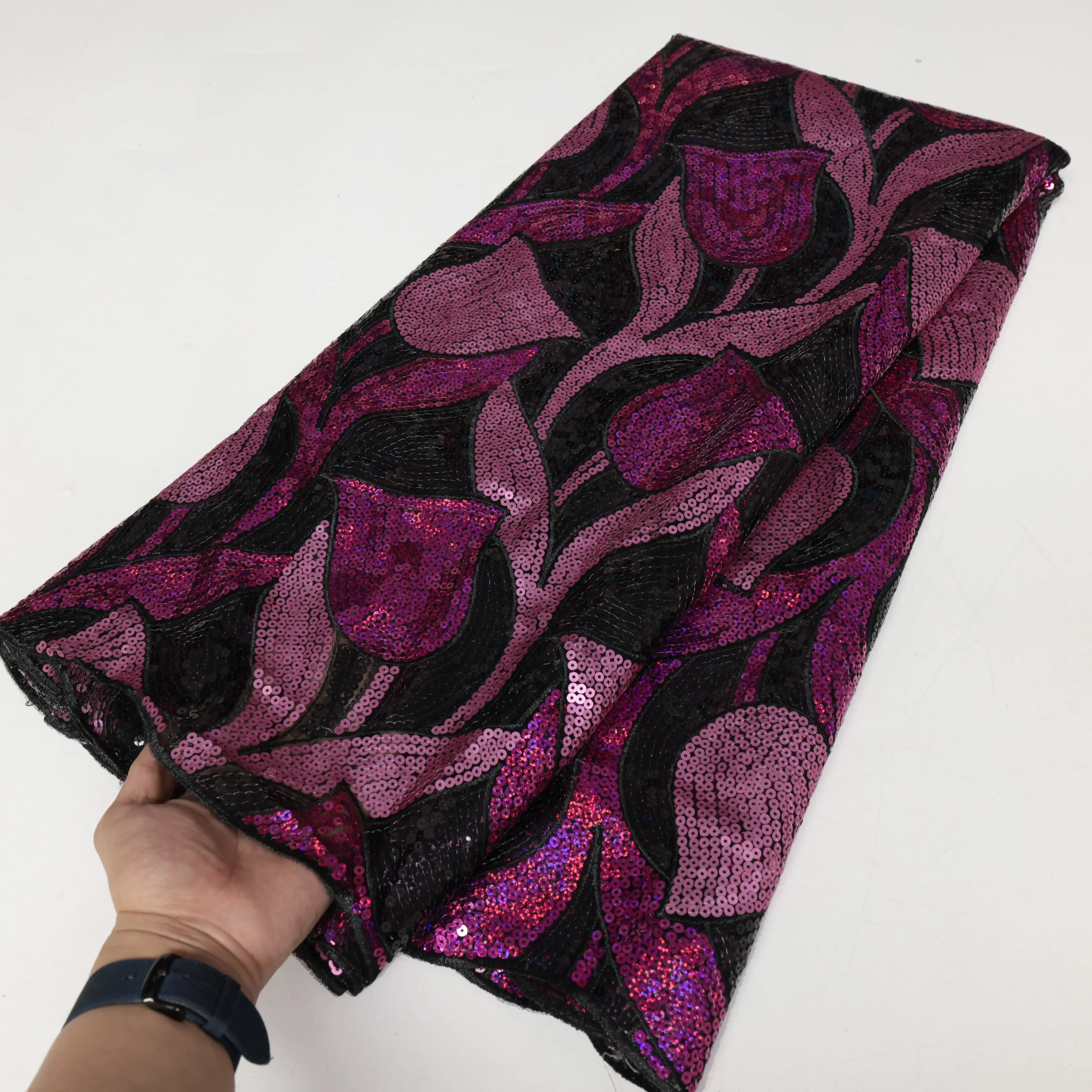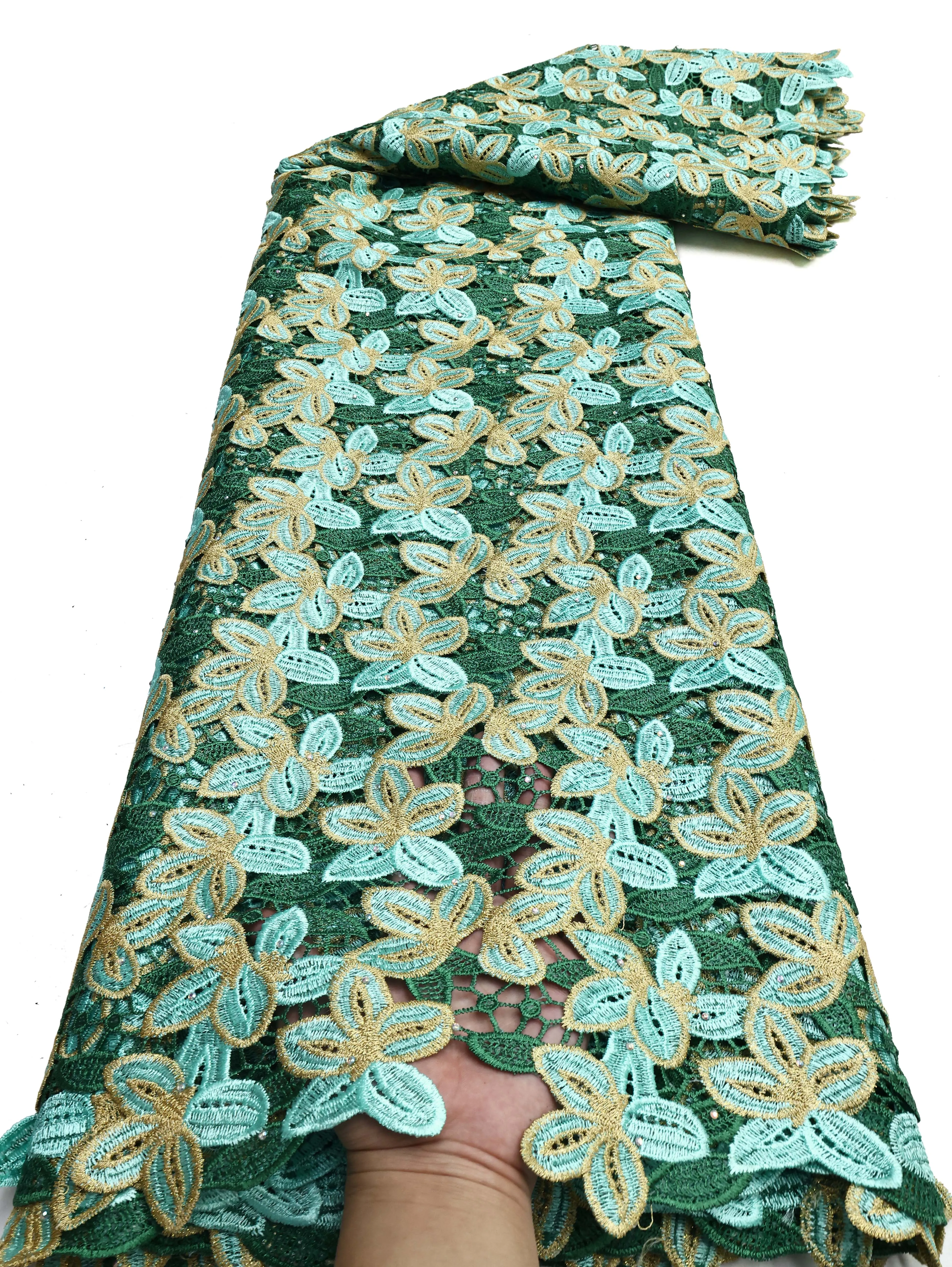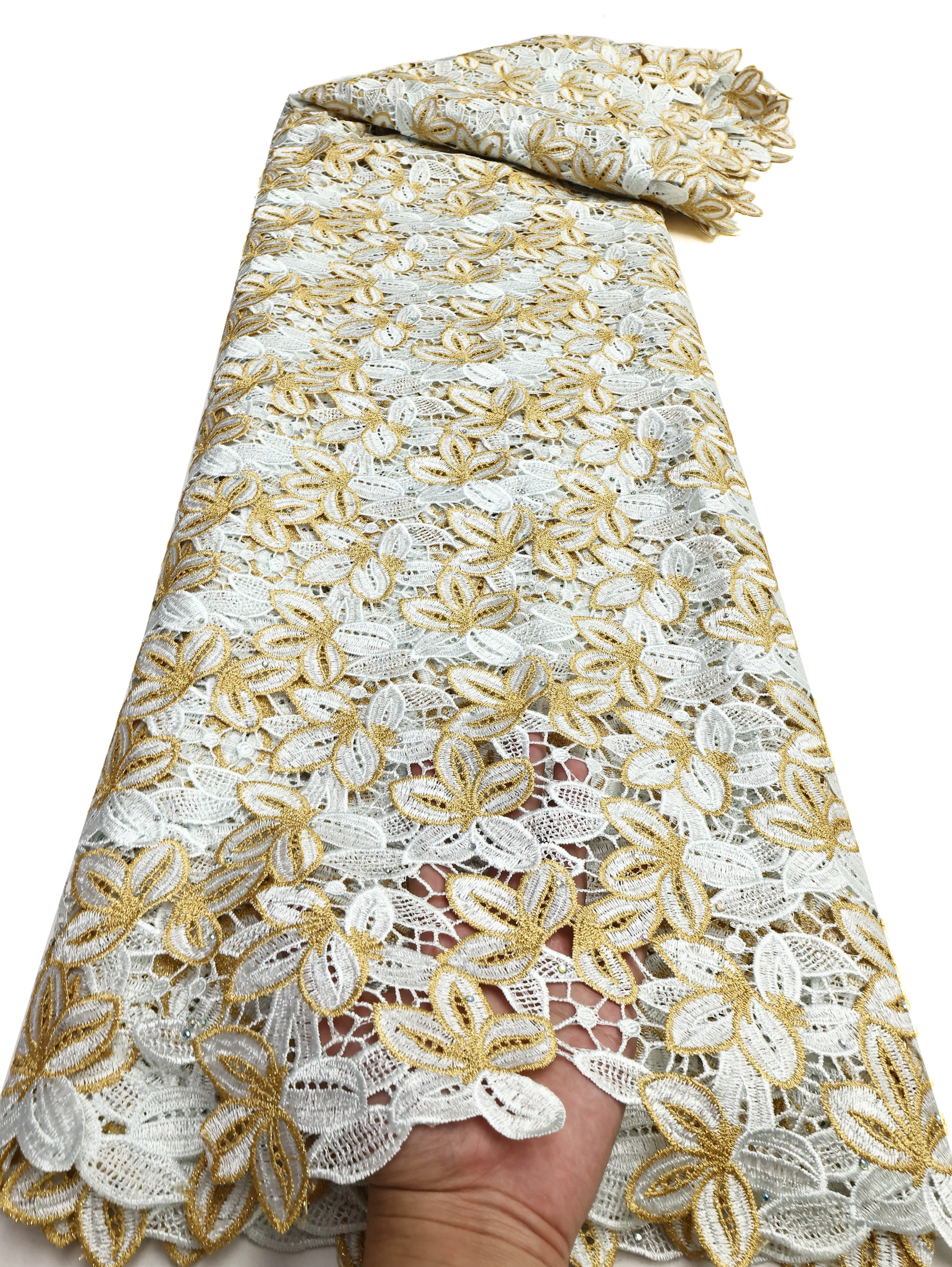2025 African Nigerian Tulle Lace Fabric Sequins Sewing Guipure Beads Stone Embroidery Dresses High Quality 4 Yards