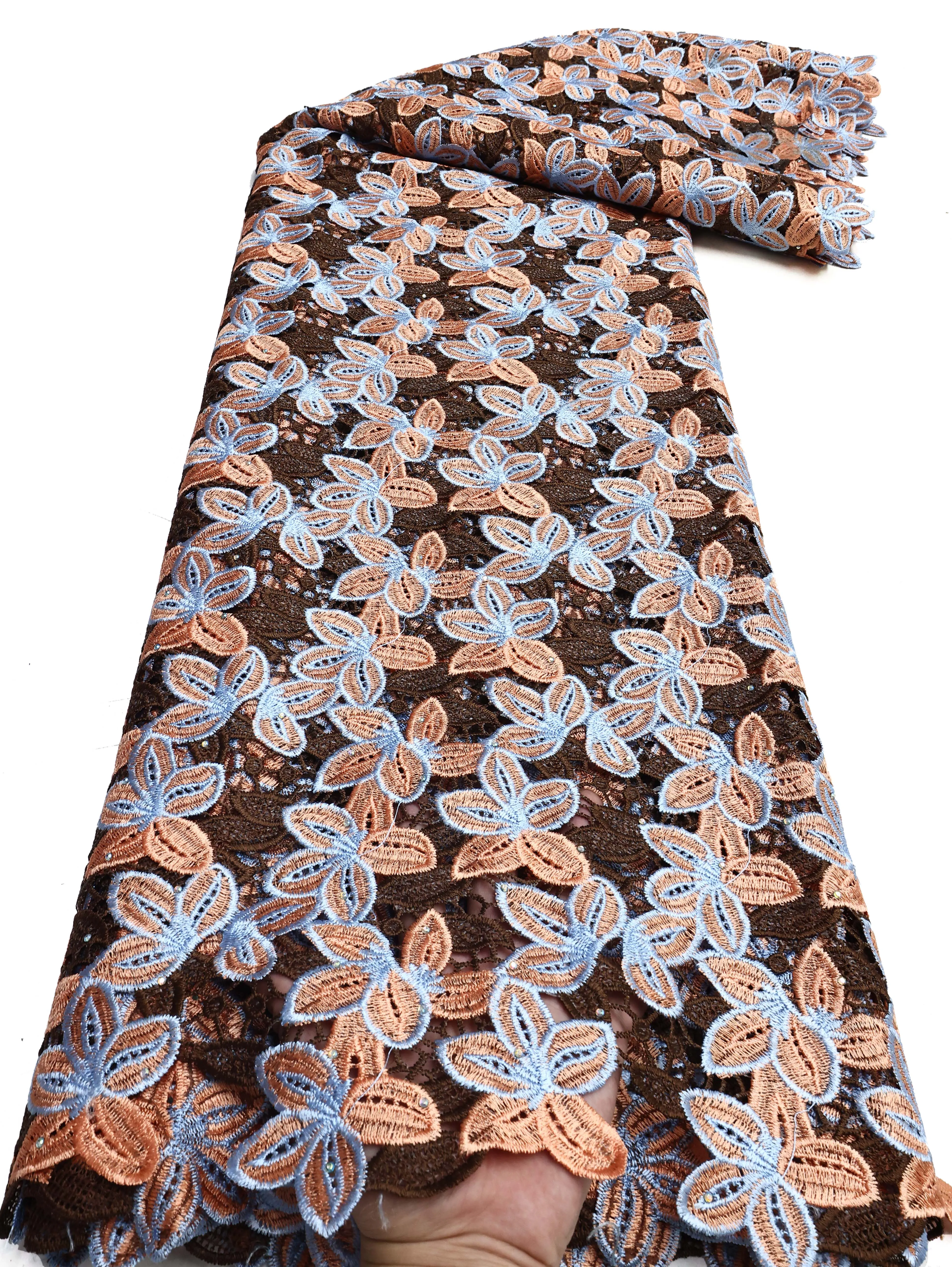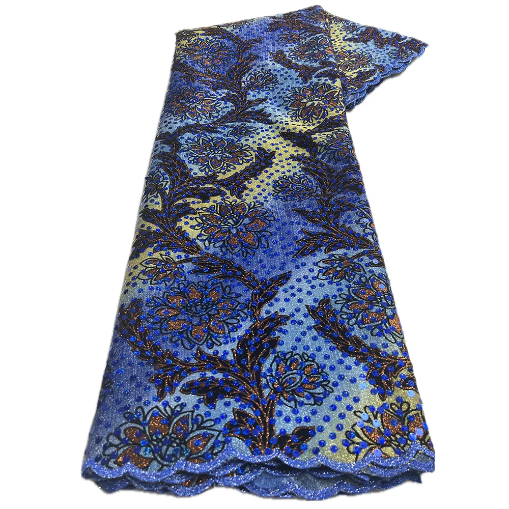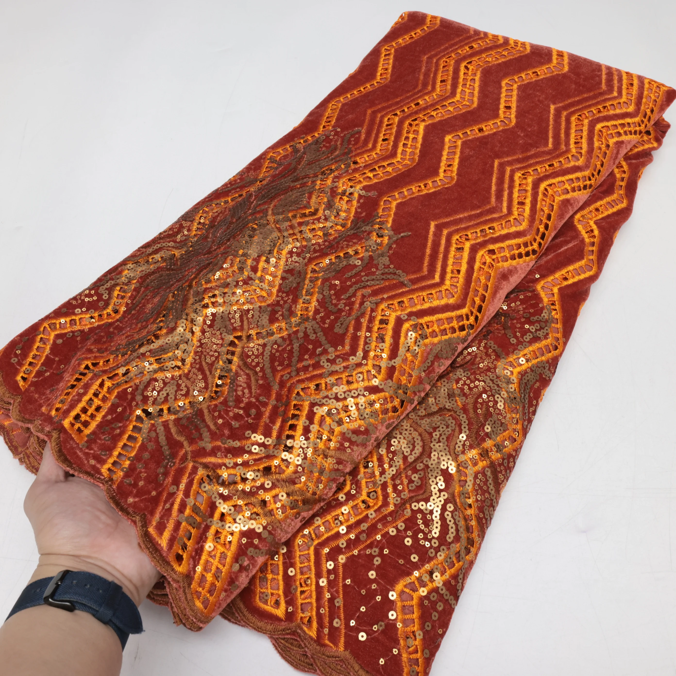 Color: Ginger, Length: 5 yards, Width: 120cm - 2025 African Nigerian Tulle Lace Fabric Sequins Sewing Guipure Beads Stone Embroidery Dresses High Quality 4 Yards