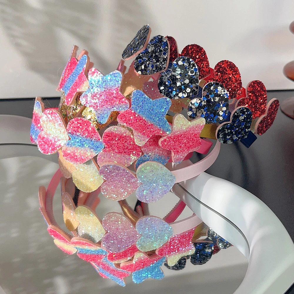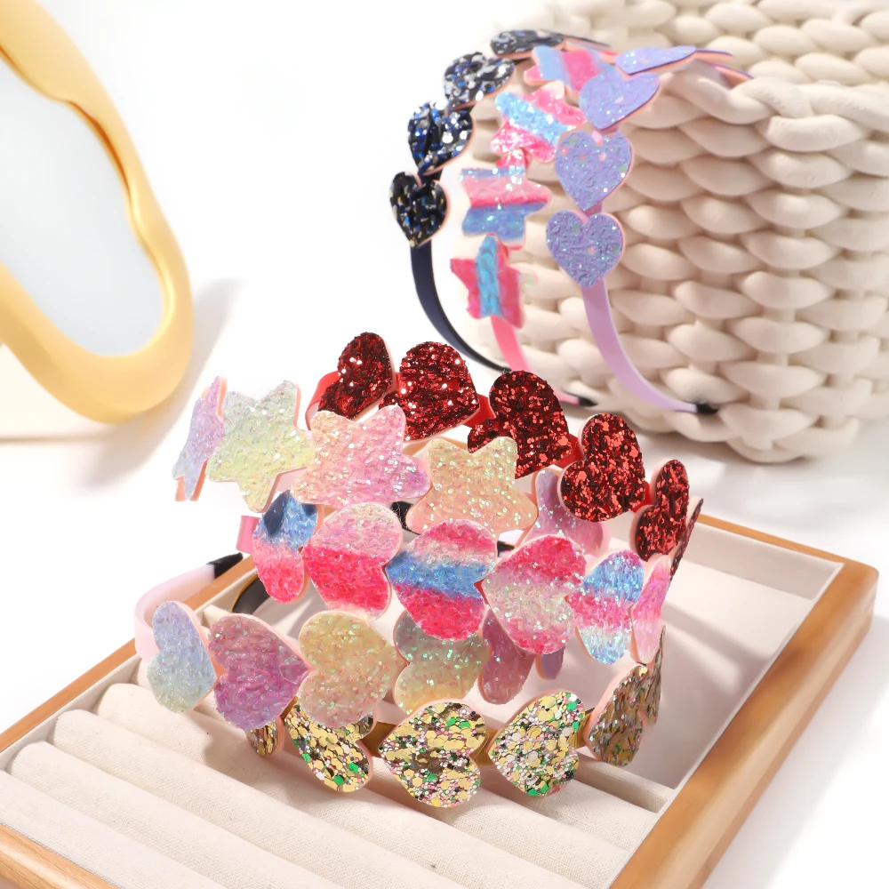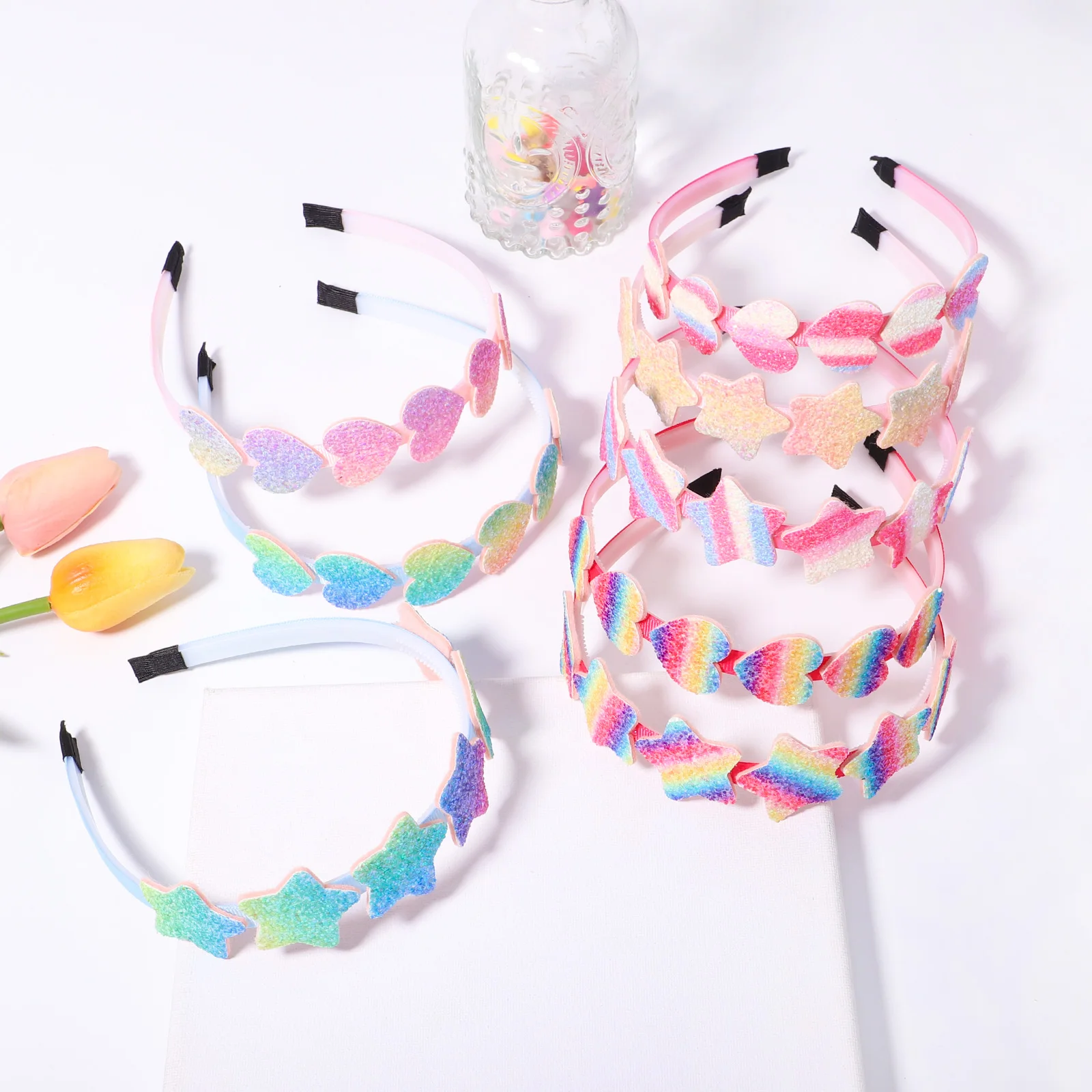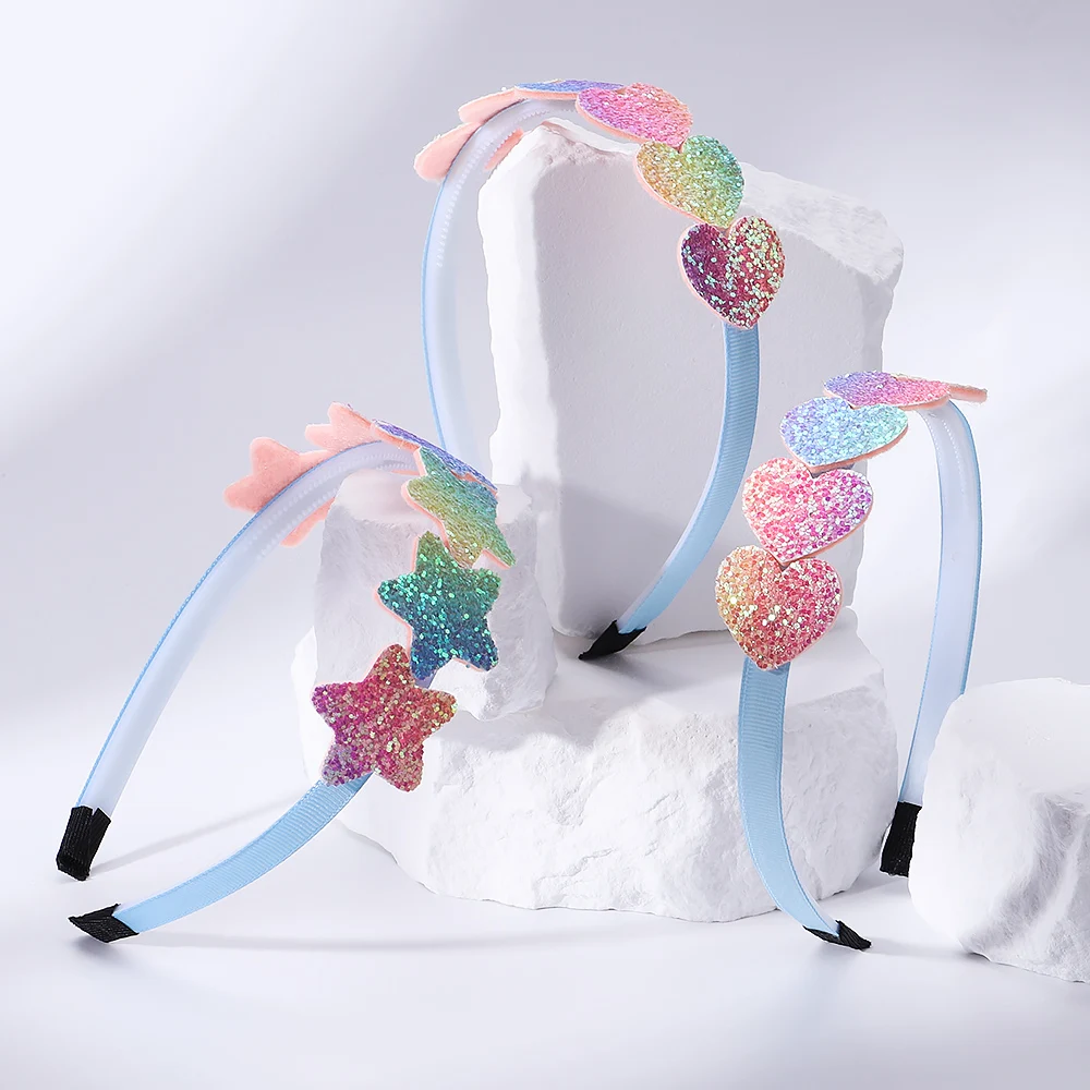 Color: Gold - 1pcs Fashion Glitter Kids Hair Band Lovely Bow Stars for Headband Girls Cute Colors Hair Tiaras Hairbands Hair Accessories Gifts