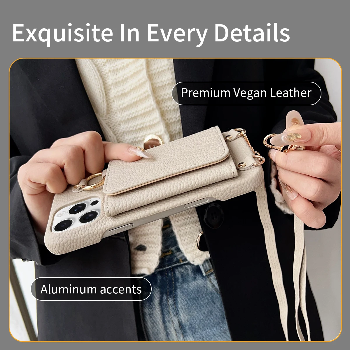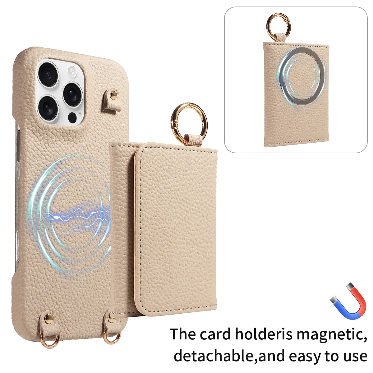 For IPhone16 15 Pro Max 14 13 12 Series PU Leather Magsafe Magnetic Wireless Charging Shockproof Crossbody Wallet Phone Case
