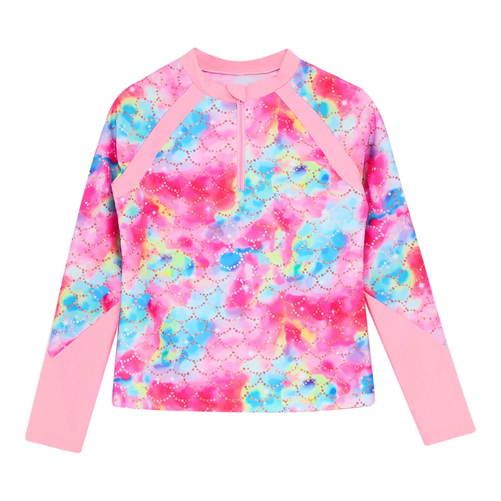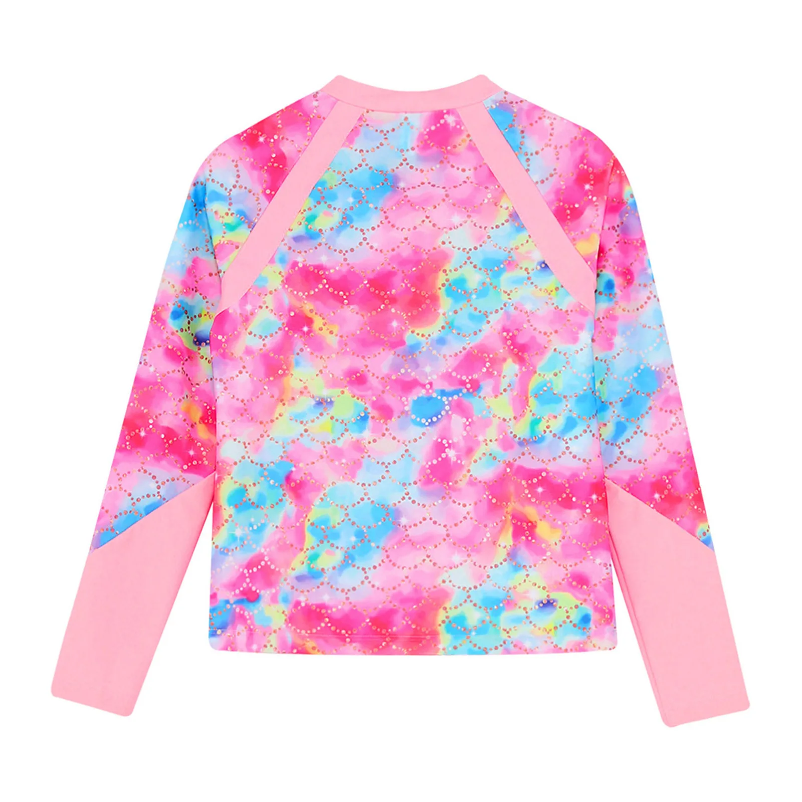A long sleeve swim top for girls, vibrant print makes girls looks more energetic and beautiful at beach.