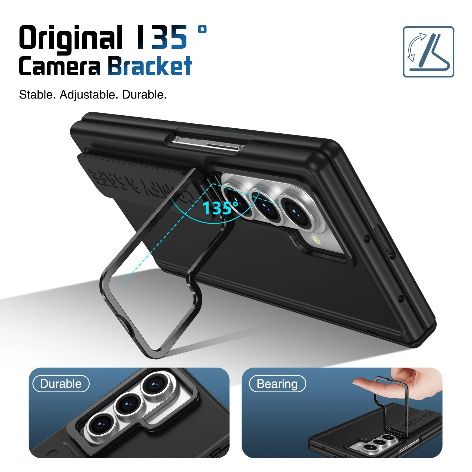 Color: Gold, Material: aluminum - For Samsung Galaxy Z Fold 7 6 5 4 3 Wristband Hinge Lens Holder Phone Case Outer Screen Glass Film Protection Shockproof Cover
