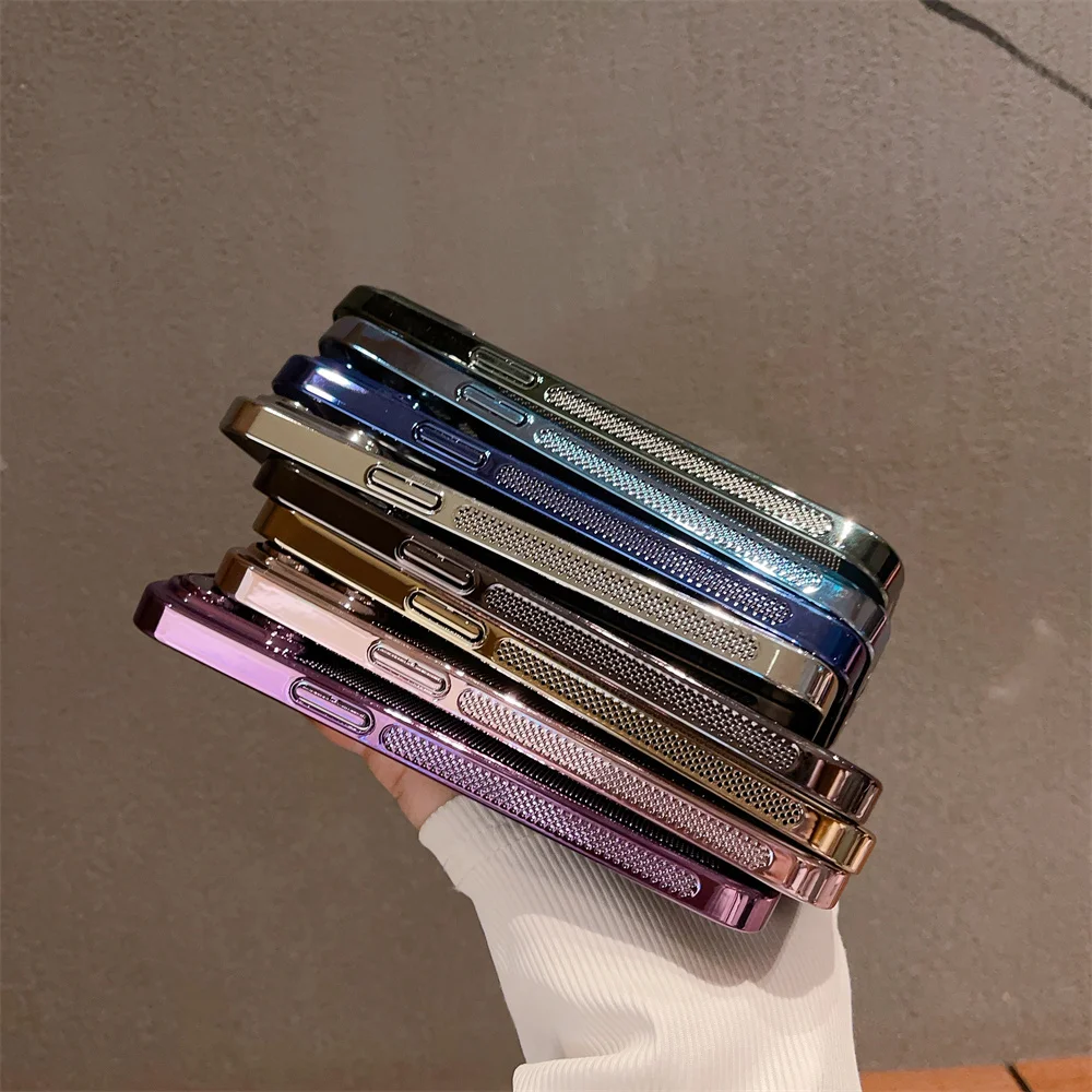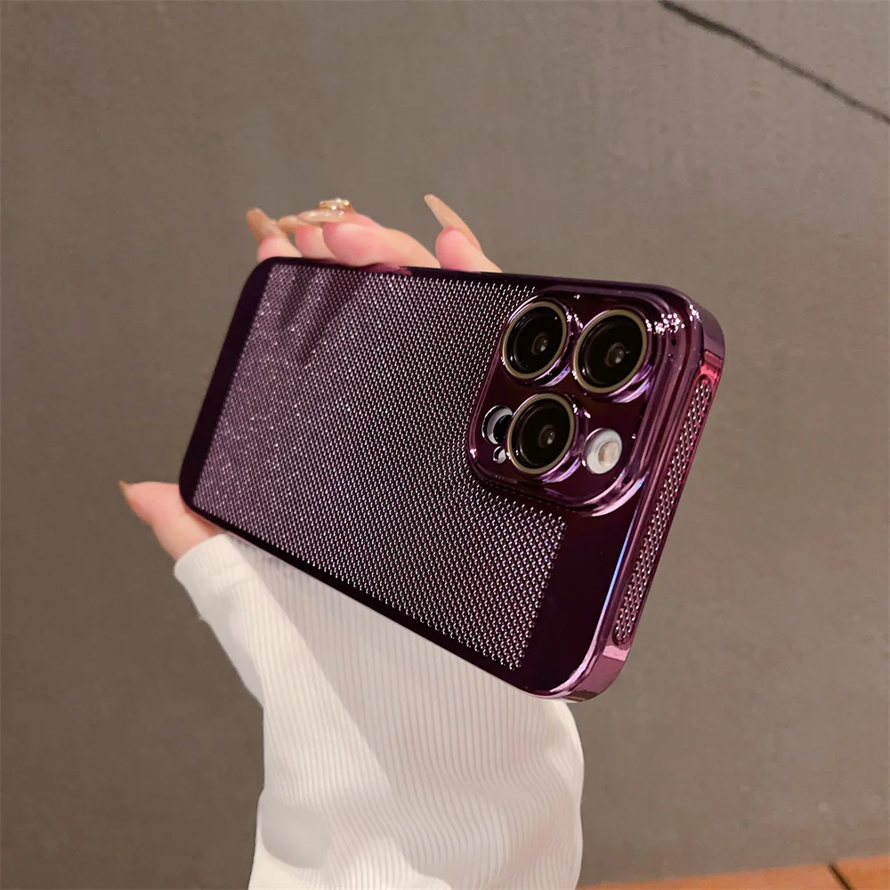 Color: Gold, Material: Carbon Fiber - Luxury Plating Hollowed Out Case for iPhone 12 13 Mini 11 14 Pro Max X XR Xs Max 7 8 Plus Heat Dissipation Shockproof Lens Cover