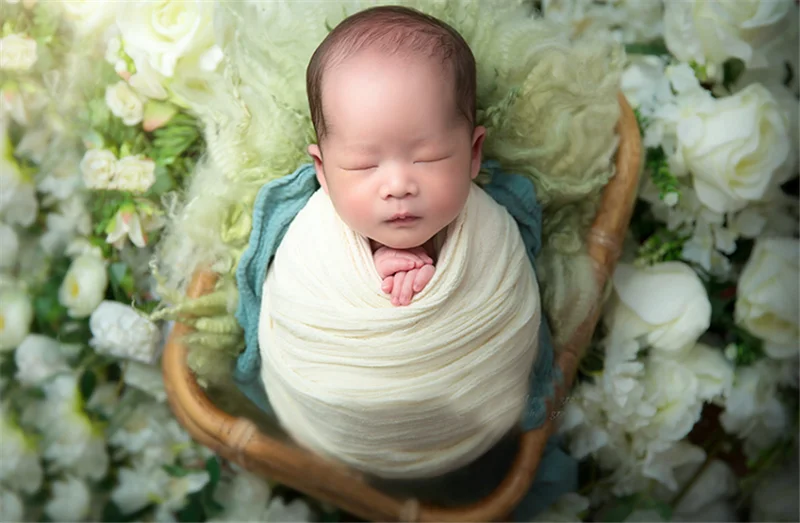 Color: Gold - Newborn Photography Props Wrap Baby Blanket Soft Stretchable Cotton Swaddling Photography Backdrop Babies Accessories