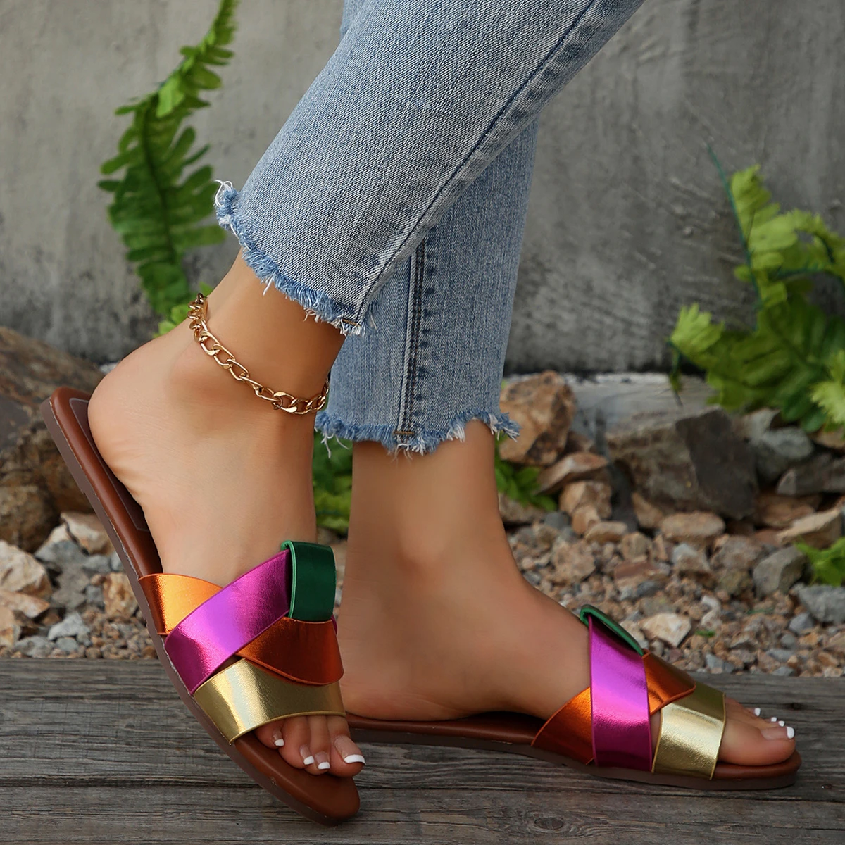 Color: Gold, Shoe Size: 36 - New Fashion Slippers Women Sexy Flat Sandals Casual Ladies Sand Beach Slippers Elegant Fish Mouth Slippers Women