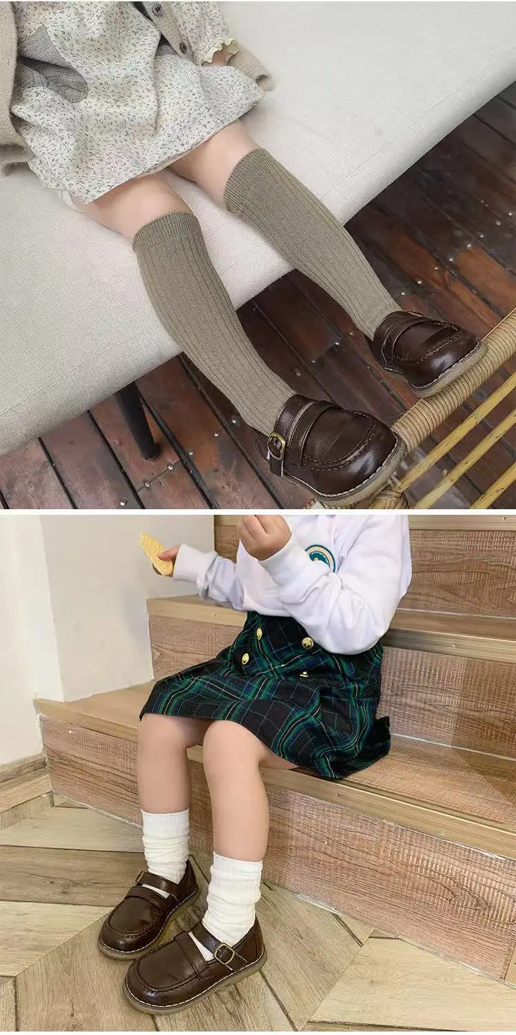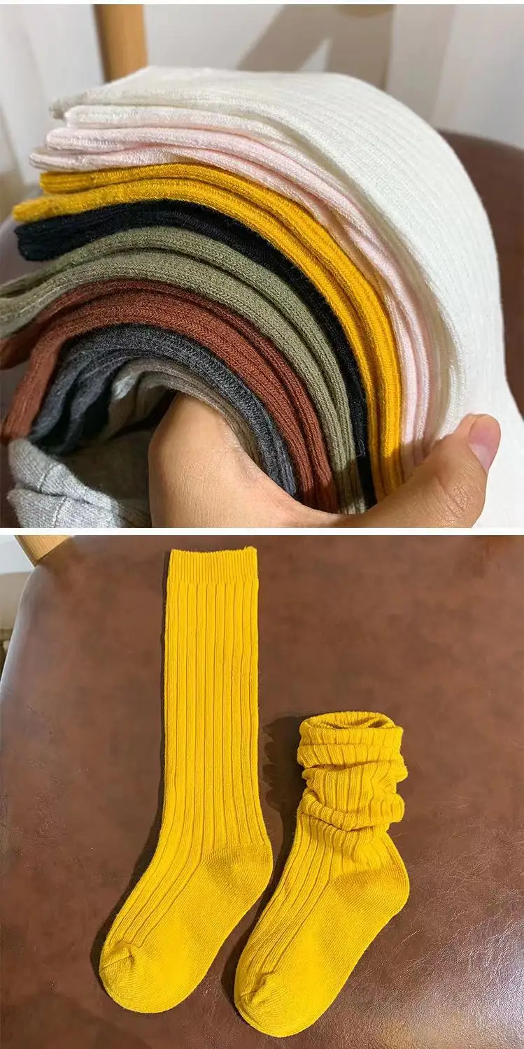 Color: Gold, Size: 4-6T - Baby Long Socks Over The Knee Little Girls Solid Cotton Socks Spring Autumn Long Crew Socks