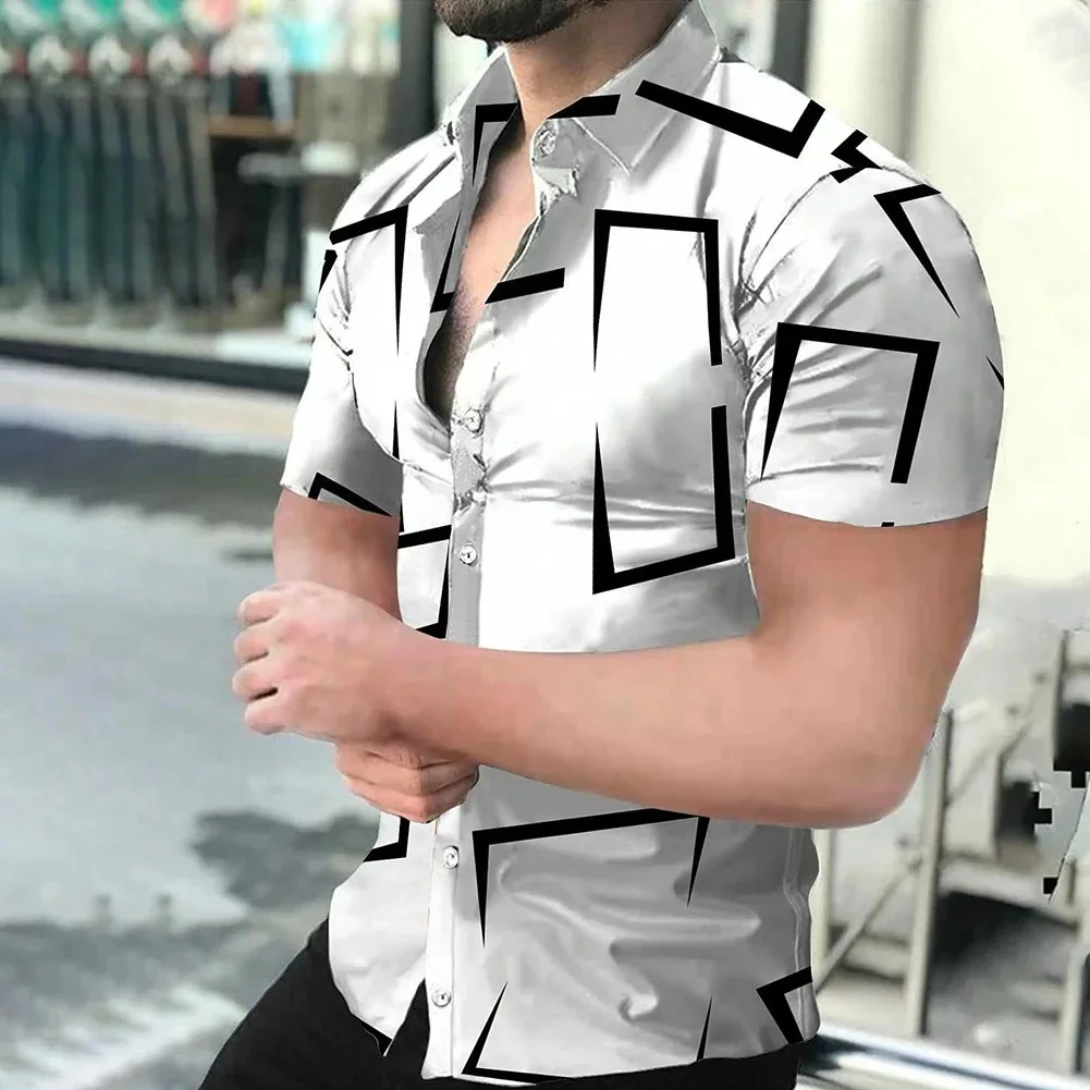 Color: Gold, Size: 5XL - 3D Men's Striped Printed Short Sleeve Shirt, Fashionable And Casual Loose Shirt, 2023 New Style.