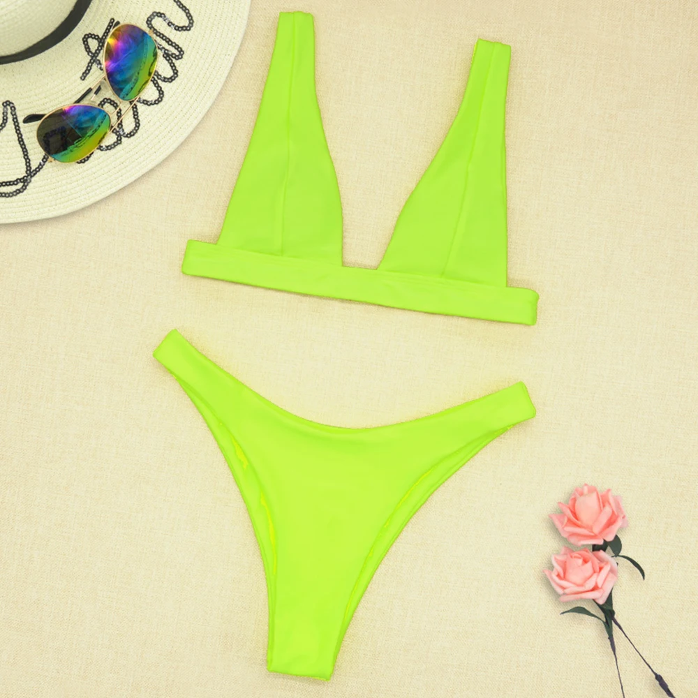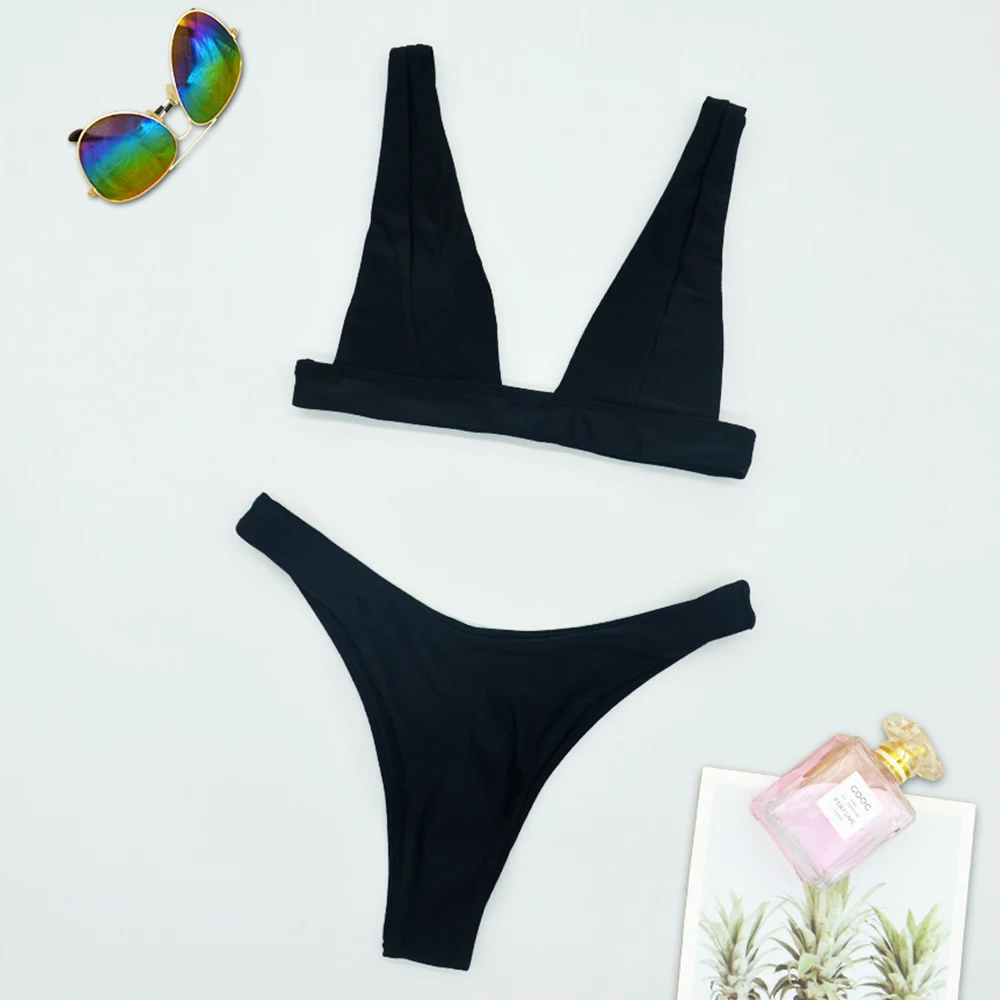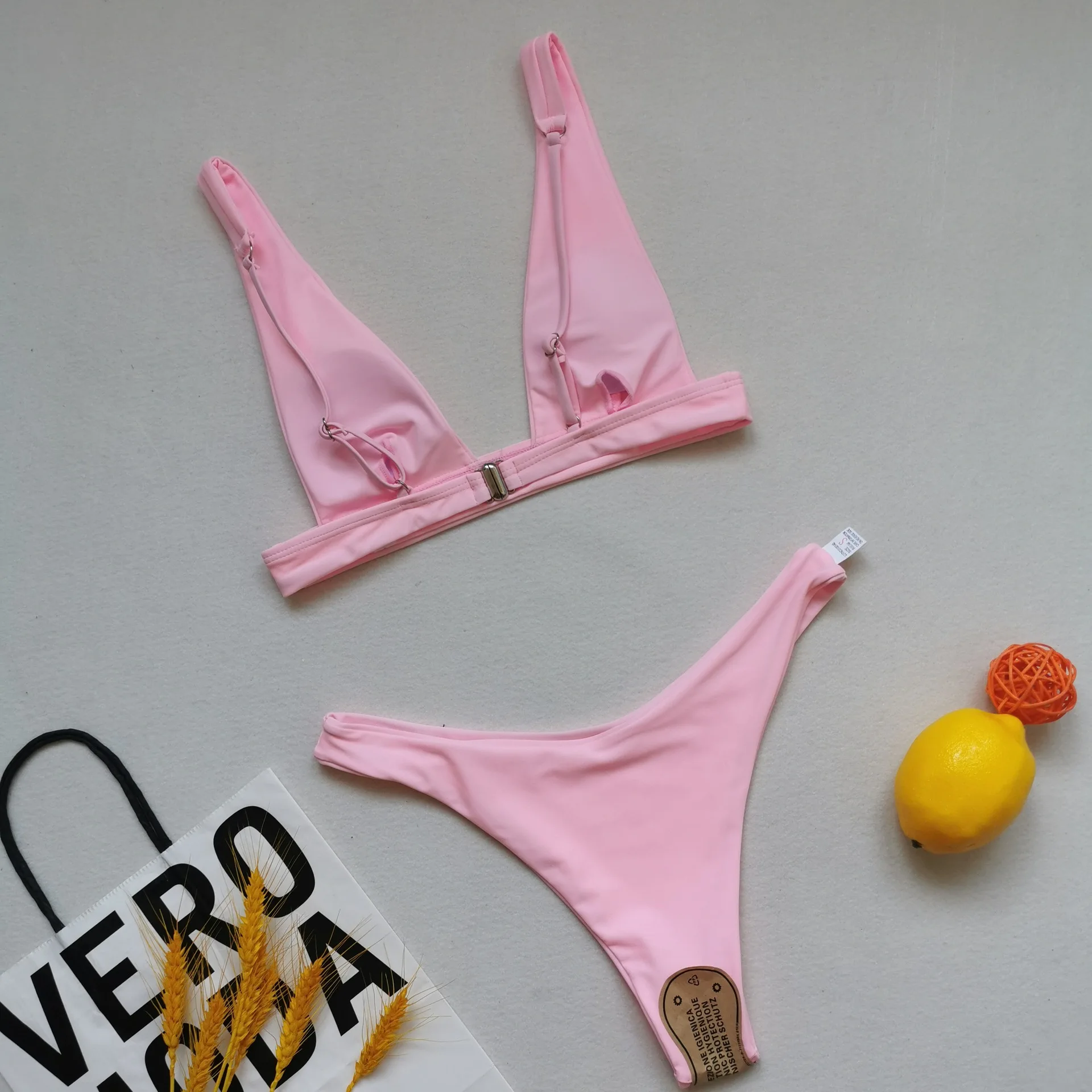 Color: Gold, Size: M - 2023 New Sexy Solid Bikini Women V-neck Swimwear Two Pieces Swimsuit Female Low Waist Bikini Set Brazilian Bathing Suit Bathers