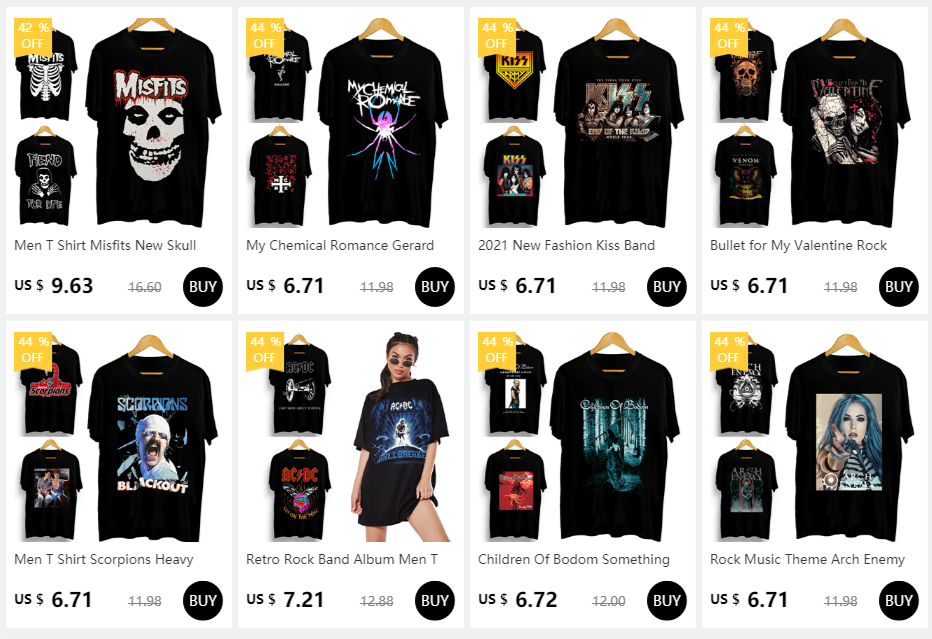 Color: Gold, Size: M - Men Clothes Round Neck T-shirt Heavy Metal Band Rock Cotton Breathable Print Womens Plus Size Tees
