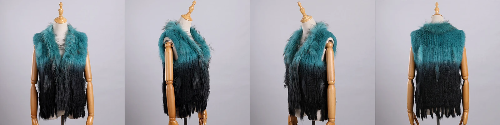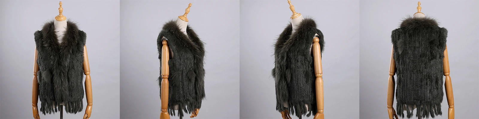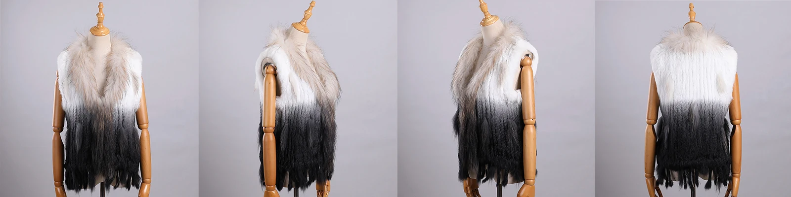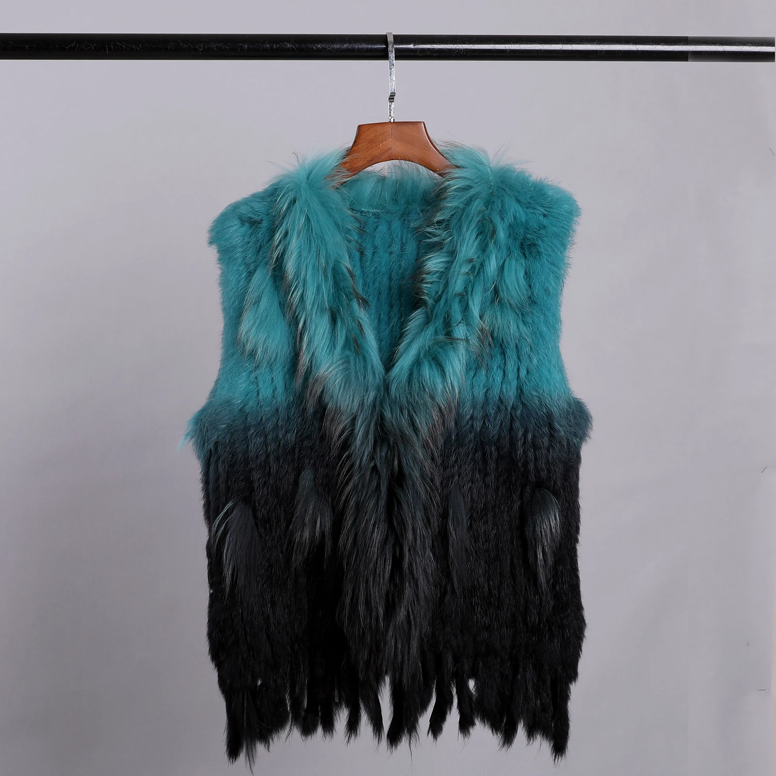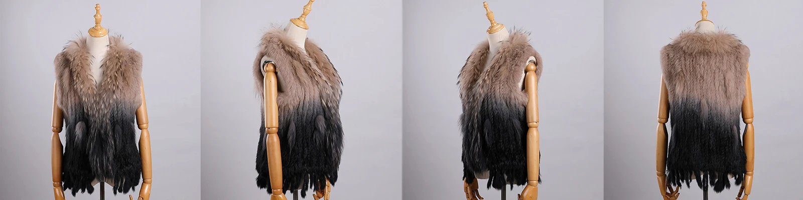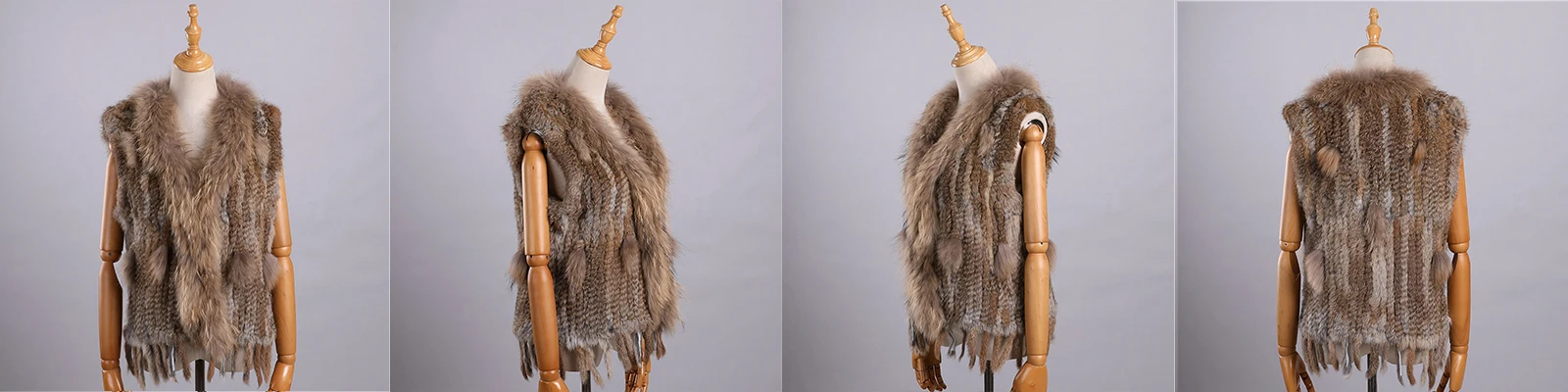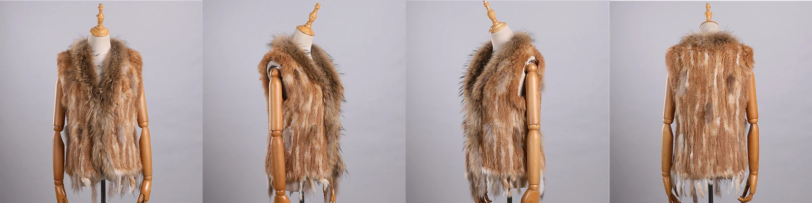 Color: Gold, Size: S - Luxury Women's Genuine Premium Long Hair Rabbit Fur Knit Vest Raccoon Fur Trim Gilet Lady Sleeveless Waistcoat Real Fur Jacket