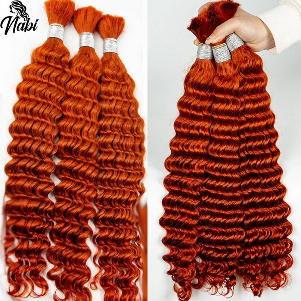 Color: Golden Brown, Material Grade: virgin hair, Longest Hair Proportion: 30%-55%, Stretched Length: 28inches, Bulk Buy: 3Pcs/Lot - NABI Deep Wave Boho Braiding Hair Bulk 16inches No Weft Human Hair Extension Curly Hair Bundles for Boho Braids