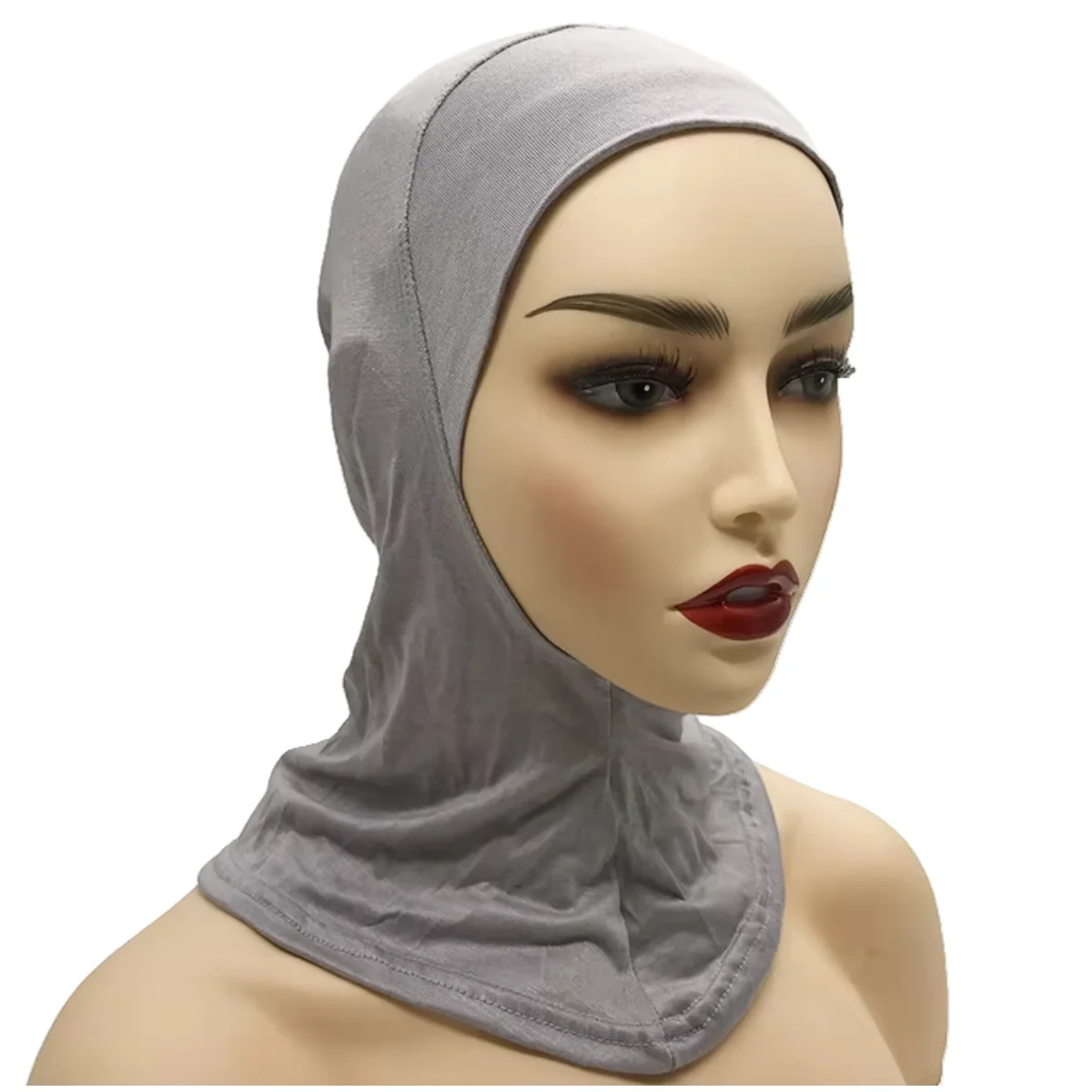Color: GRAY - 1 Piece Turban Caps for Women Muslim Underscarf Modal Hijab Inner Caps Stretchy Full Cover Shawl Cap Full Neck Coverage